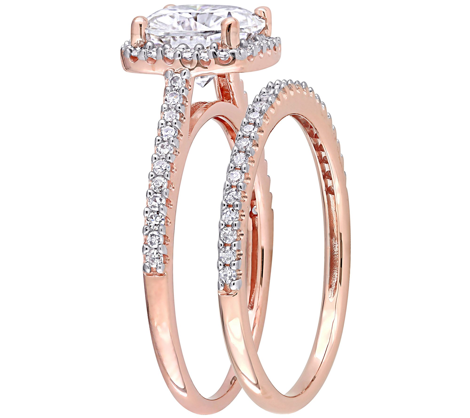 MiossanIce Moissanite & Diamond Ring Set, 14K Rose Gold