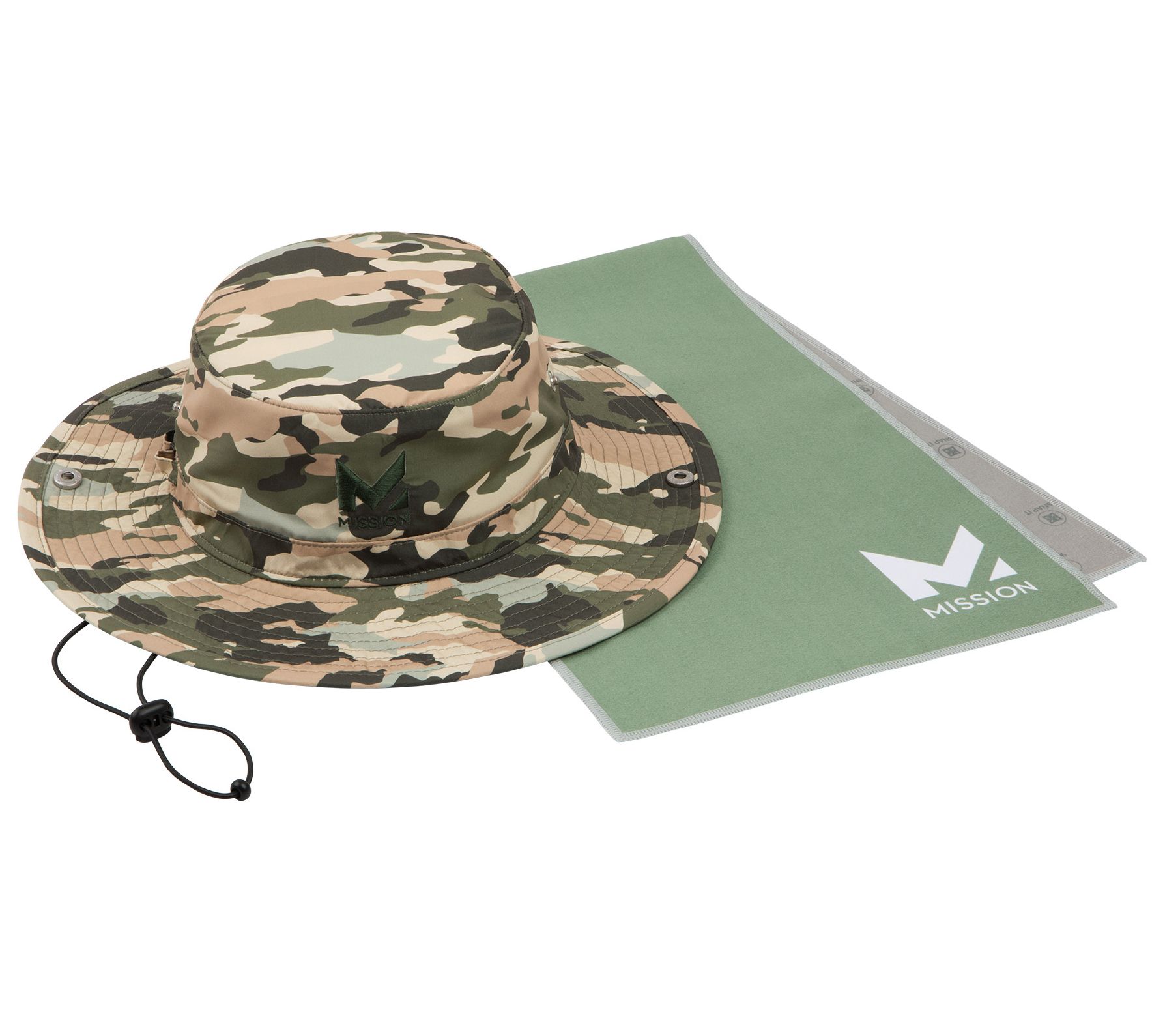 Includes bucket hat and cooling towel