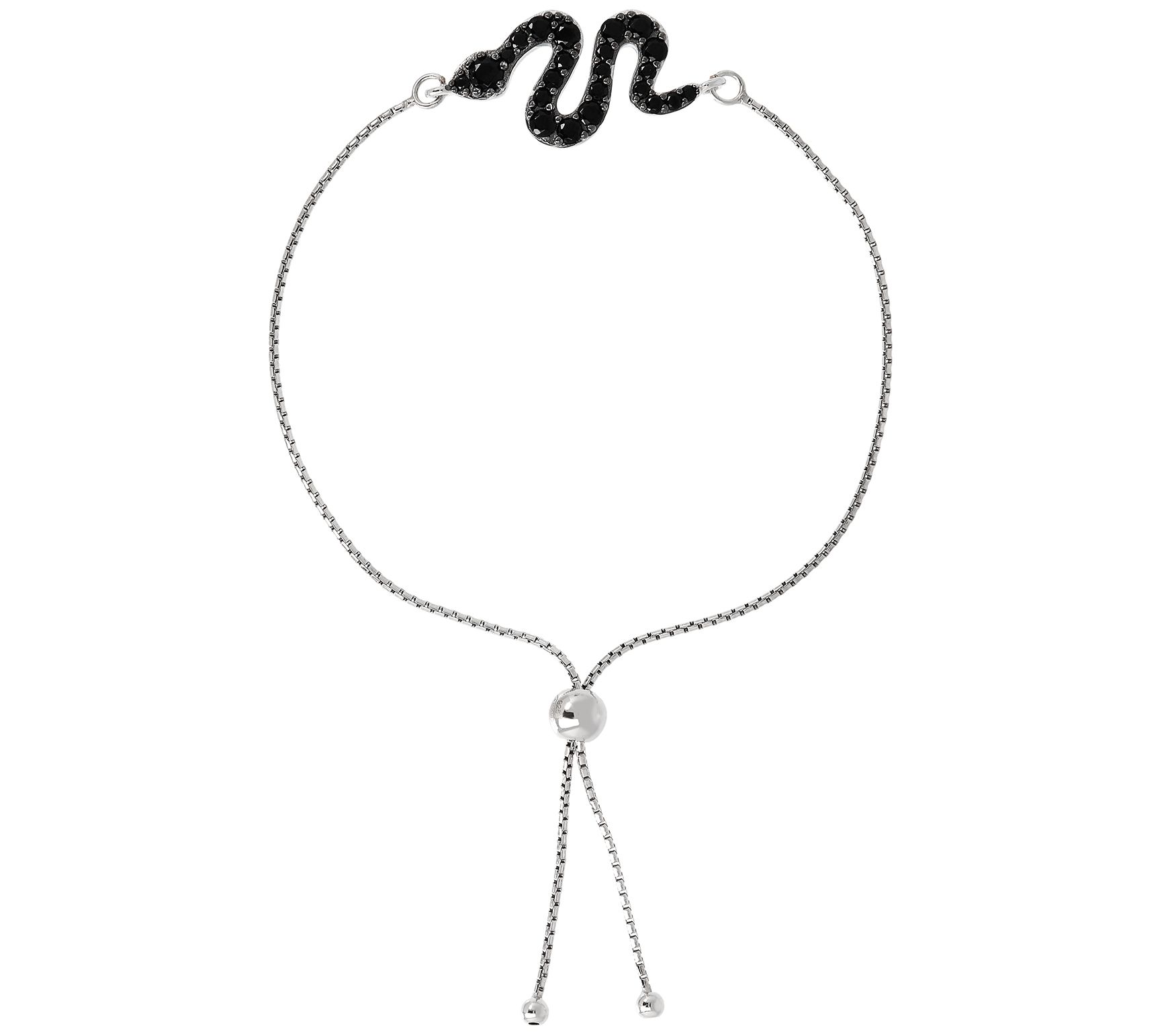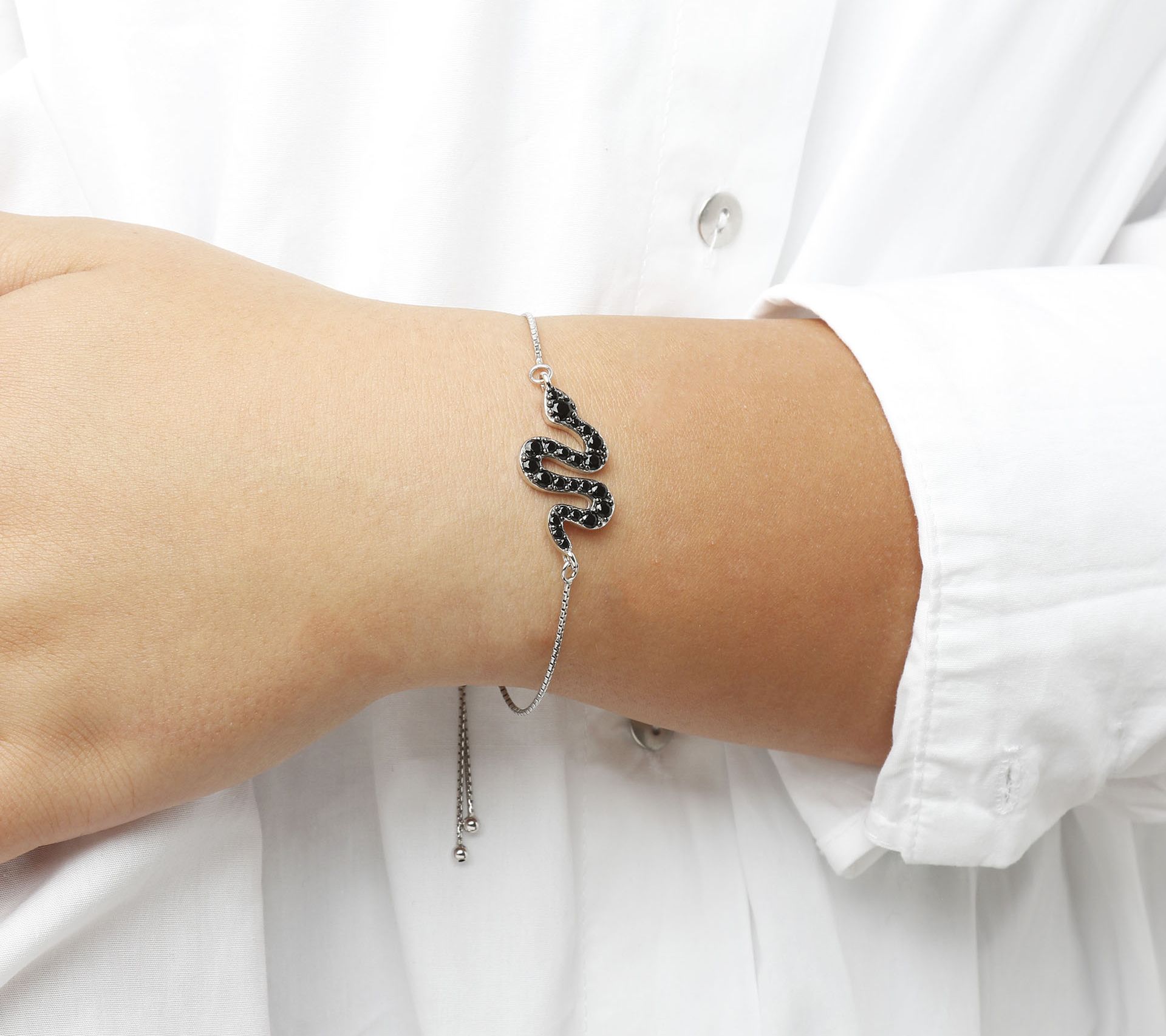 Mistero Black Spinel Snake Design Adjustable Brcelet, Sterlin