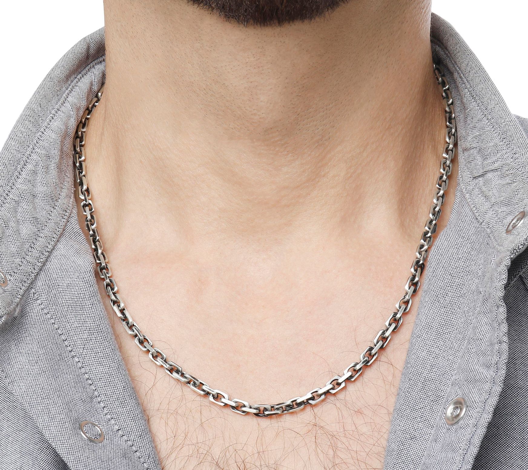 Mistero For Him Antique Rolo Link Necklace, Sterling Silver