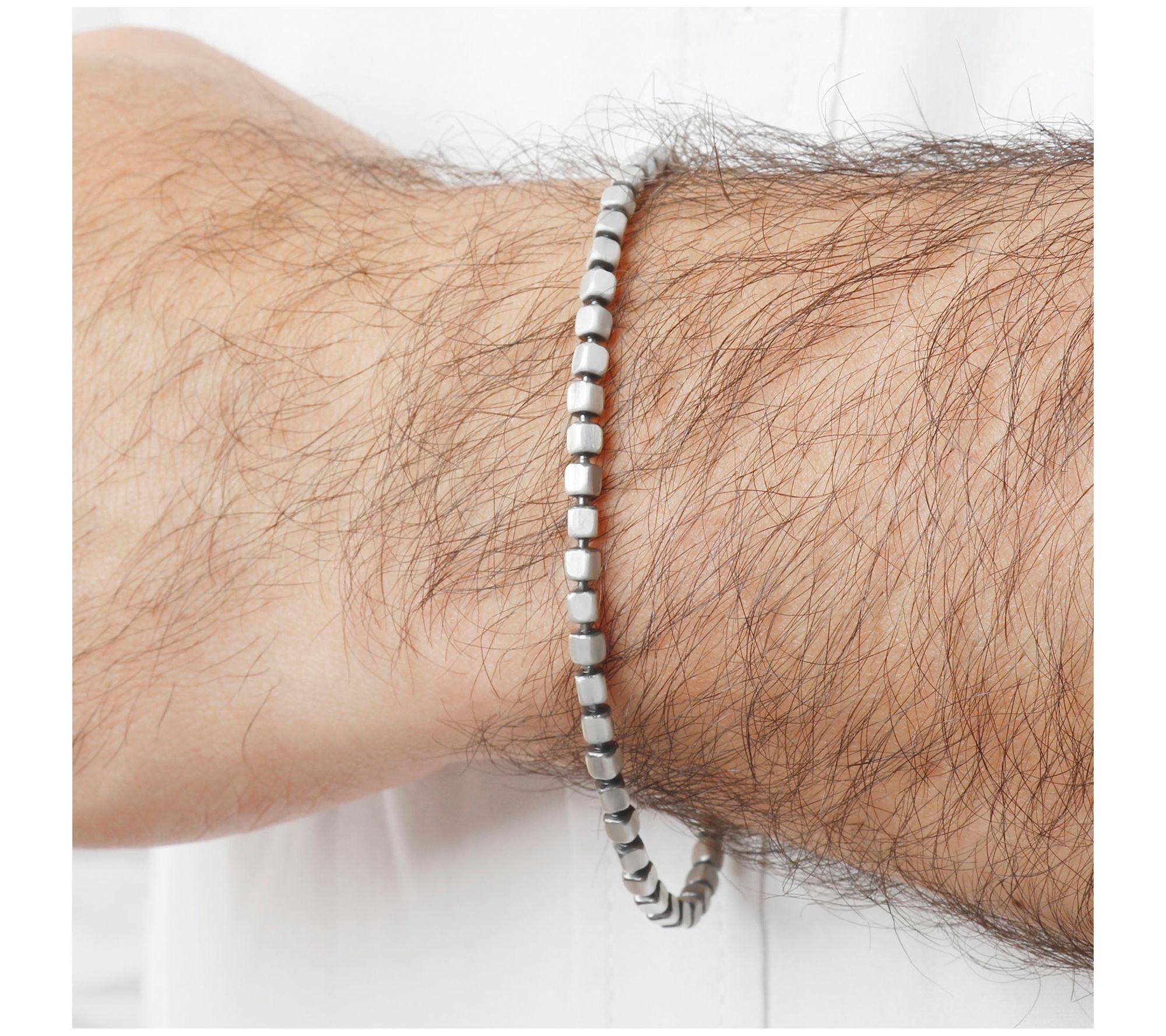 Your signature style just got an upgrade. Worn everyday or just for special events, this sterling silver cube link bracelet defines your good taste. From Mistero for Him.