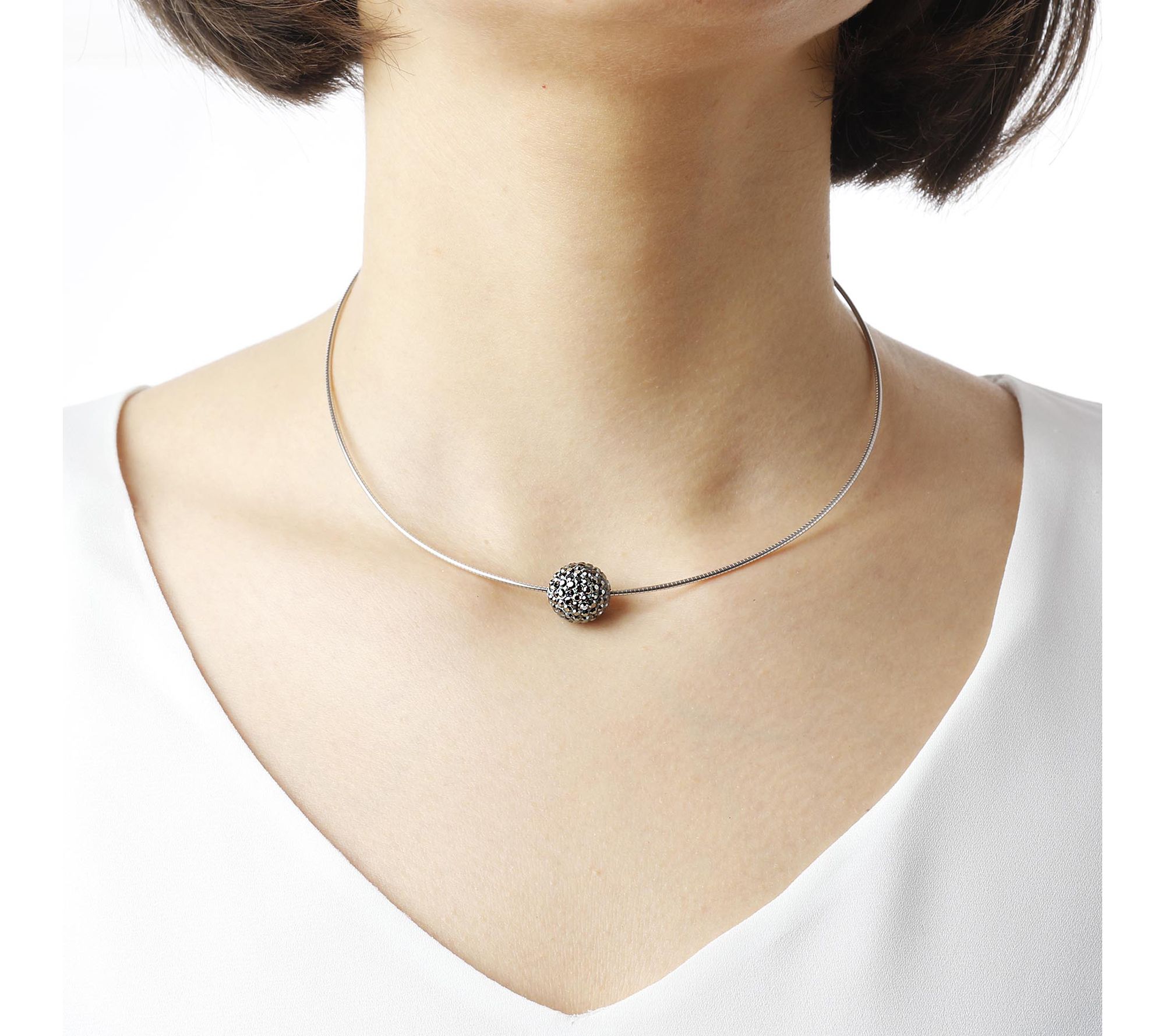 Drops and dangles all have a special place in our hearts, but this omega necklace with a pave-set hematite bead slide is having a moment. From Mistero.