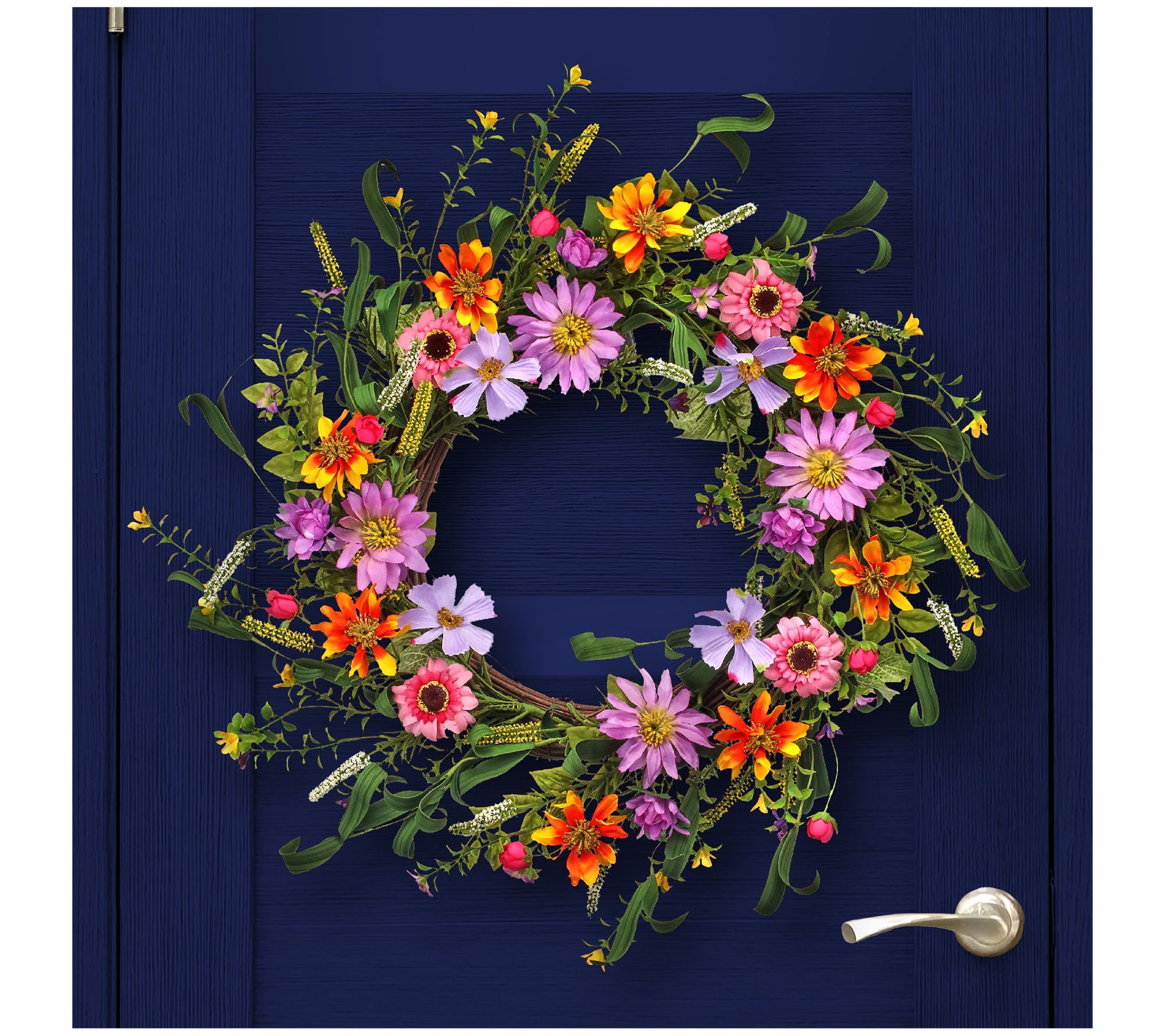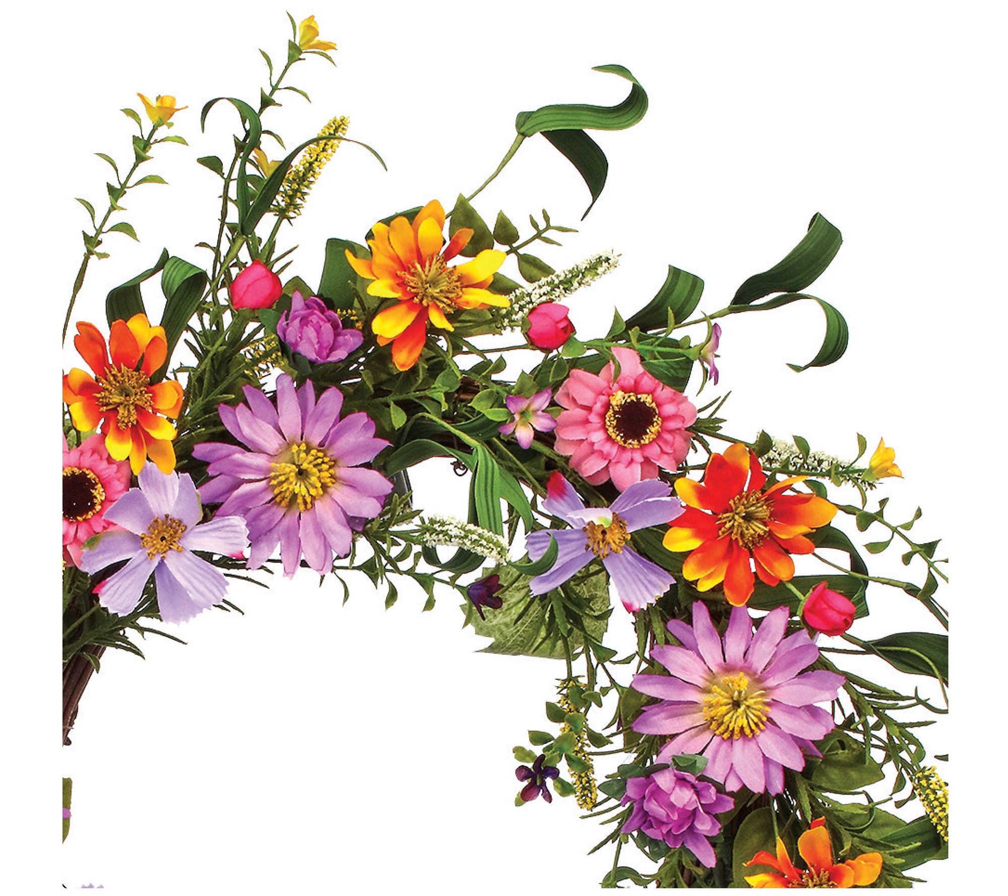 Welcome spring (and your guests!) with the vibrant beauty and realistic look of this gorgeous wreath featuring faux mixed wildflowers. From the Valerie Parr Hill Collection.