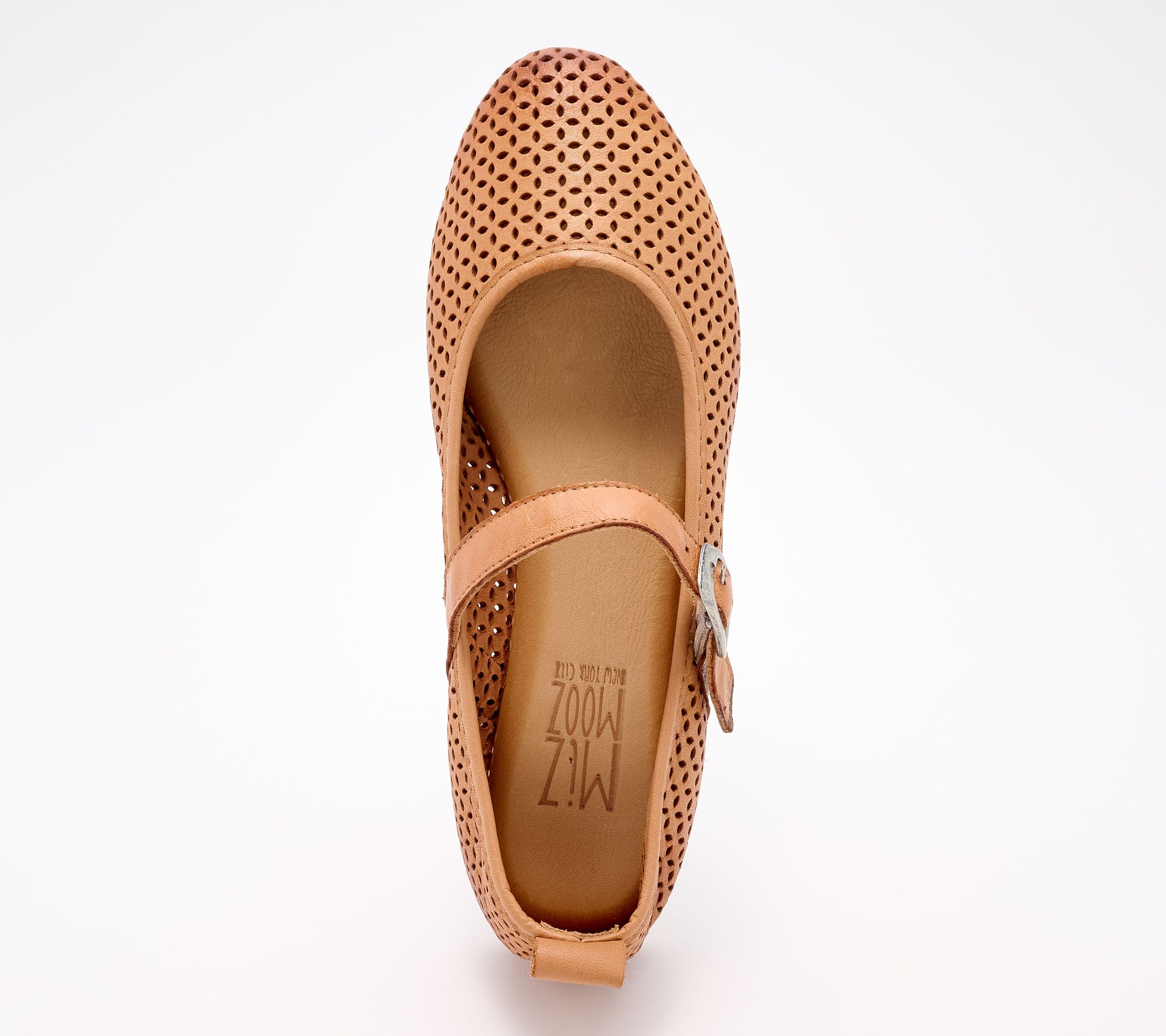 Miz Mooz Adjustable Leather Perforated Mary Janes Soft European leather upper Adjustable buckled ankle strap SweetStep- dual-density insole; leather footbed Man made outsole; Runs true to size 1/4" heel height, 3/8" sole thickness Leather upper, leather lining, man made outsole Country of Origin - Imported