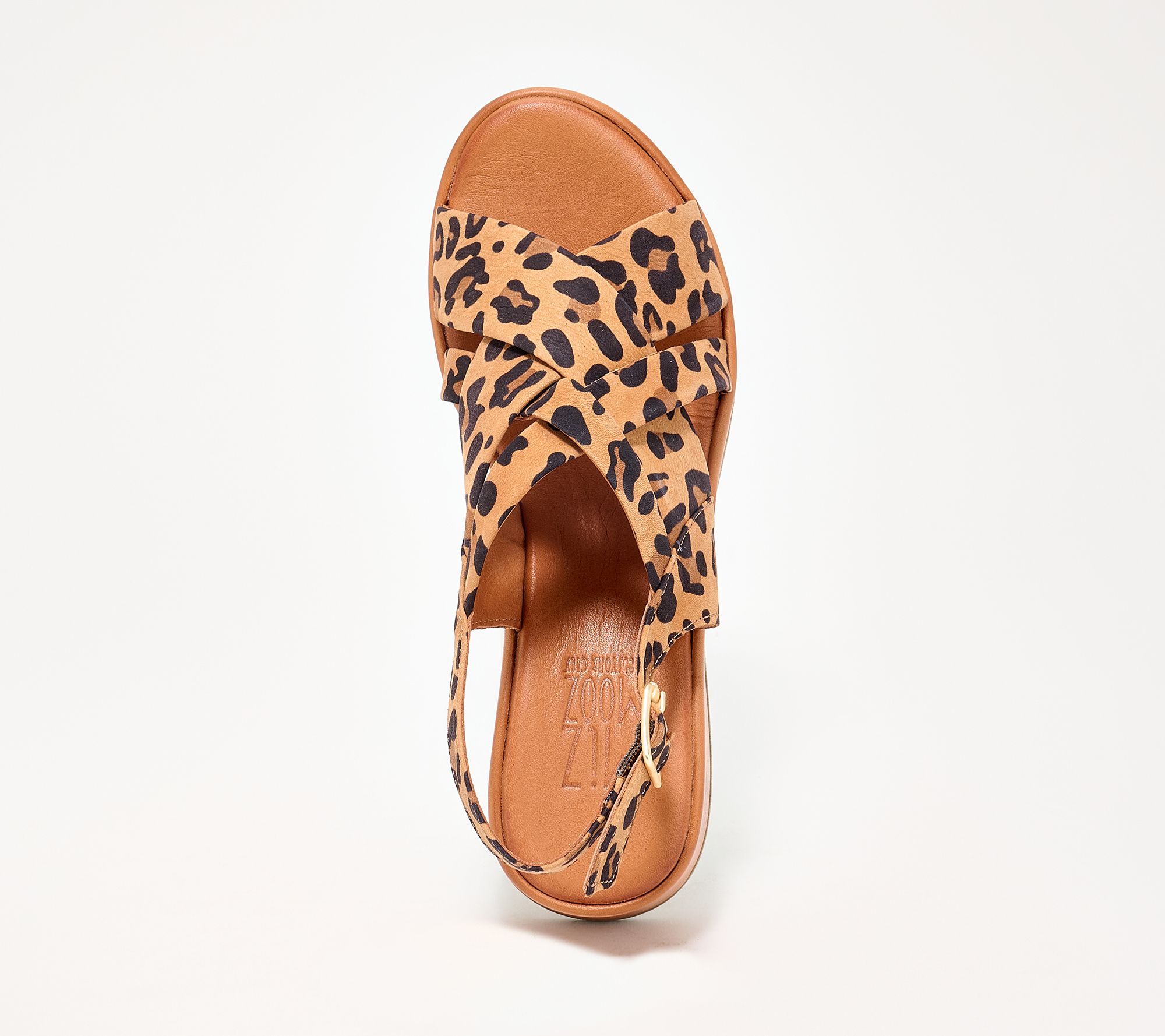 Warm evenings exploring city streets or sunny weekends at the farmer's market call for these leather adjustable wedges, pairing an effortlessly chic silhouette with supportive SweetStep cushioning for daylong comfort. A softly contoured footbed and buckled ankle strap help you stay on the move in style, from brunch with friends to impromptu after-work plans. From Miz Mooz.