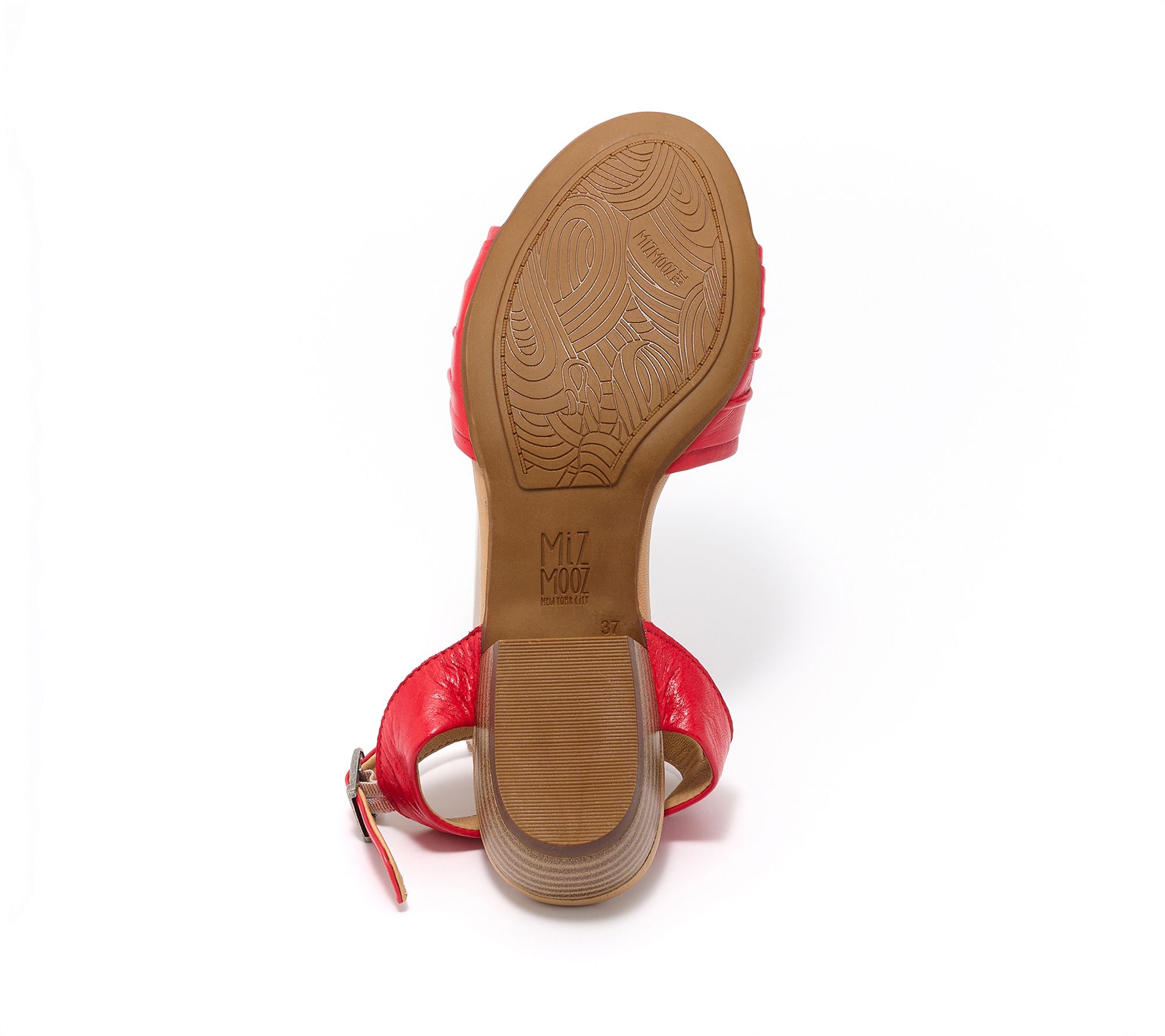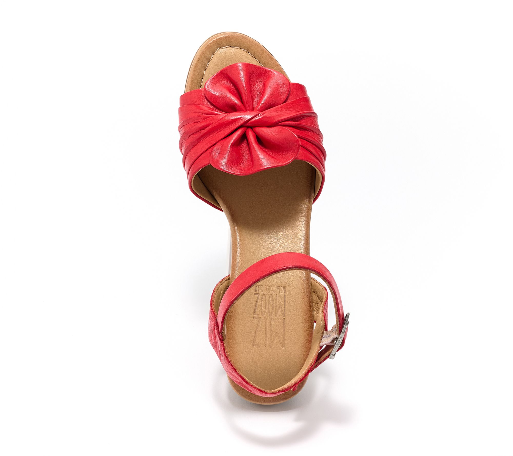 Miz Mooz Leather Bow Heeled Sandals Soft European leather upper Adjustable buckled ankle strap SweetStep- dual-density insole; leather footbed; Man made outsole; True to size 1 1/2" heel height, 1/4" sole thickness Leather upper, leather lining, man made outsole Country of Origin - Imported