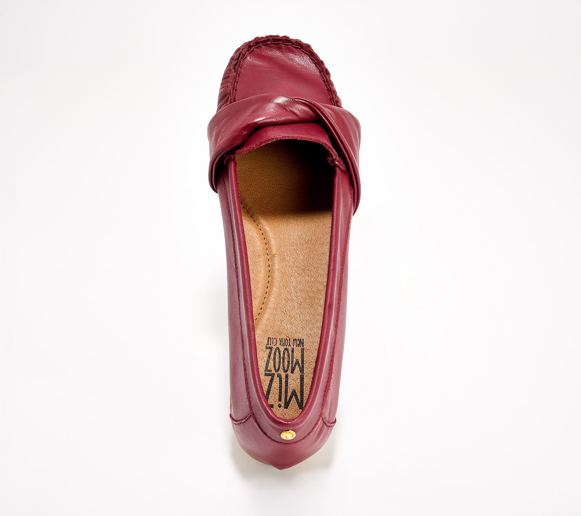 Laid-back yet ready to dress up, these soft leather flats feature a twisted top detail for visual interest and a well-cushioned footbed for can't-resist comfort. Pair with anything from tailored trousers to faded jeans and the Lizbeth is ready to take on the day. From Miz Mooz.