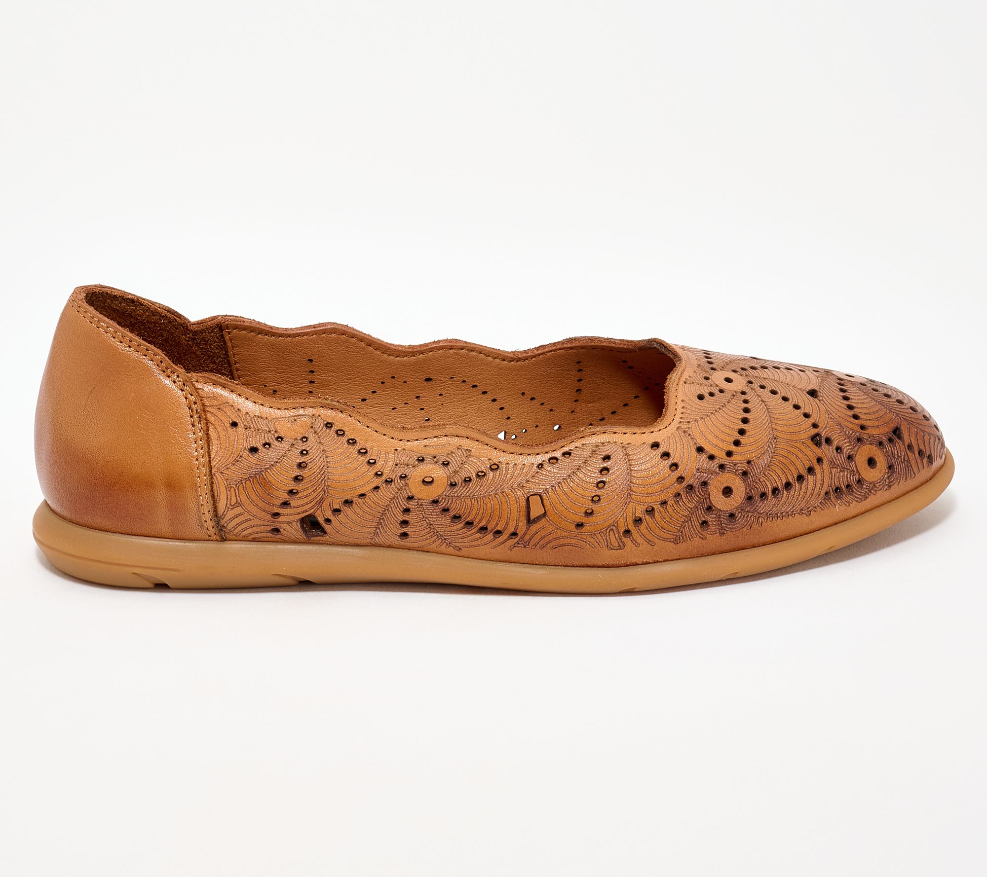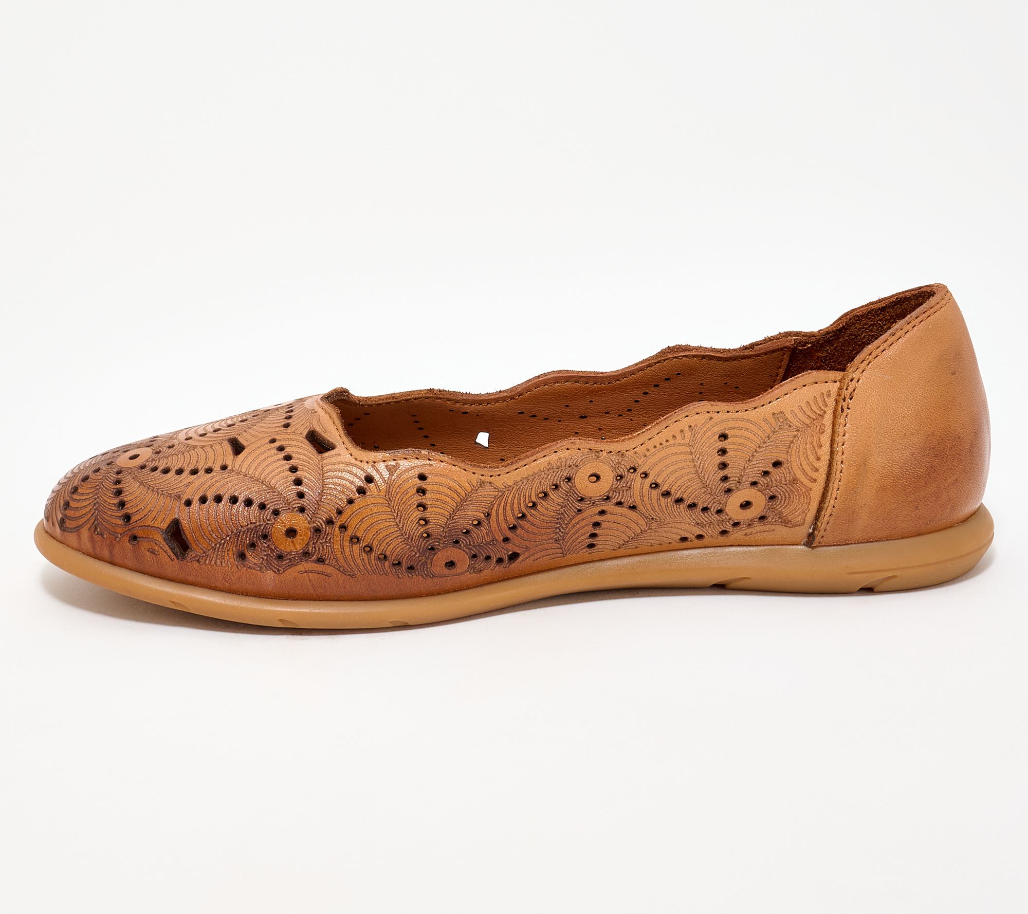 • Slip-on design, floral perforated leather upper