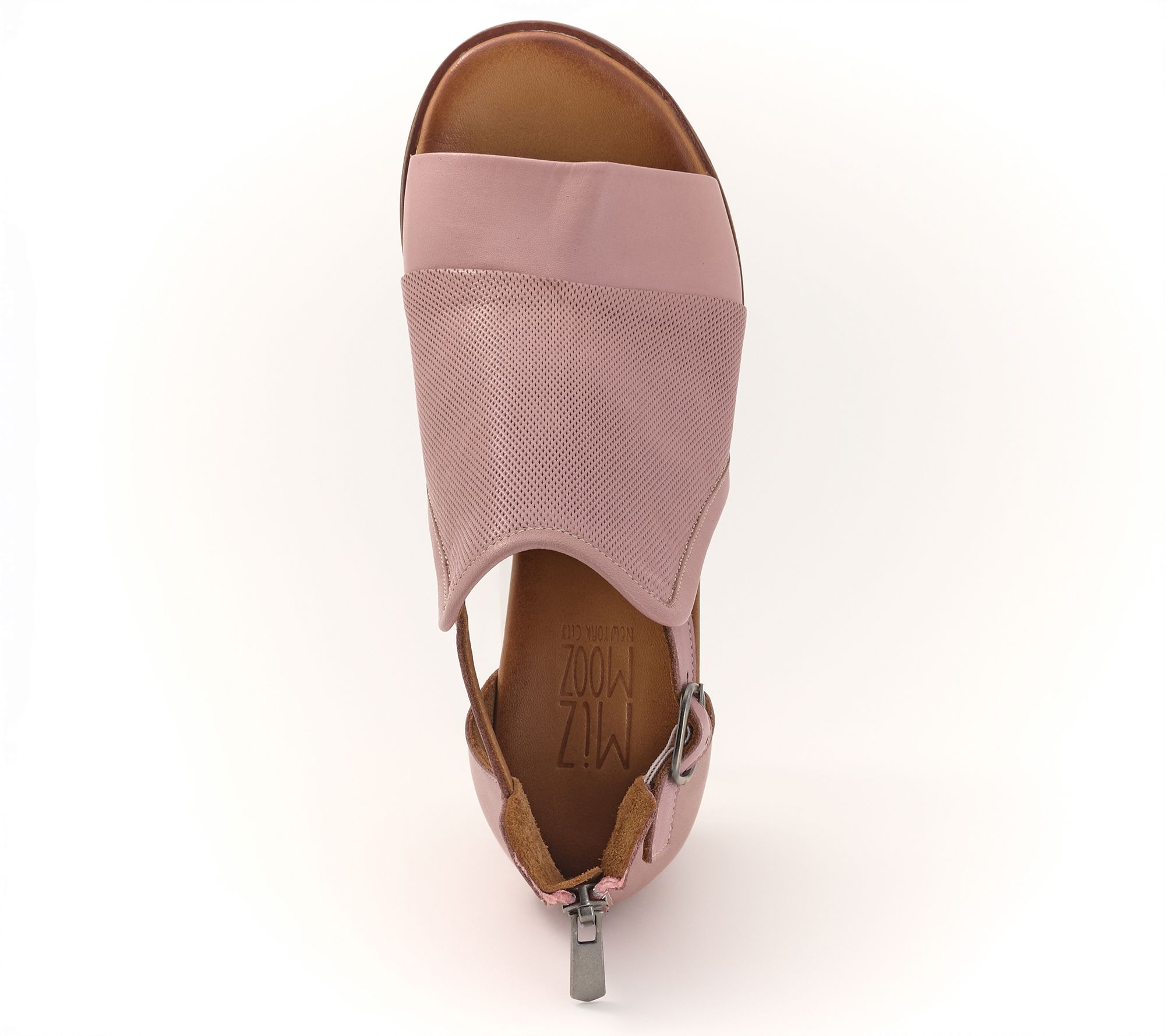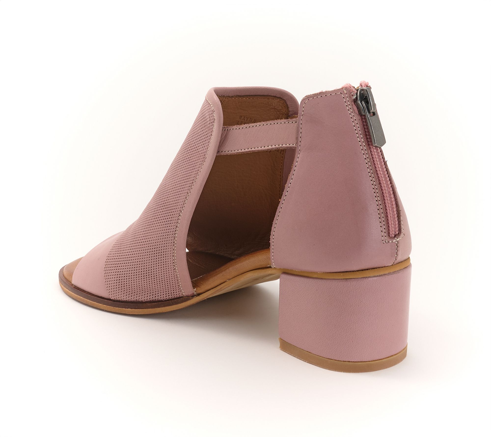 • Adjustable buckled ankle strap, back counter zipper