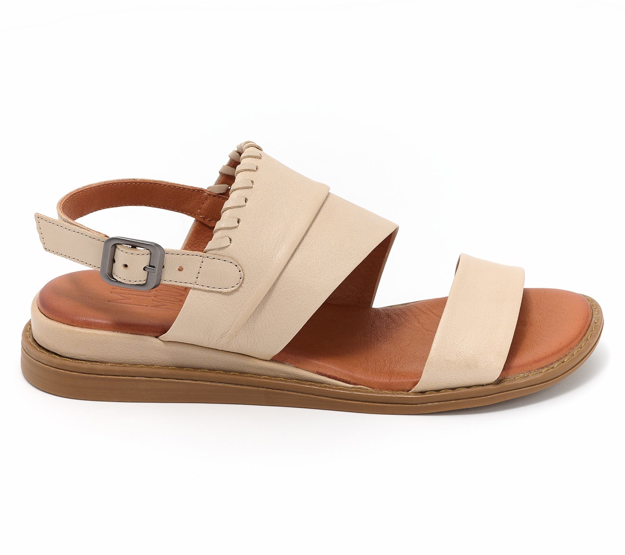 Long walks on sunny afternoons, breezy dinners with friends -- these leather whipstitch sandals bring both comfort and polished edge no matter where your day takes you. The adjustable buckled backstrap and plush dual-density insole deliver a secure, supportive fit, making every step relaxed and effortless. From Miz Mooz.