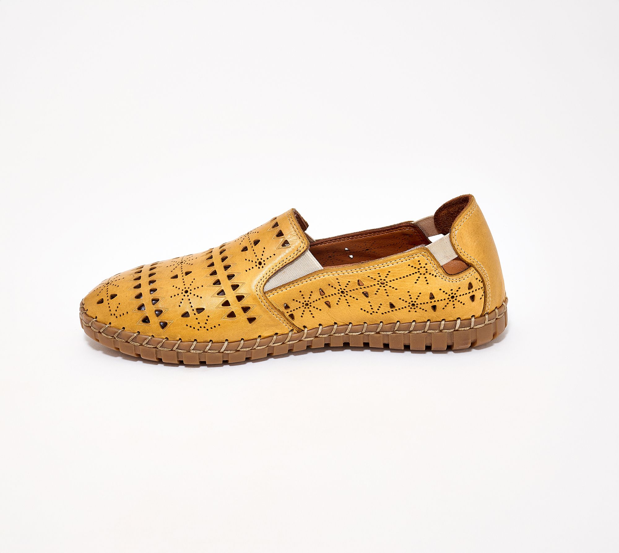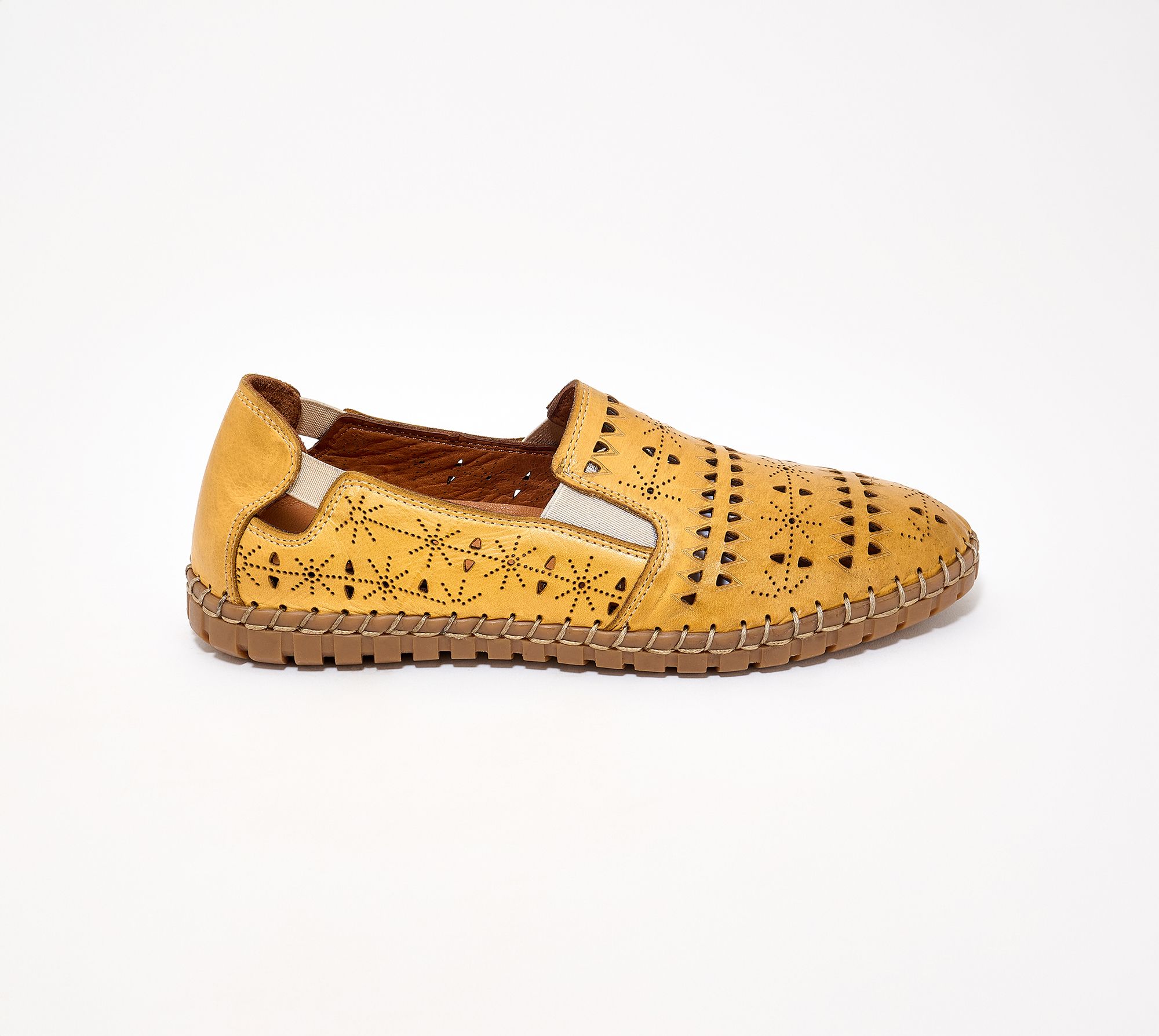 Stroll from morning errands to lunch with friends in these perforated leather slip-ons, featuring soft European leather, a cushioned footbed, and an easy, slip-on design that keeps you moving in style and comfort all day long. Laser-cut detailing adds a chic touch to any casual ensemble. From Miz Mooz.