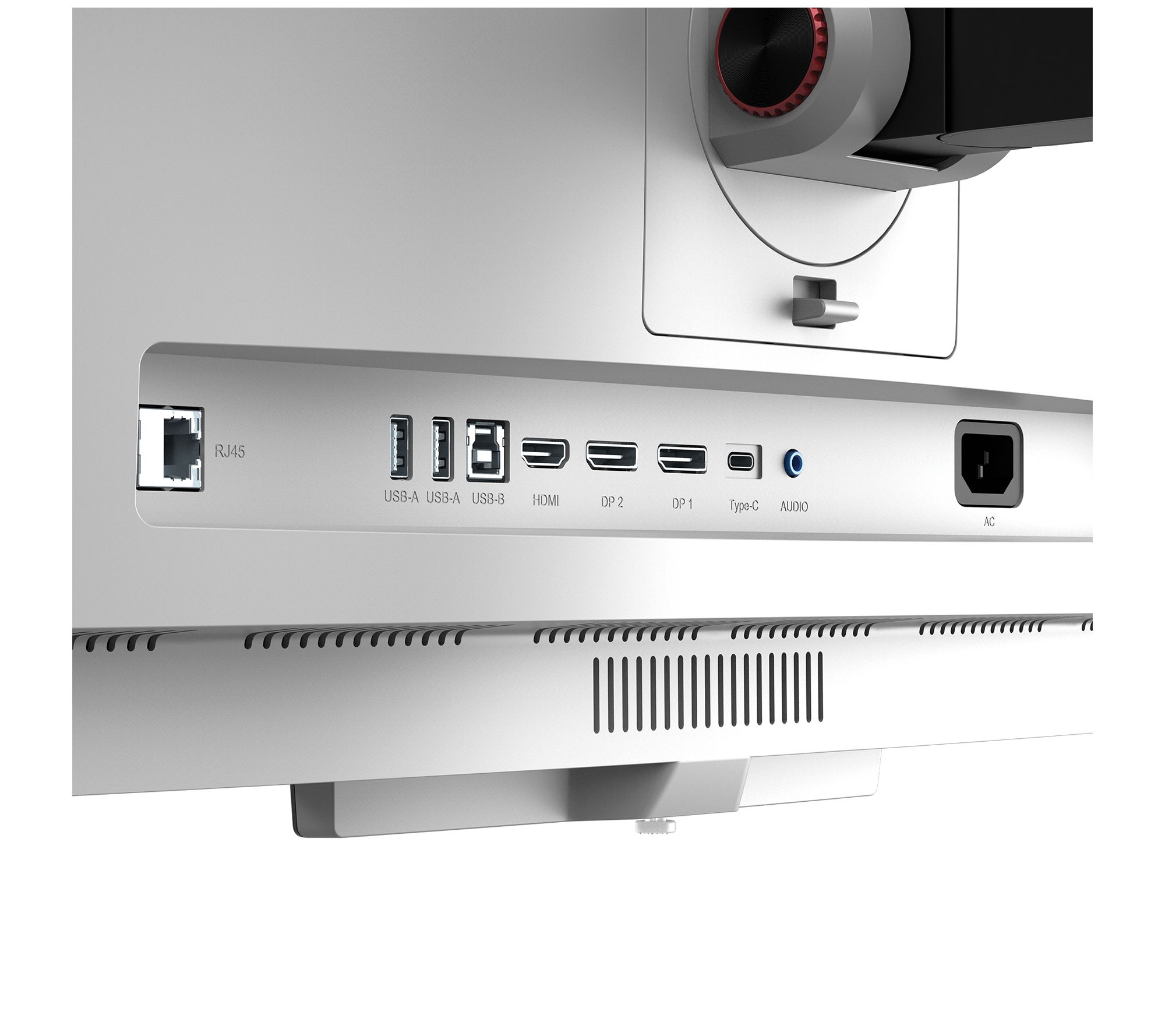 Built-in 2.1-channel stereo speakers with microphone
