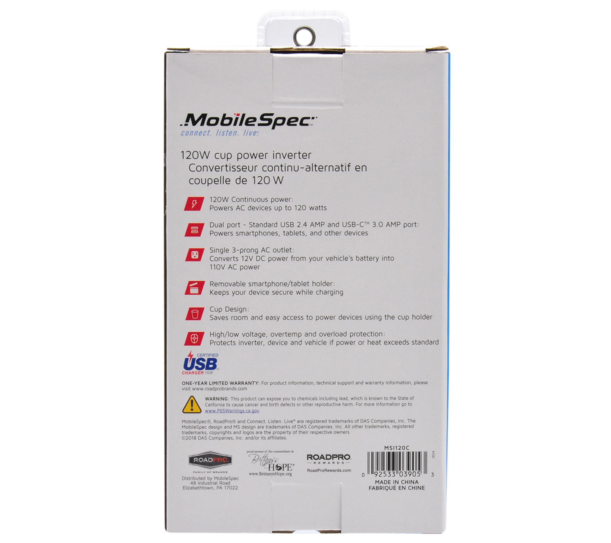• Includes MSI120C cup-holder power inverter with device holder and manual