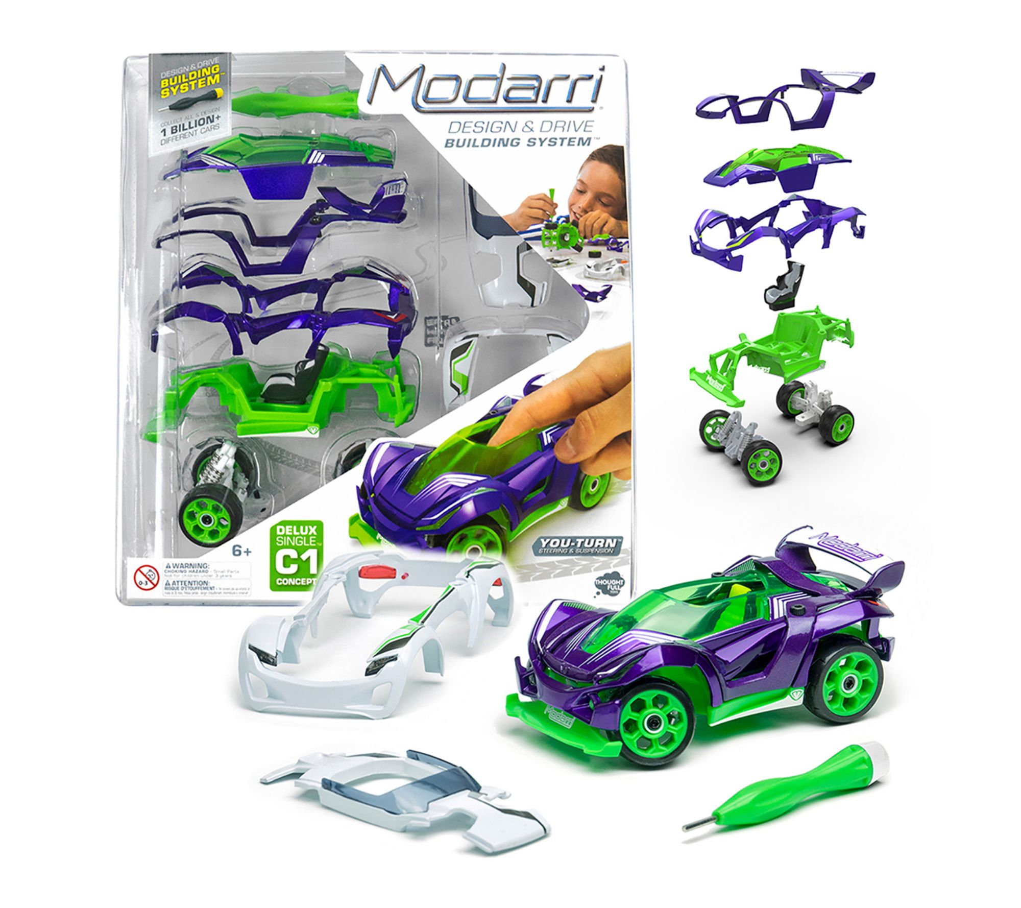 Aspiring car enthusiasts can unleash their creativity with this detailed model car, featuring a mix-and-match building system and real steering and suspension for hands-on fun. Nine interchangeable parts mean every build offers a new possibility, with super quick assembly that makes it easy to explore different designs. Bring the thrill of building and driving your own concept car to playtime. From Modarri.