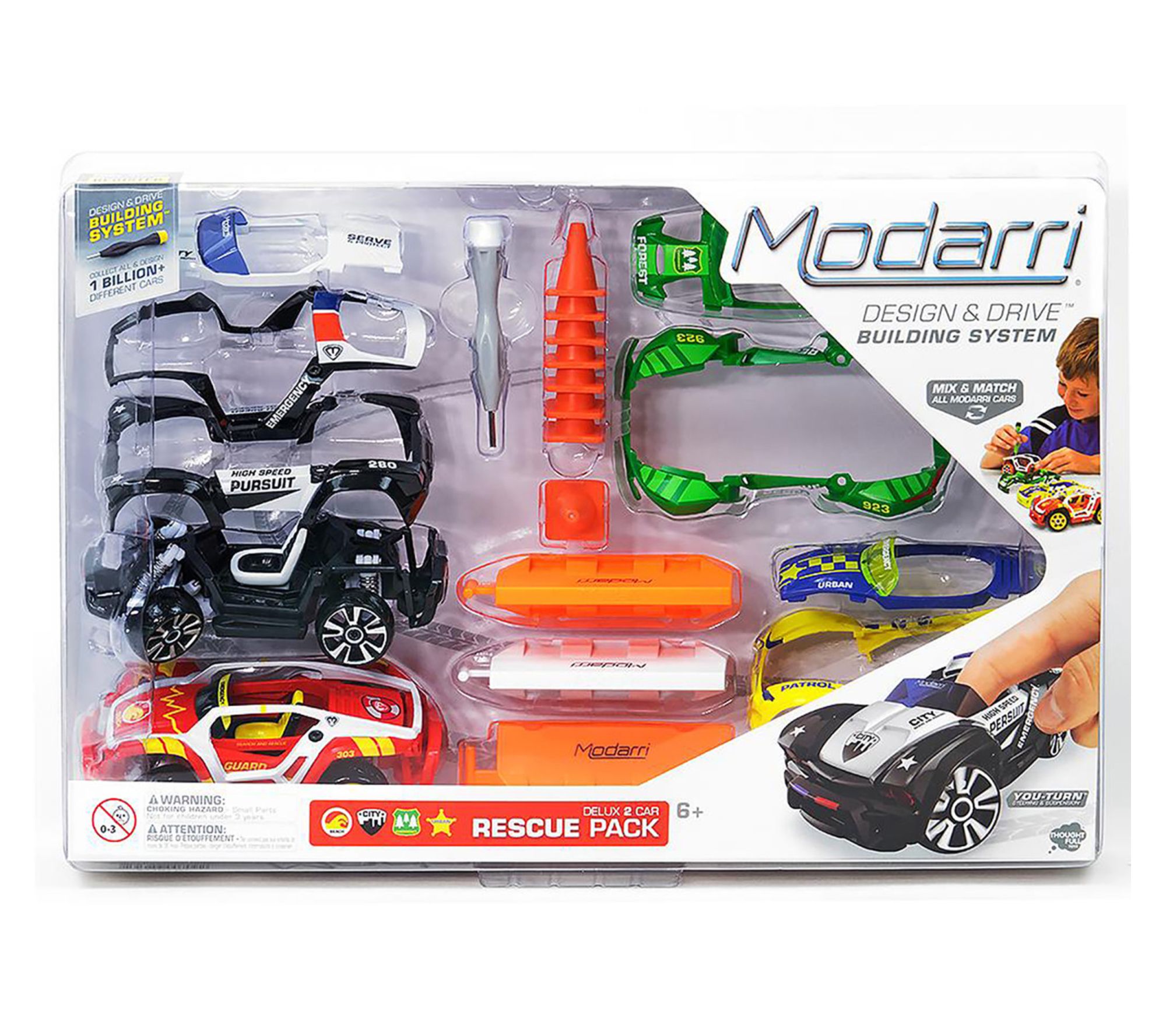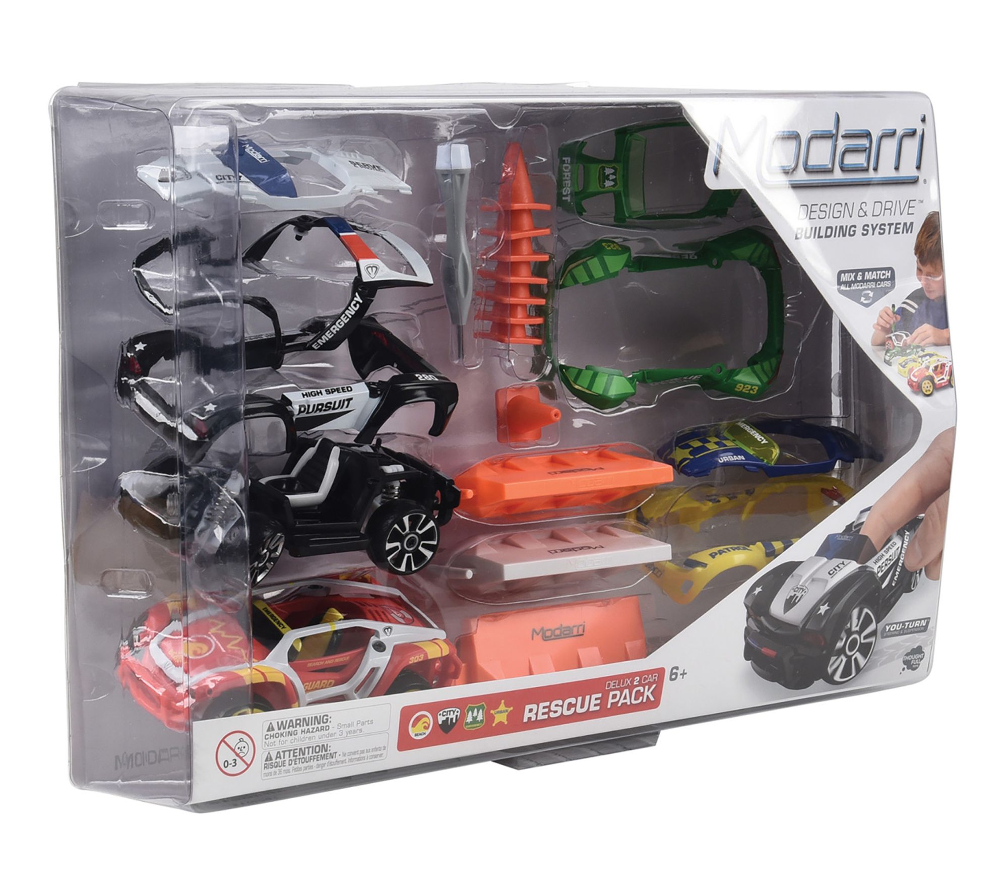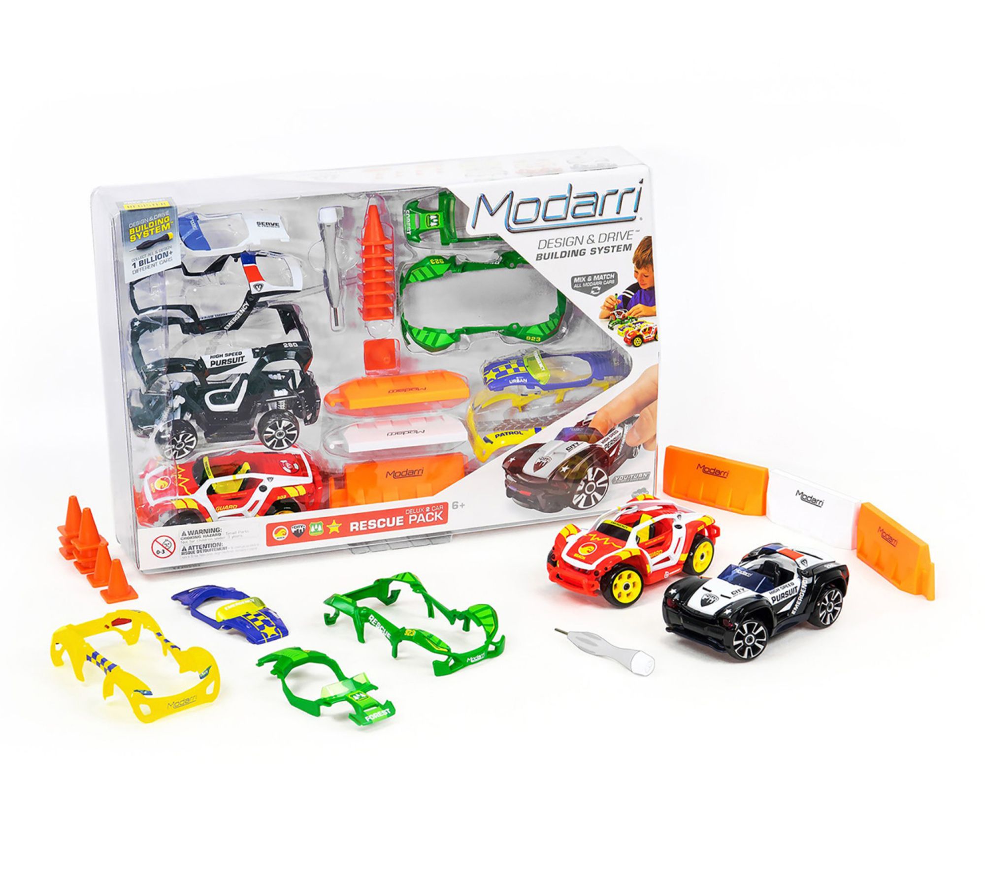 Gear up for a thrilling play session with the Modarri Deluxe 2 Car Rescue Pack. With mix-and-match building, interchangeable parts, and real steering and suspension, you can quickly build and race custom supercars that handle just like the real thing. Create endless car designs and enjoy hands-on excitement as you zoom around miniature racing obstacles. From Modarri.