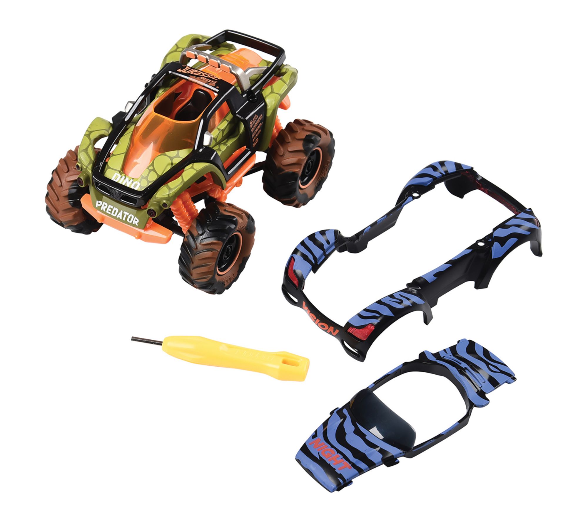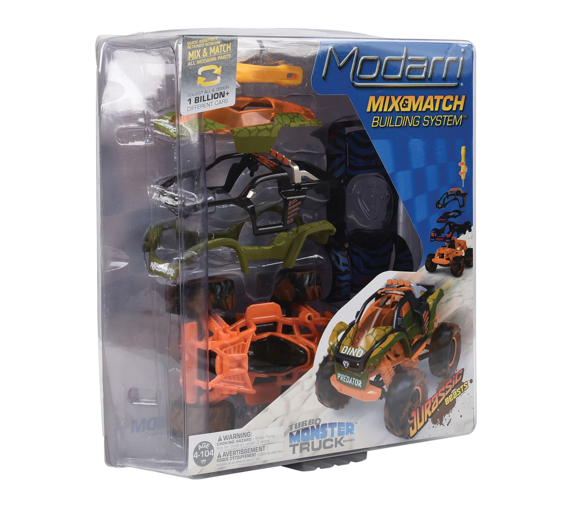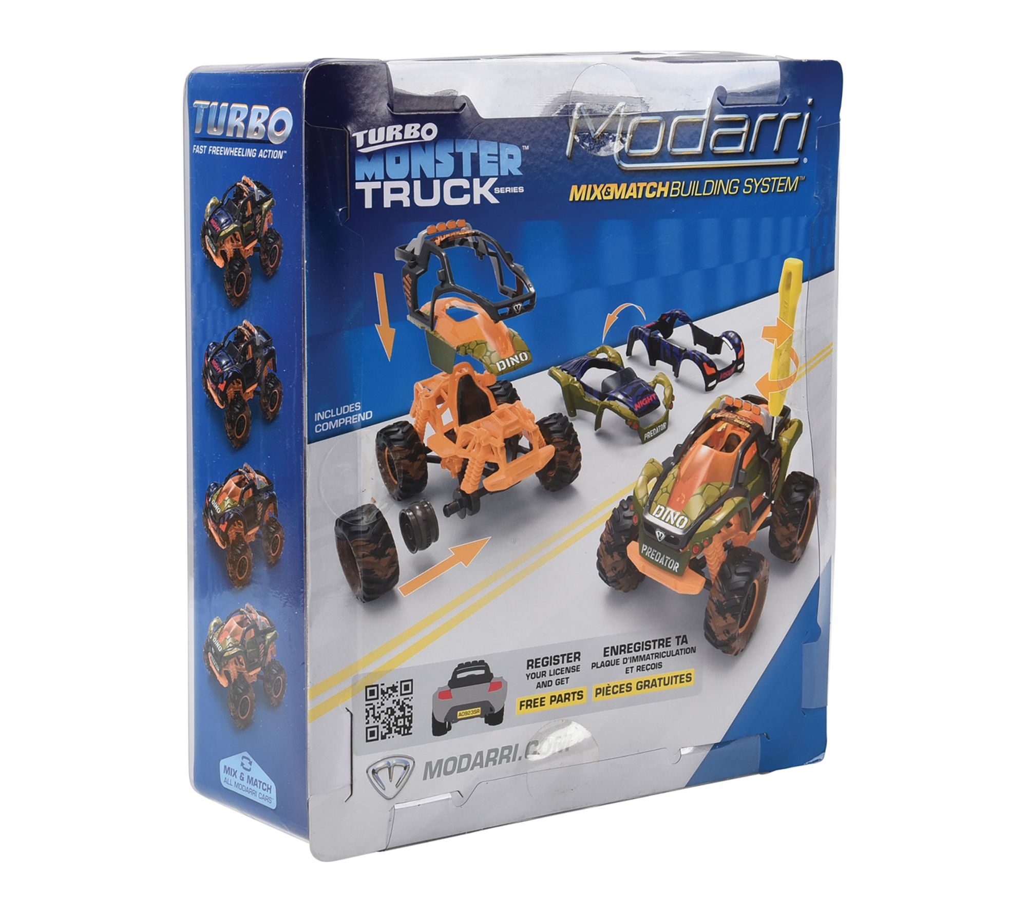 Inspired by wild reptilian warriors, this monster truck model lets you unleash limitless creativity -- mix, match, and design new supercars in seconds with interchangeable parts. Challenge friends to build the fiercest ride, then steer it through epic adventures using innovative suspension and real steering that reacts at every turn. From Modarri.