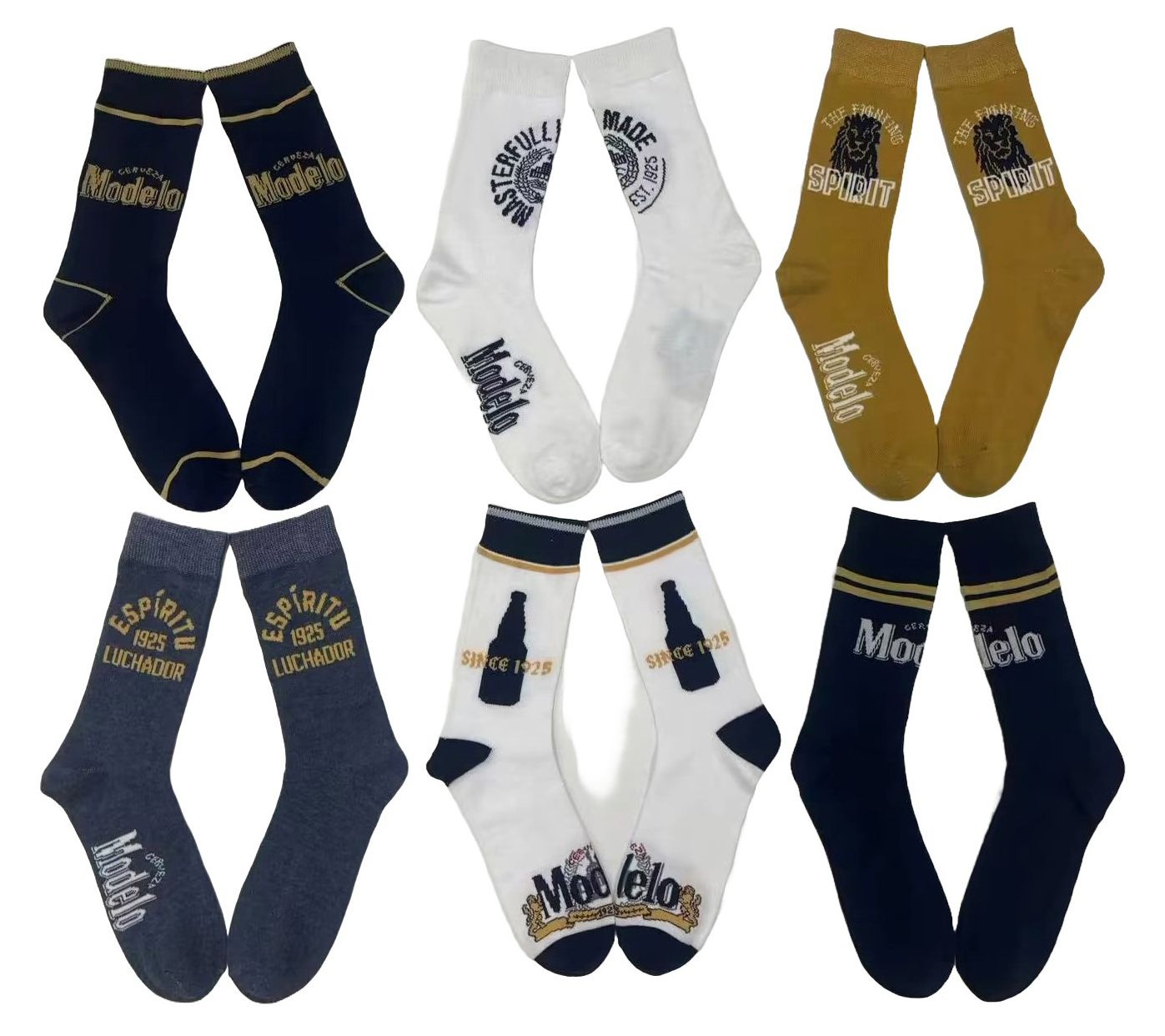 Celebrate your love for Modelo with this crew sock set featuring unique designs that add a fun twist to any outfit. Perfect for the beer enthusiast, these socks offer both comfort and style, making them an ideal gift or addition to your own collection. From Modelo.