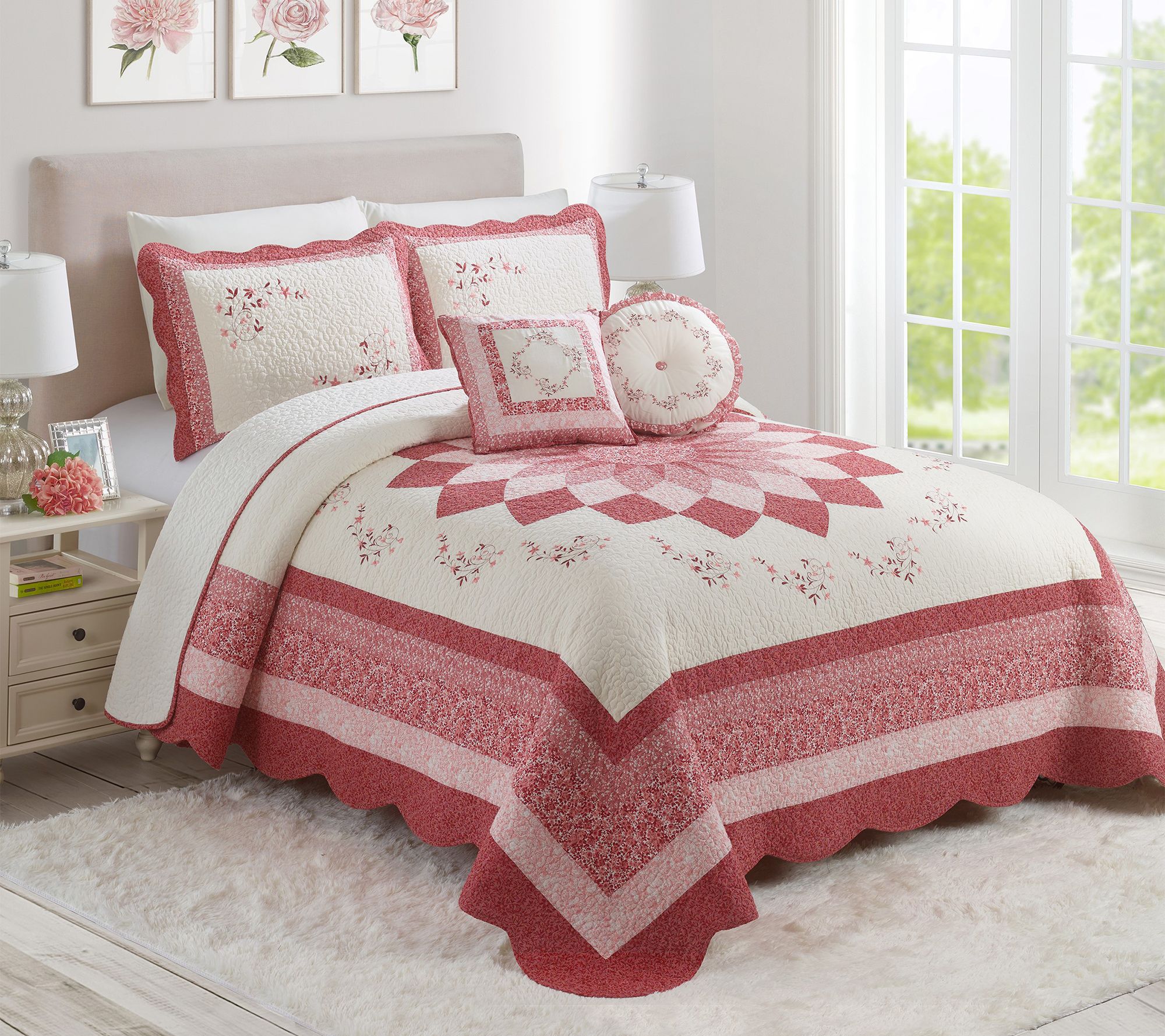 Bring a decorative focal point to your room with this pieced, traditional dahlia-design pillow sham. From Modern Heirloom.
