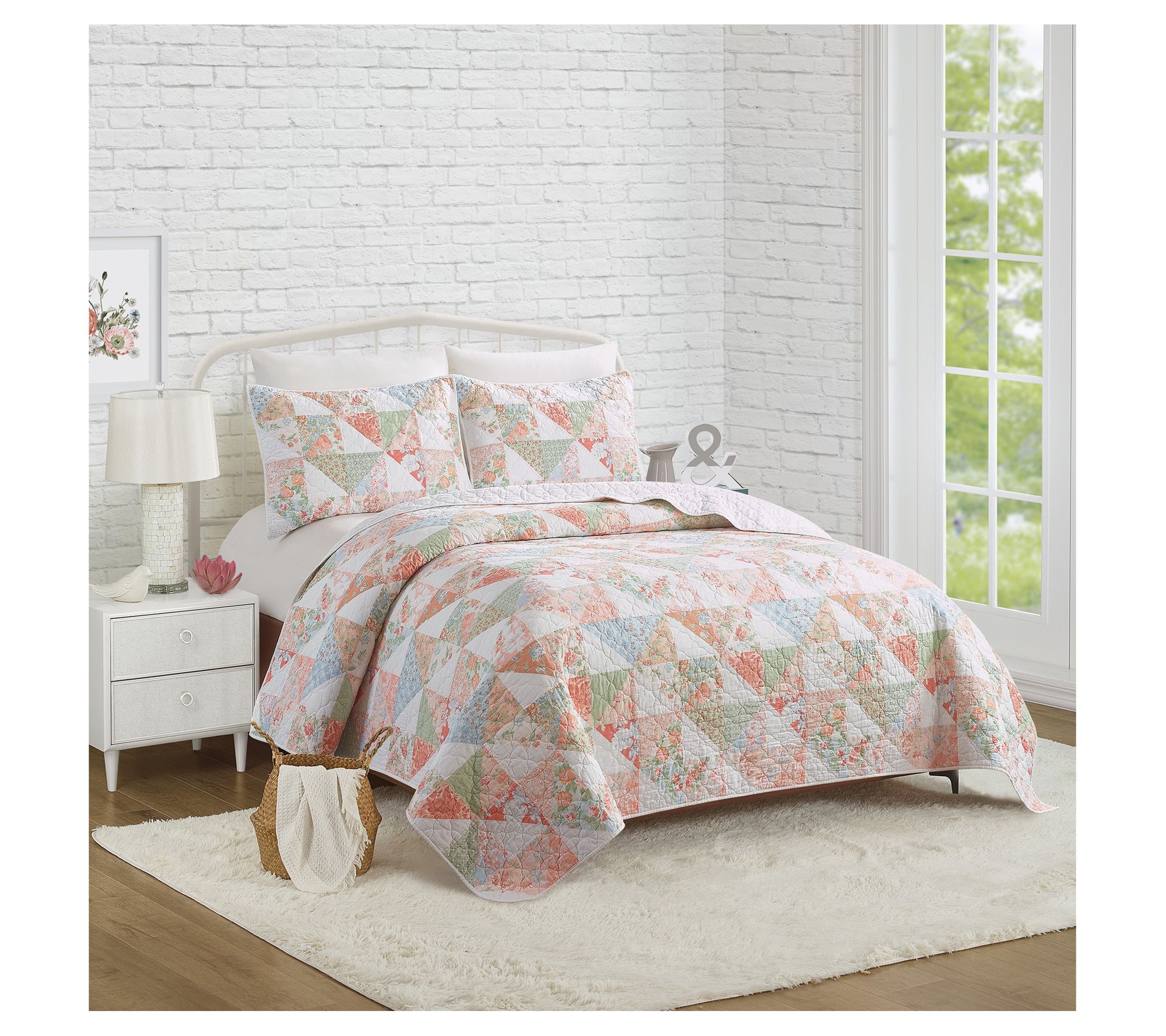 Bedeck your bedroom with the inviting energy of this vintage-inspired quilt set featuring a classic patchwork of delicate floral motifs. From Modern Heirloom.