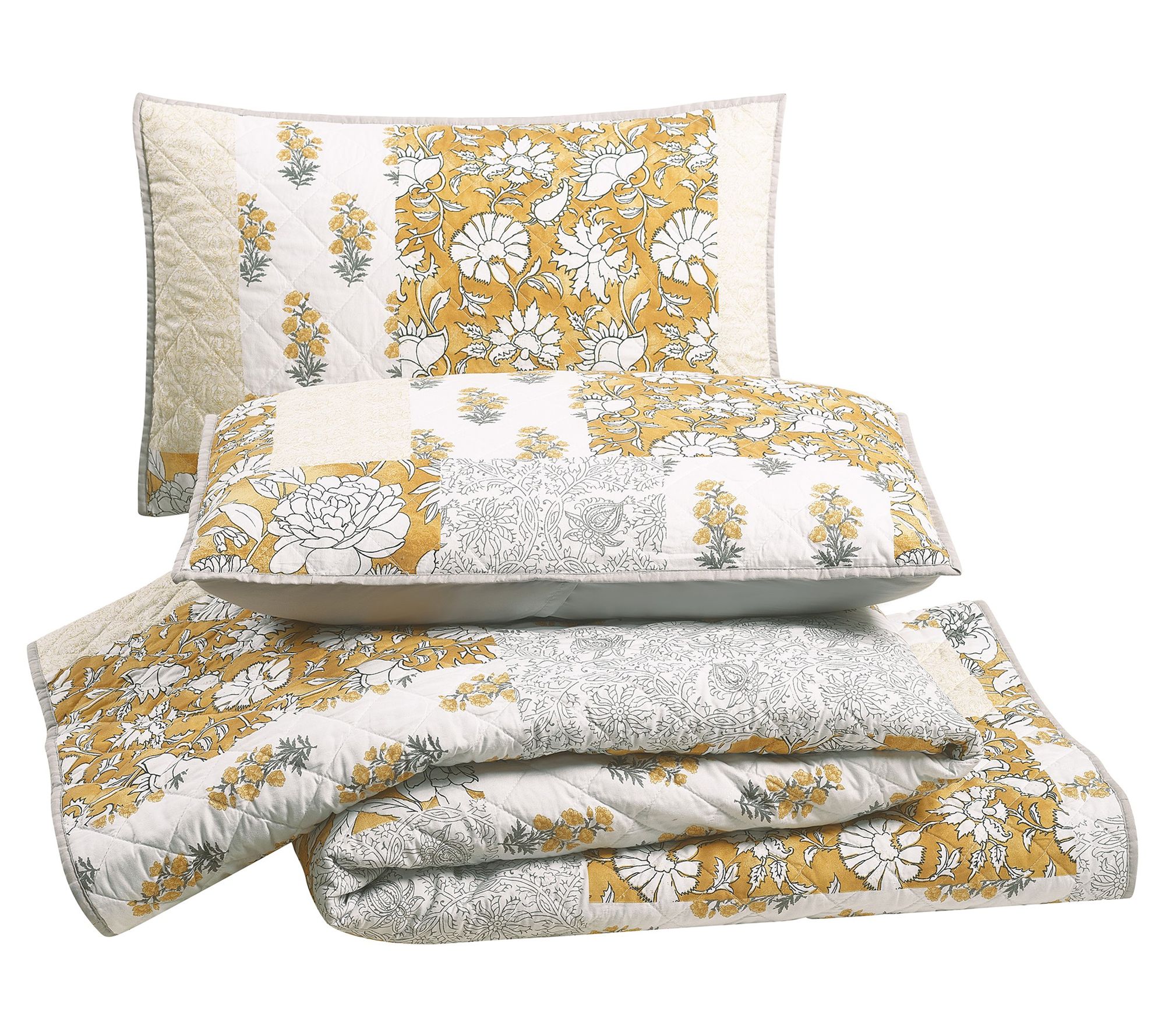 Introduce a cheerful motif to your bedroom setting with this cozy quilt set boasting soft microfiber decorated in an assortment of floral patterns. From Modern Heirloom.