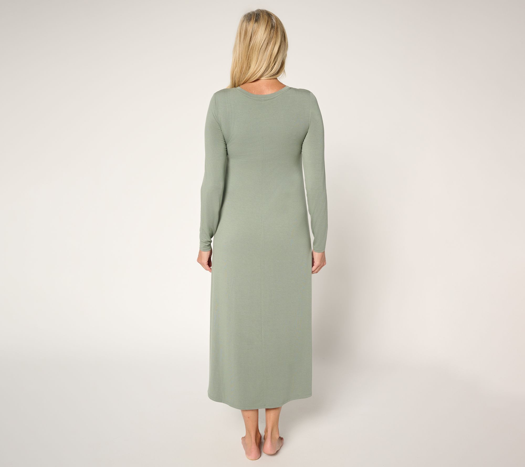 From morning coffee to evening downtime, this long-sleeve knit dress makes relaxing at home or heading out easy and comfortable. Soft jersey fabric and a built-in slim-fit bra with removable pads offer gentle support and coverage, while the classic midi length creates a versatile look for every part of your day. From Modern Soul.