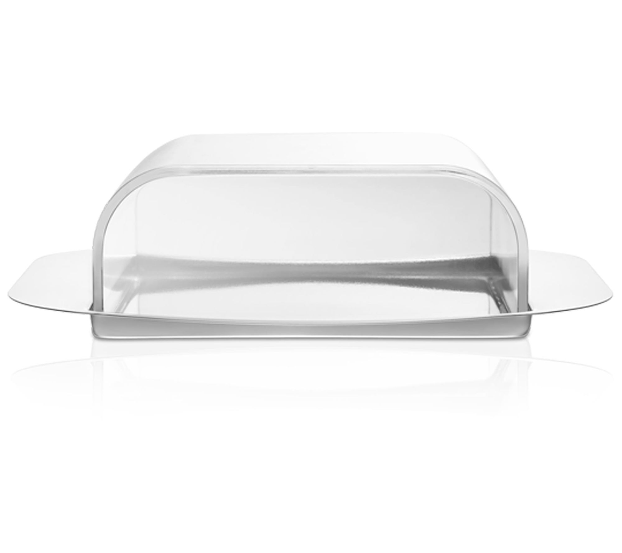 Elevate the look of your breakfast nook or dining area when you set out this beautiful butter dish, featuring a stainless steel base topped with a clear plastic cover, and uncomplicated style that pairs well with any decor. From moHA!.