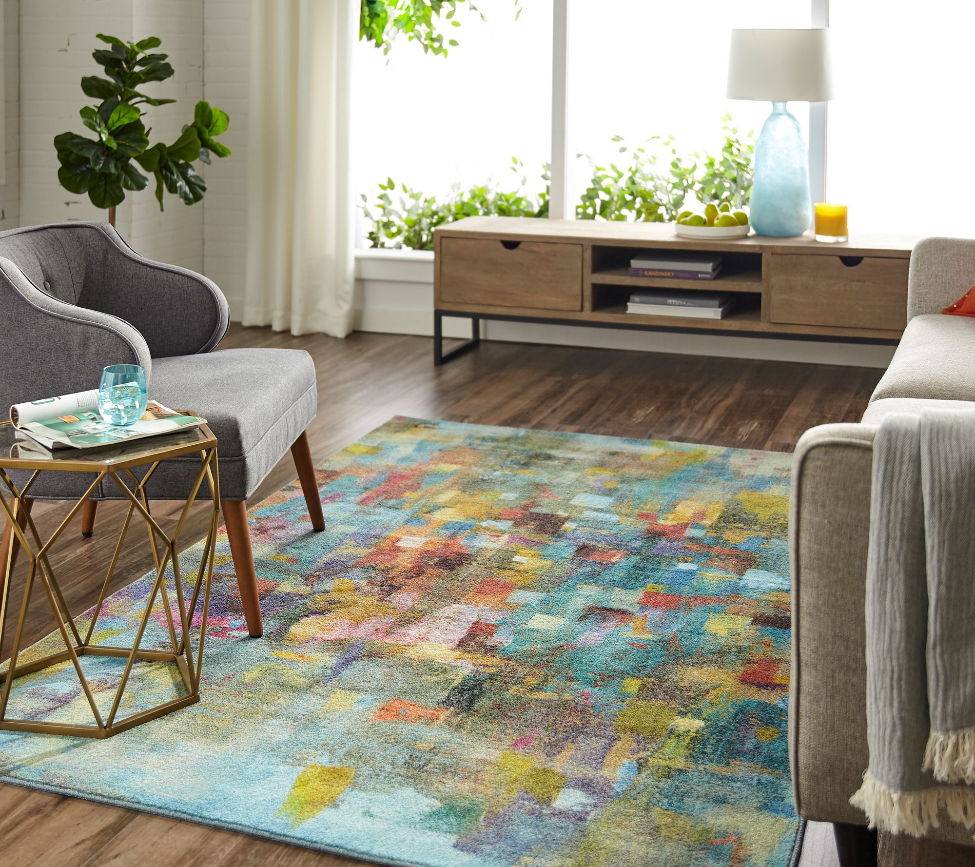 A colorful collage of pixilated squares form or beautiful work of abstract art for your floor with this Confetti Canvas area rug. From Mohawk.