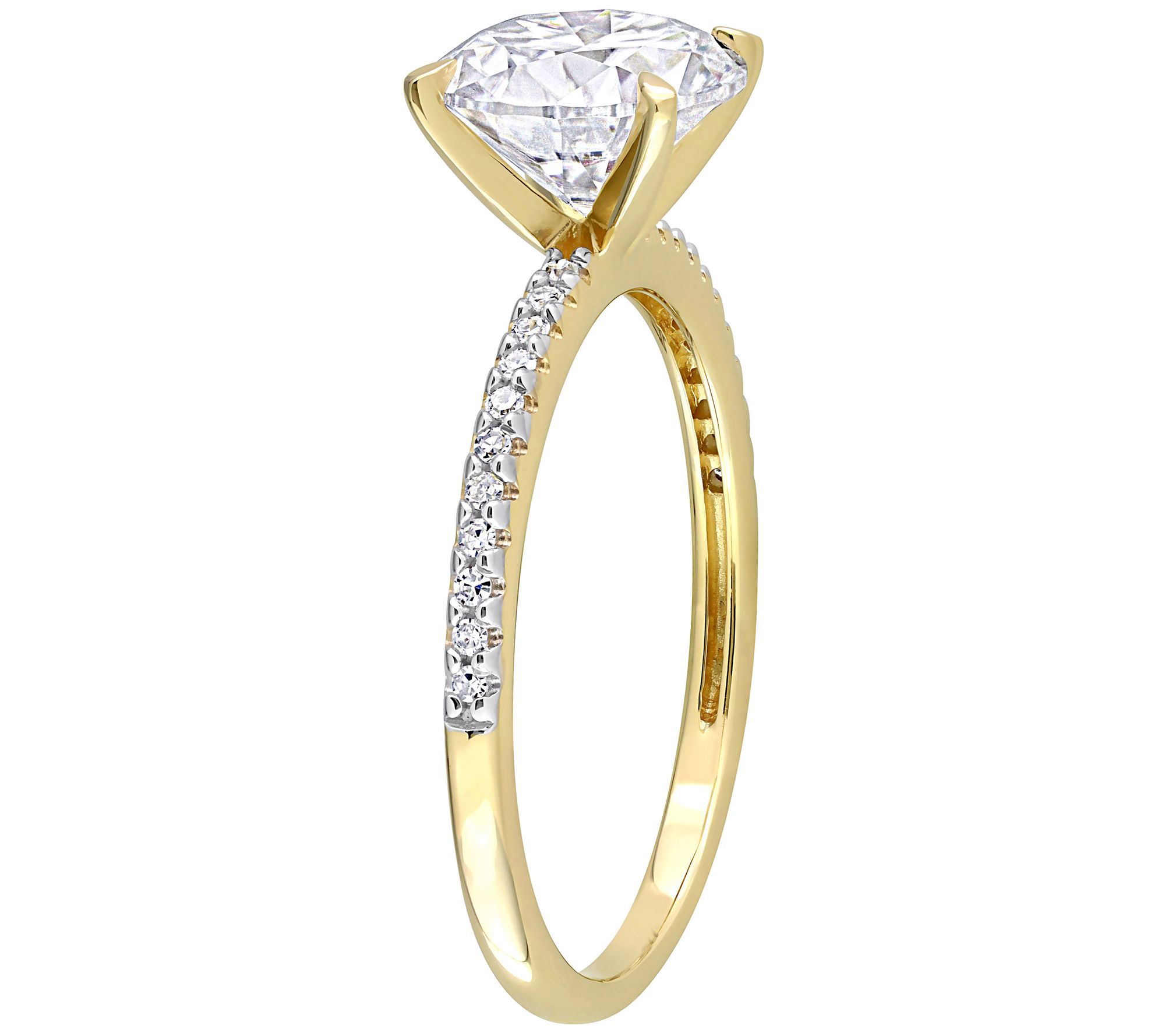 Total lab-created moissanite weight is approximately 1.85 carats; diamond equivalent weight is approximately 2.00 carats