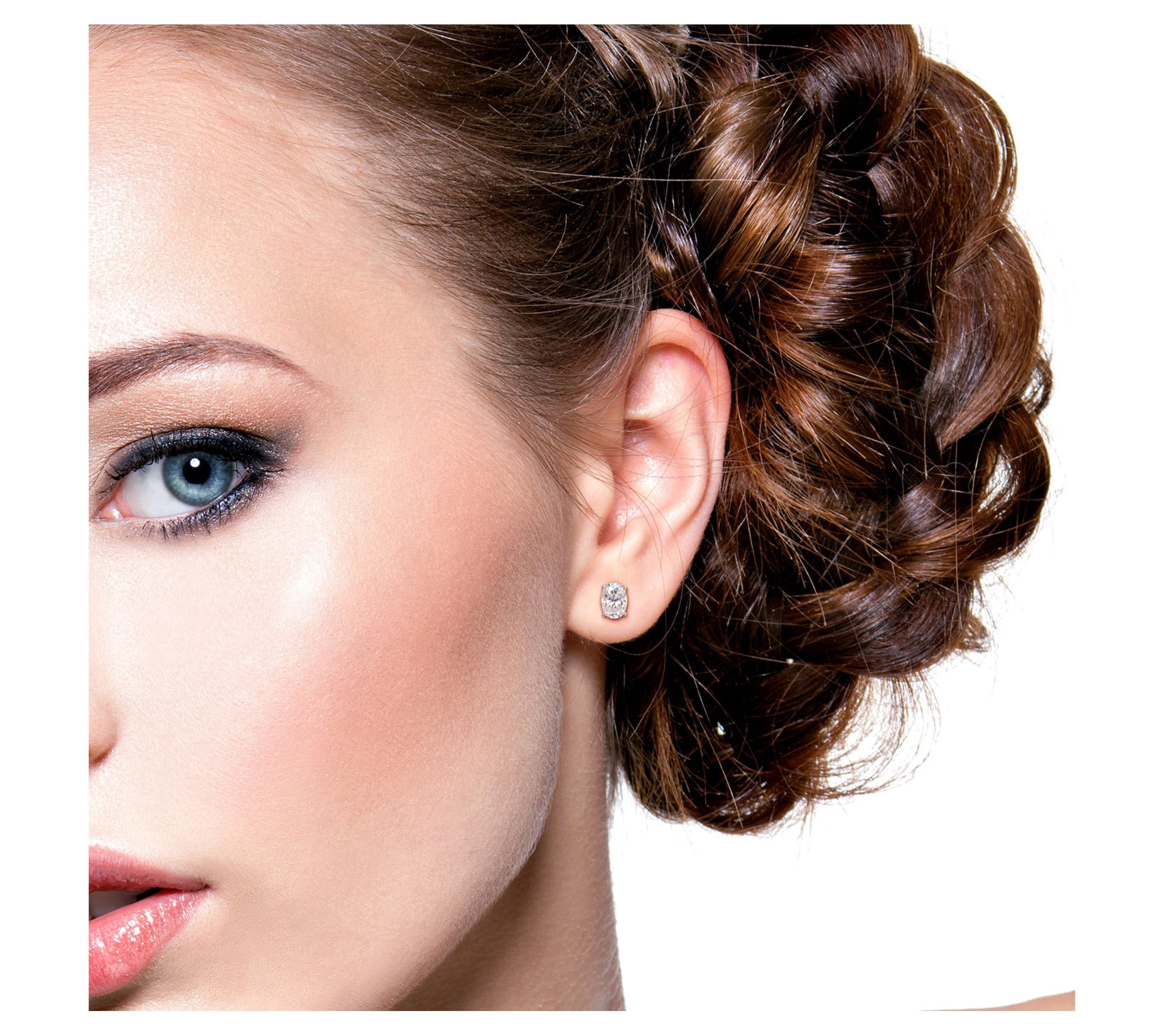 • Earrings: oval-cut, prong-set, lab-created moissanite stones; polished finish; posts and clutches, for pierced ears only