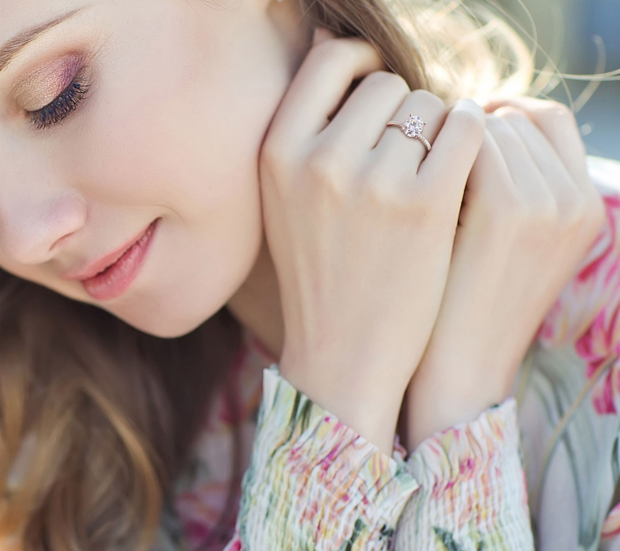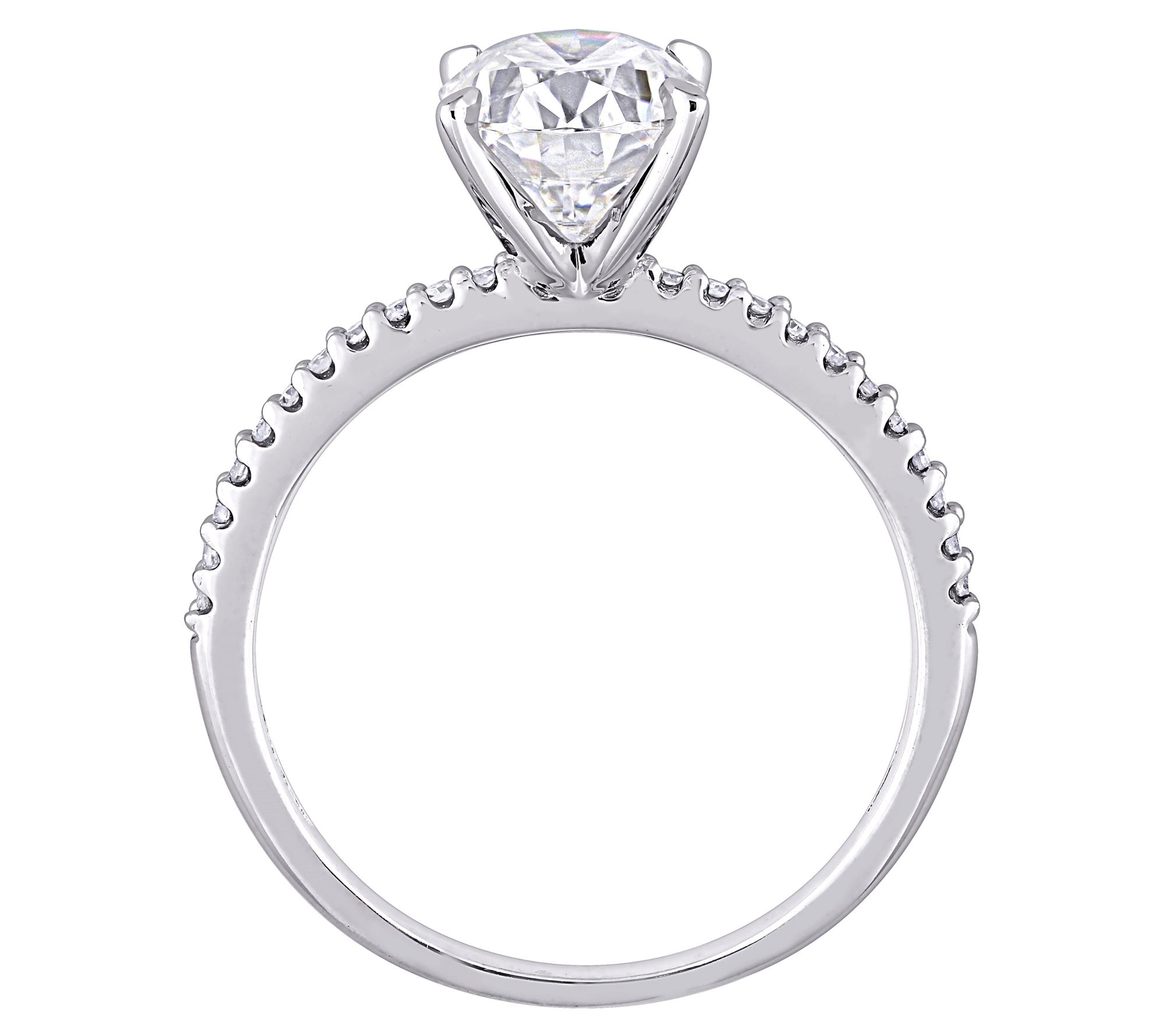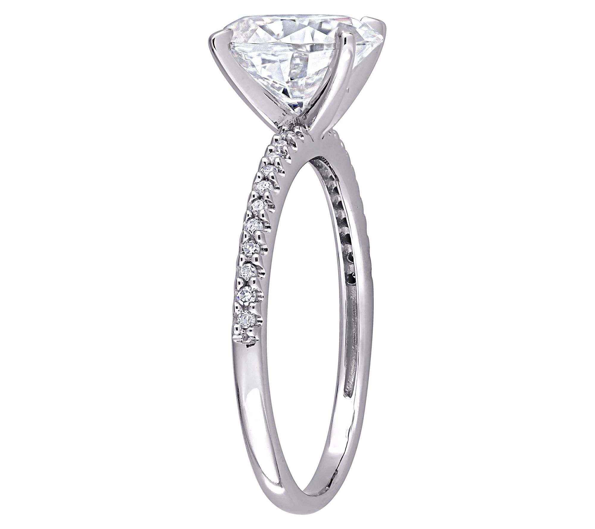 Say "yes" to the fiery sparkle and elegant design of this radiant engagement ring. It showcases a brilliant lab-created moissanite in the center and gorgeous diamond accents on the sides. From MoissanIce.