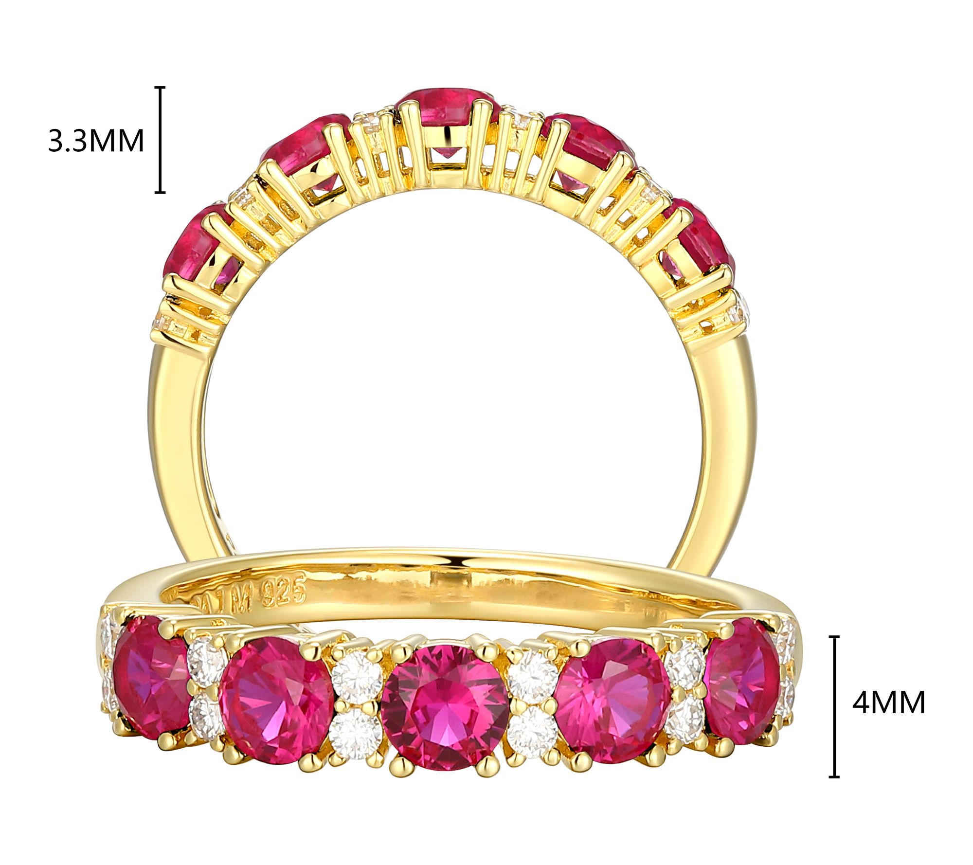 A touch of sparkle brings your look to life with this 18K gold-plated sterling silver band, shimmering with lab-grown rubies and dazzling lab-grown moissanite accents. Whether you're dressing up for a dinner out or brightening your everyday style, this ring effortlessly blends rich color with modern shine.