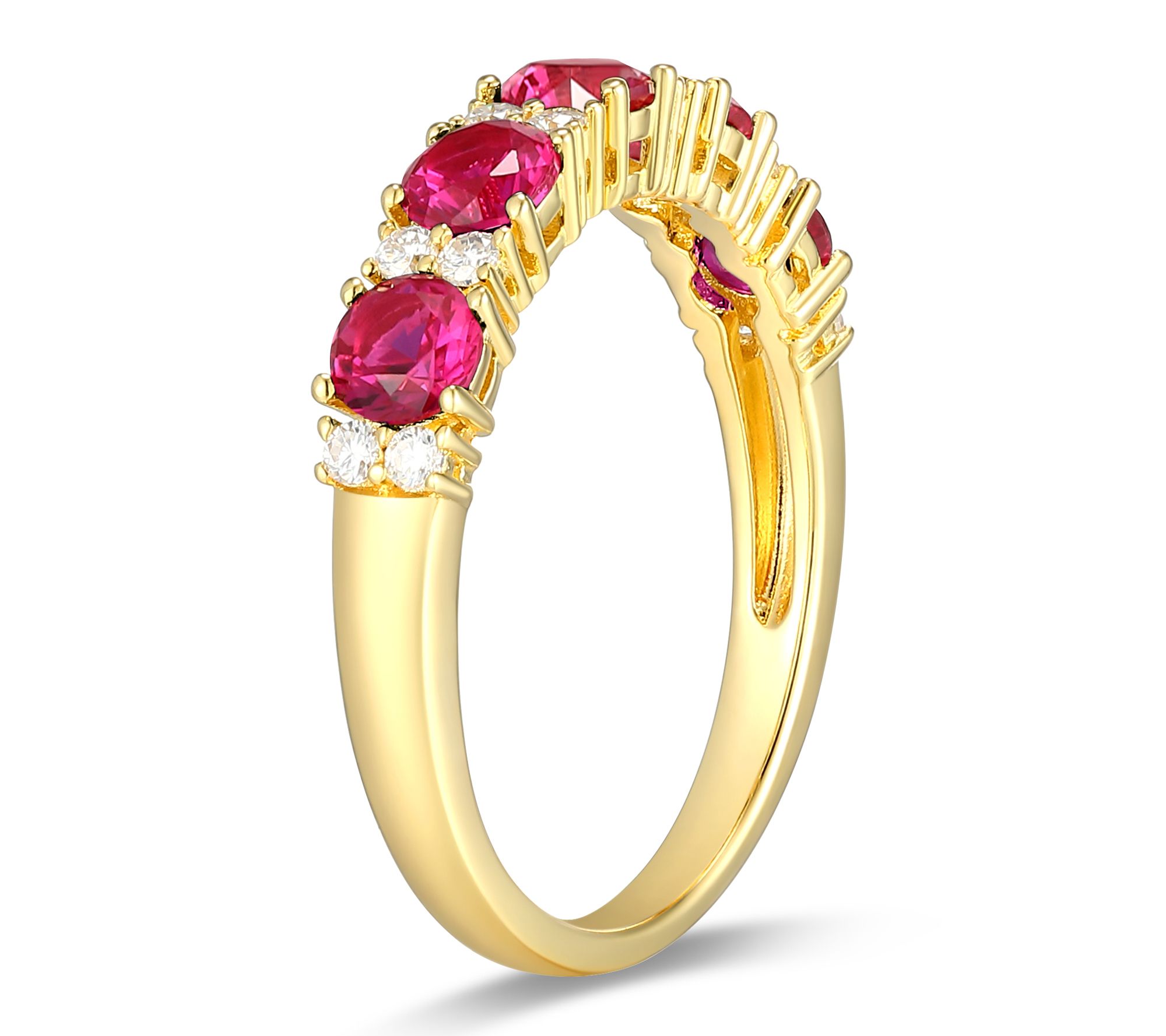 Five lab-grown rubies with two lab-grown moissanites between each stone