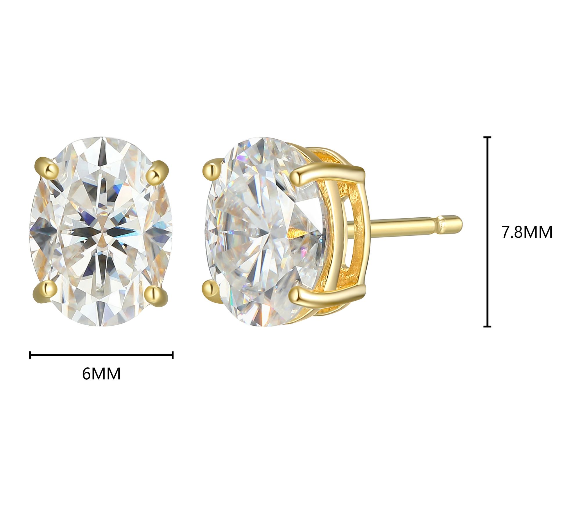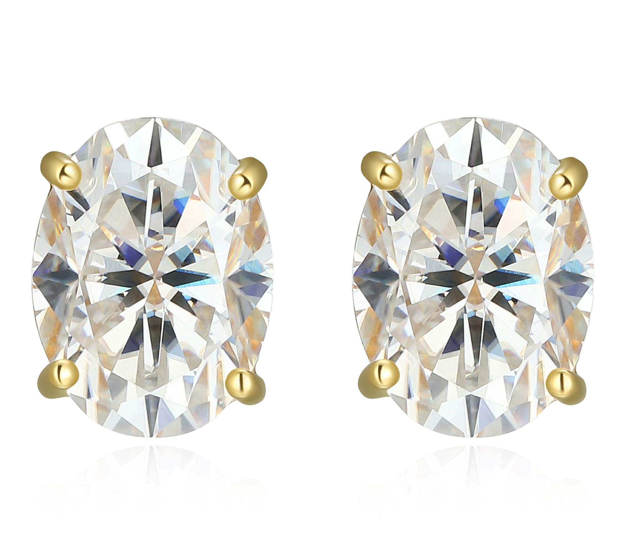 Shine through every special moment with these sparkling stud earrings, featuring oval-cut lab-grown moissanite that captivate with their bright presence. Whether paired with a little black dress or adding a touch of glamour to your everyday look, these earrings offer effortless brilliance and modern elegance you'll reach for again and again.
