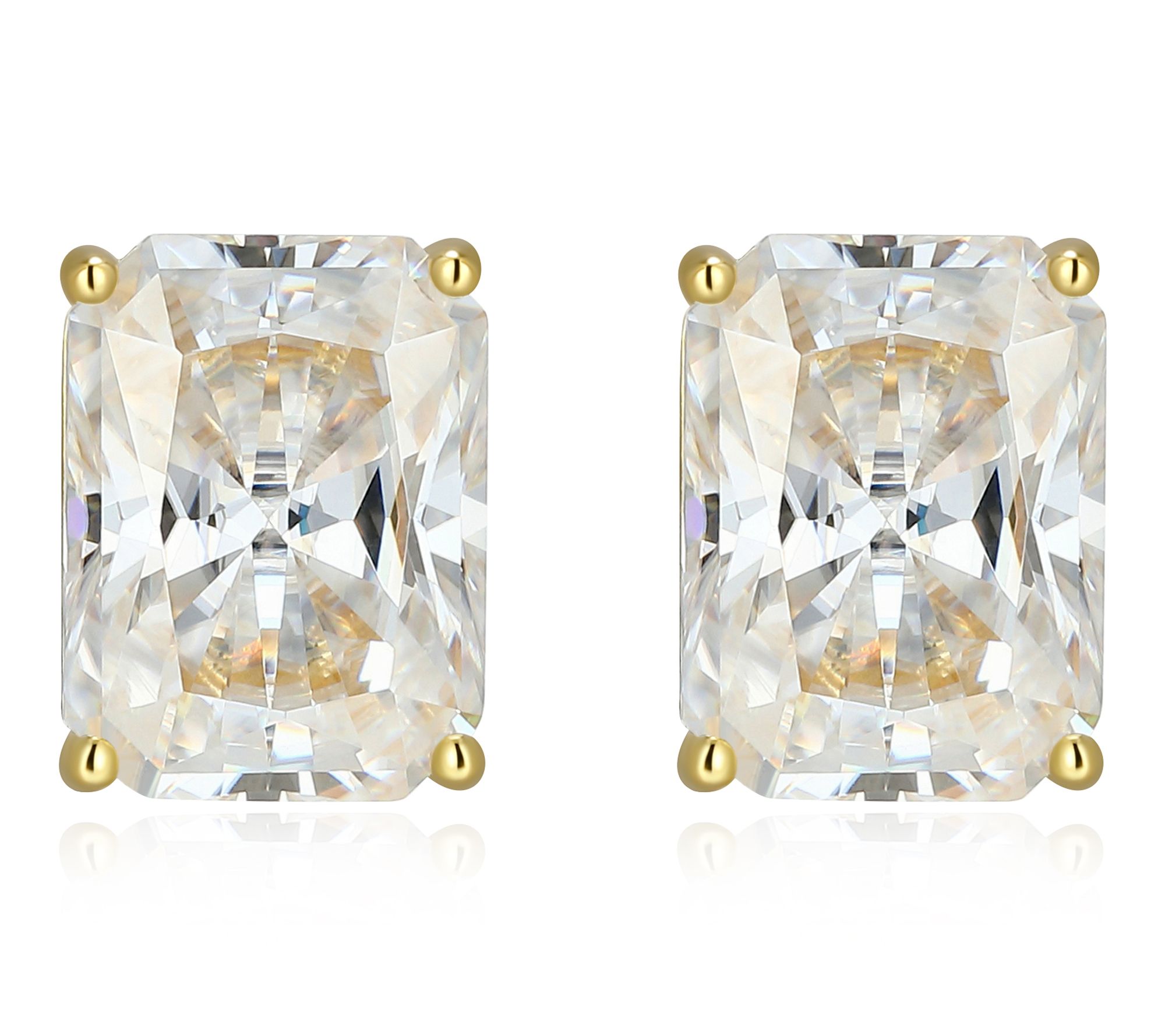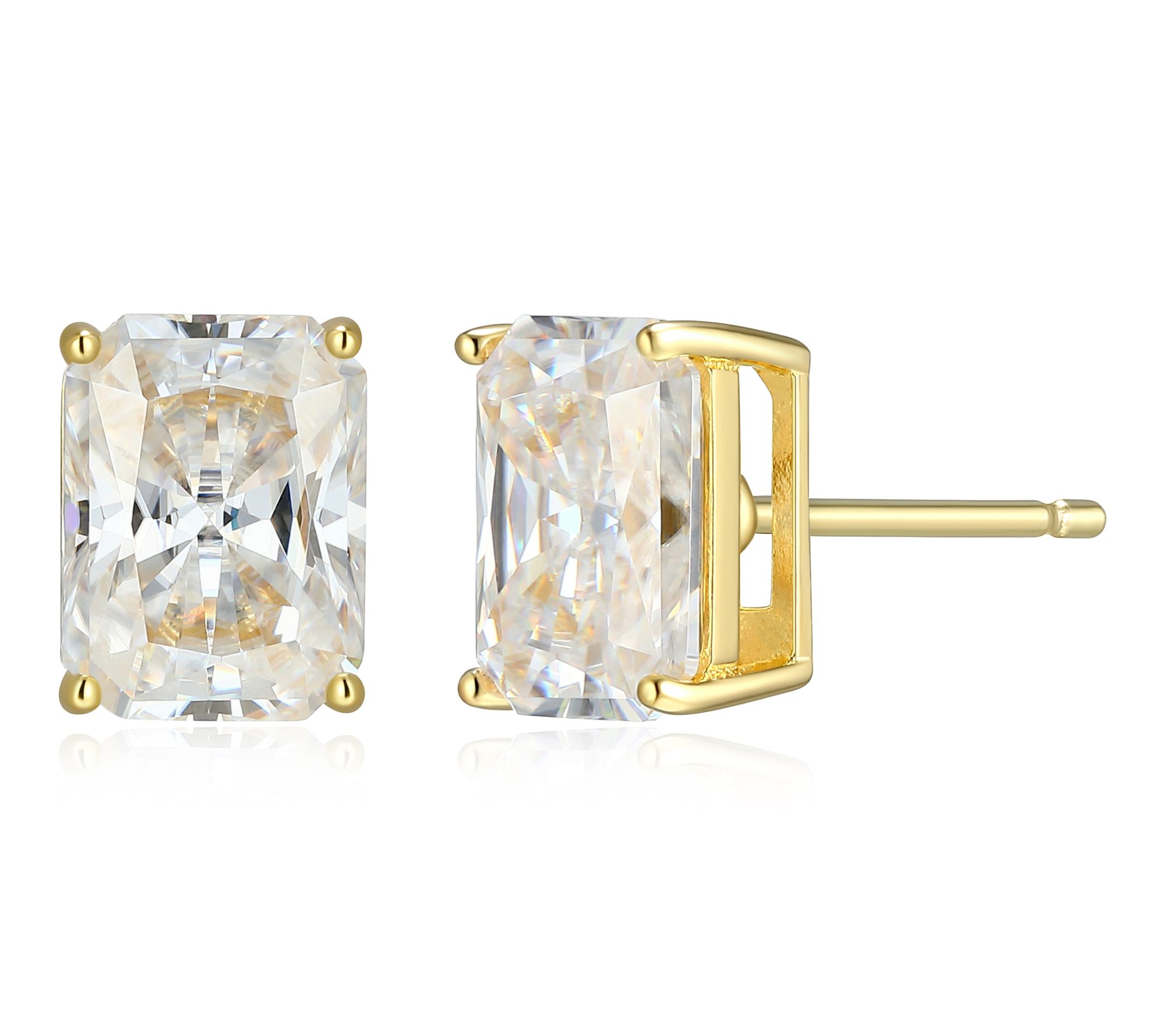 Catch the light from every angle with these stud earrings, showcasing sparkling emerald-cut lab-grown moissanite stones set in lustrous 18K gold-plated or platinum-plated sterling silver. Whether you're heading to a family celebration or adding a touch of glamour to a date night, these earrings offer brilliance and timeless elegance with every wear.