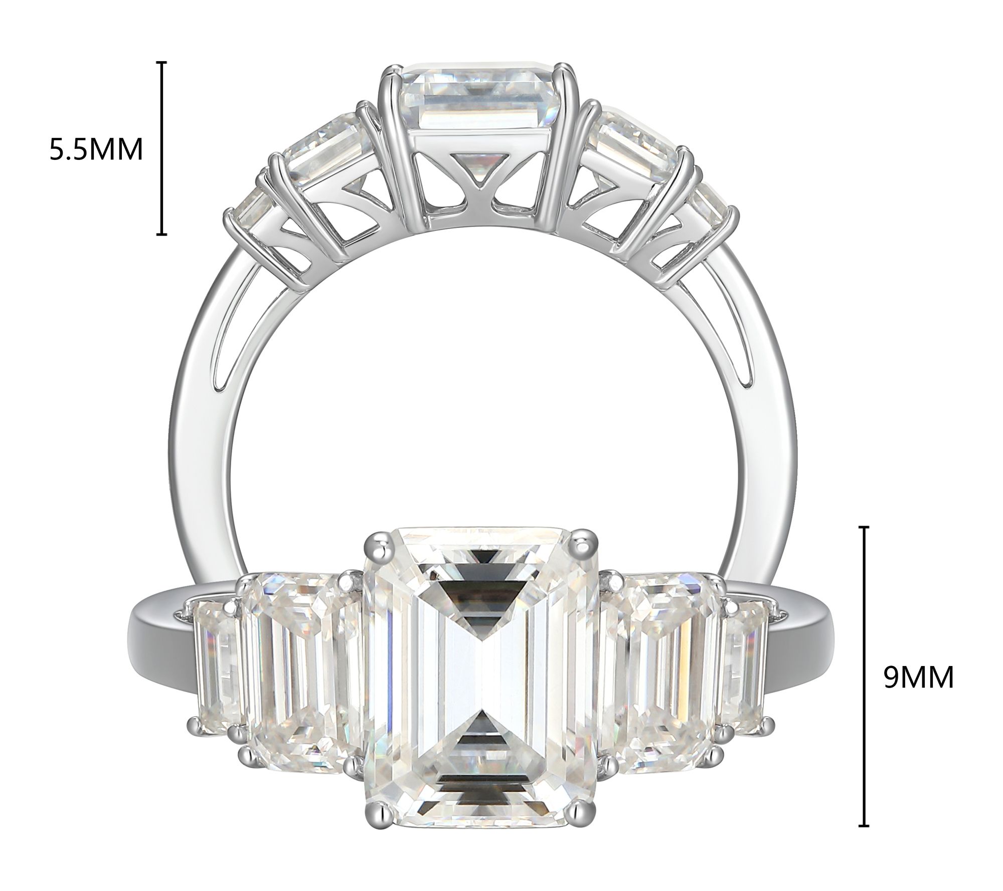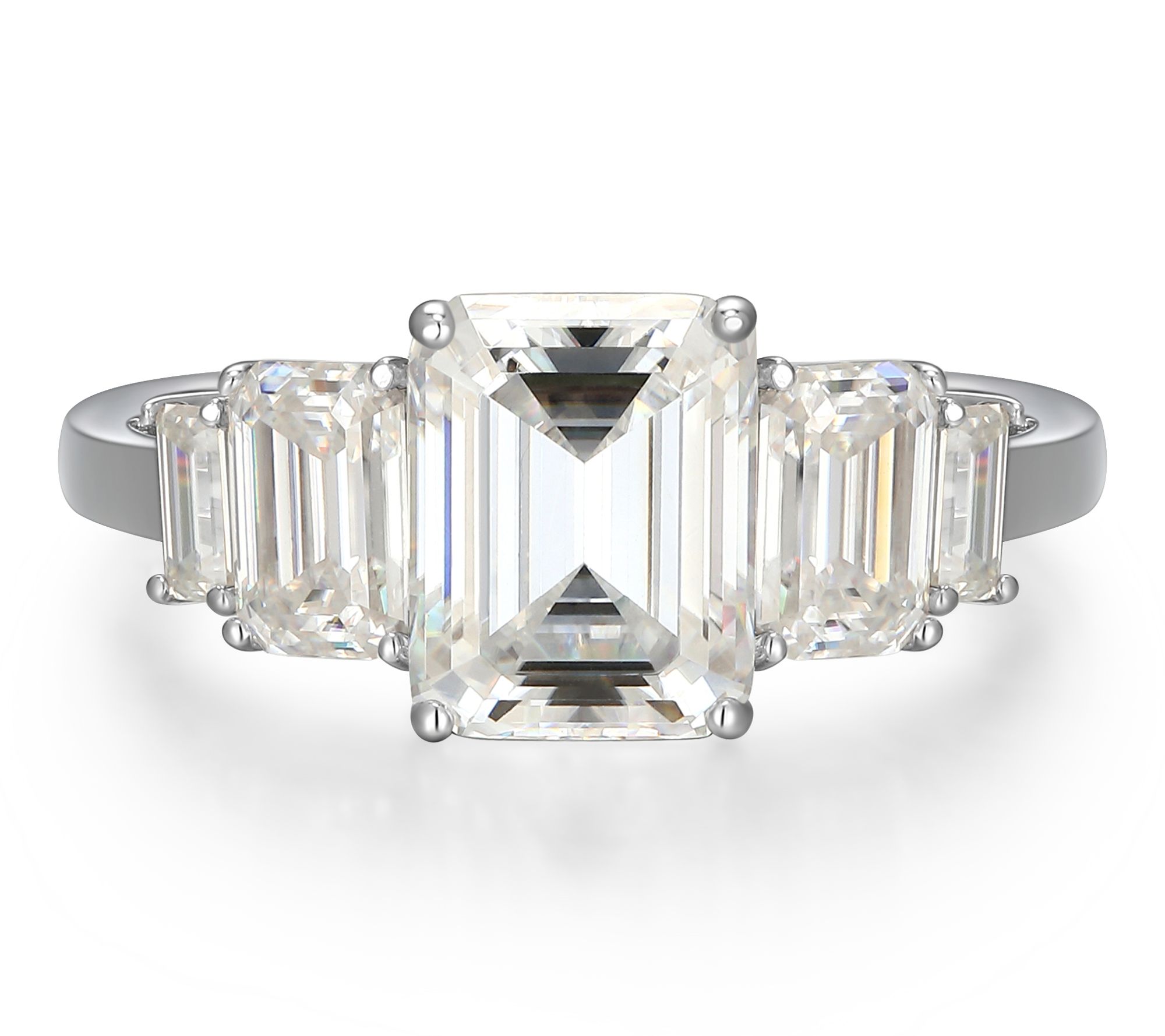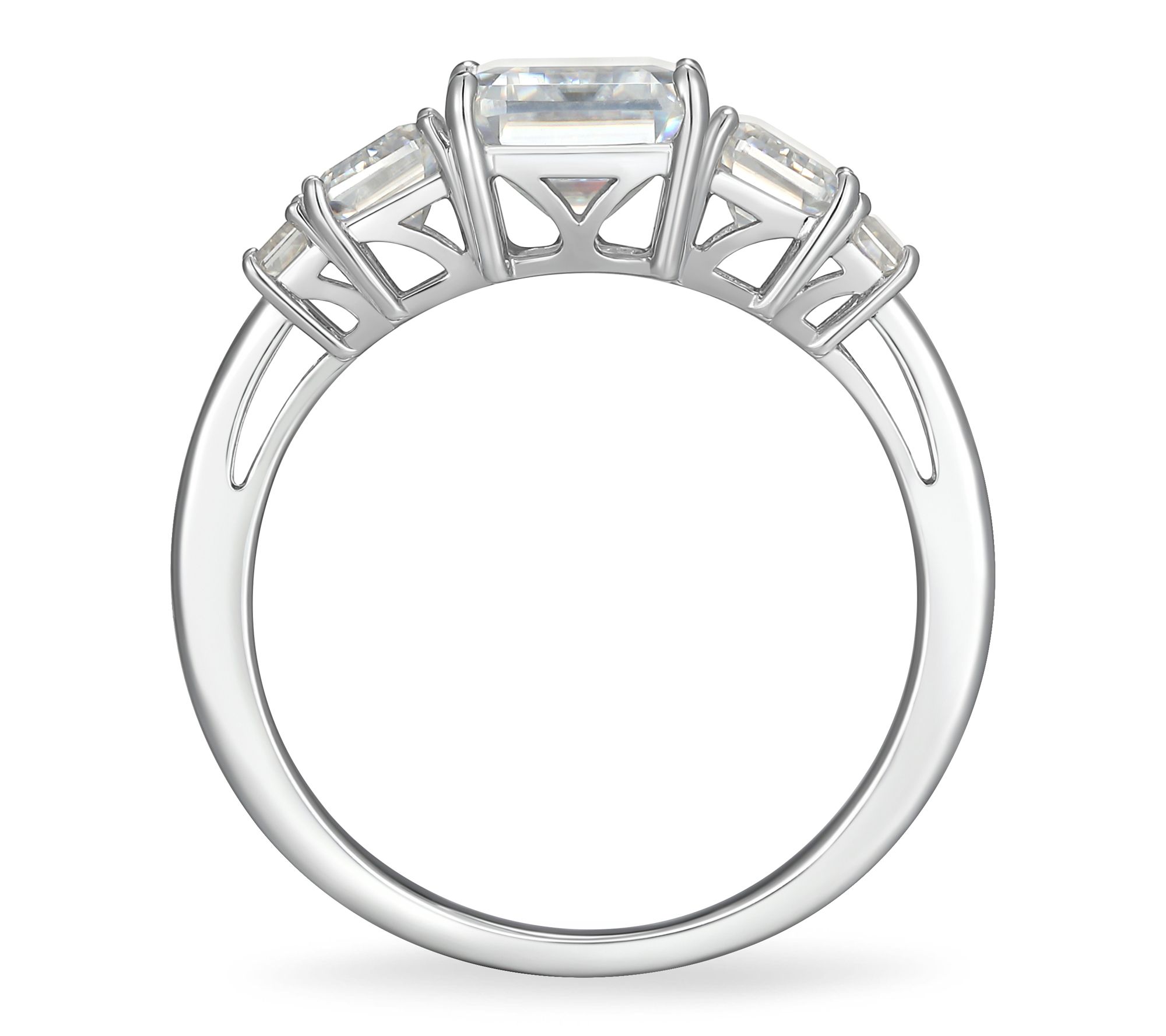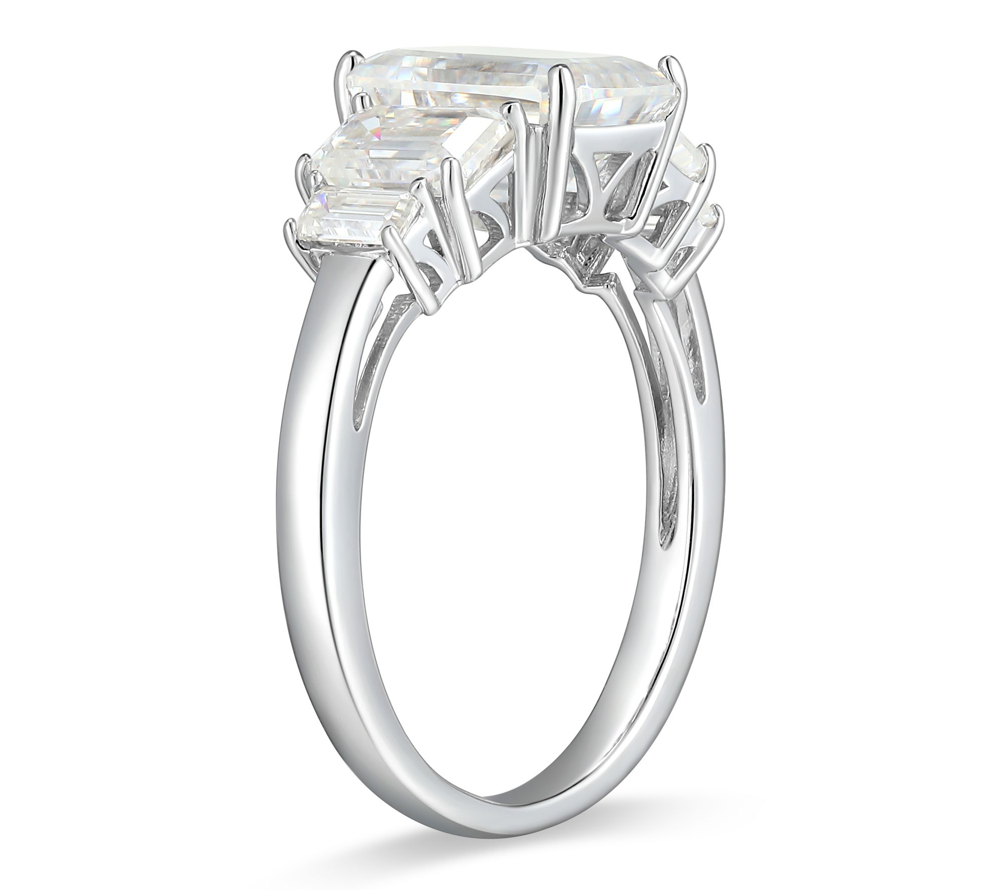 Let your style shine with this emerald-cut lab-grown moissanite ring. The bold silhouette and radiant sparkle make it a standout piece -- ideal for dressing up evening wear or giving casual looks a hint of glamour.