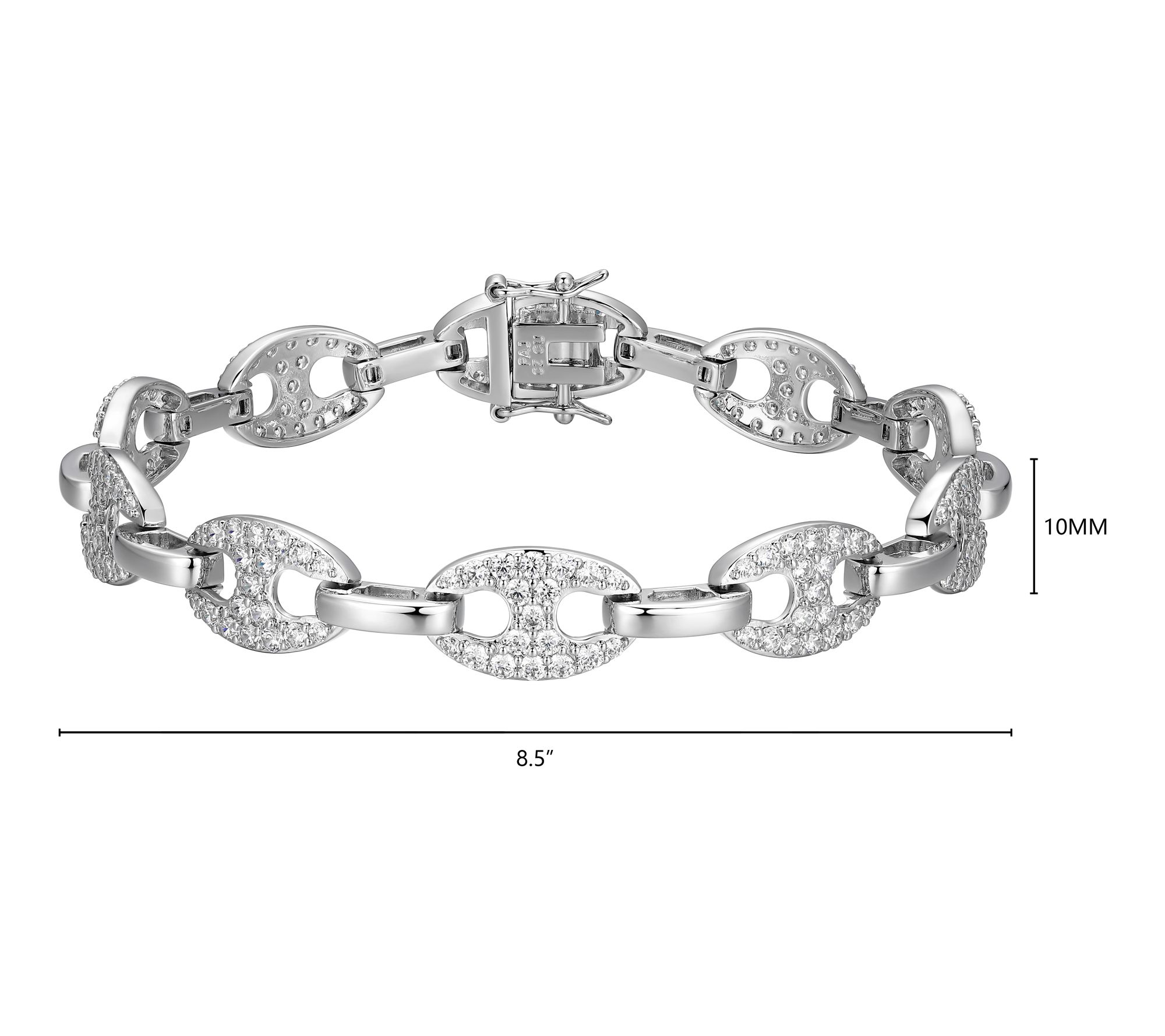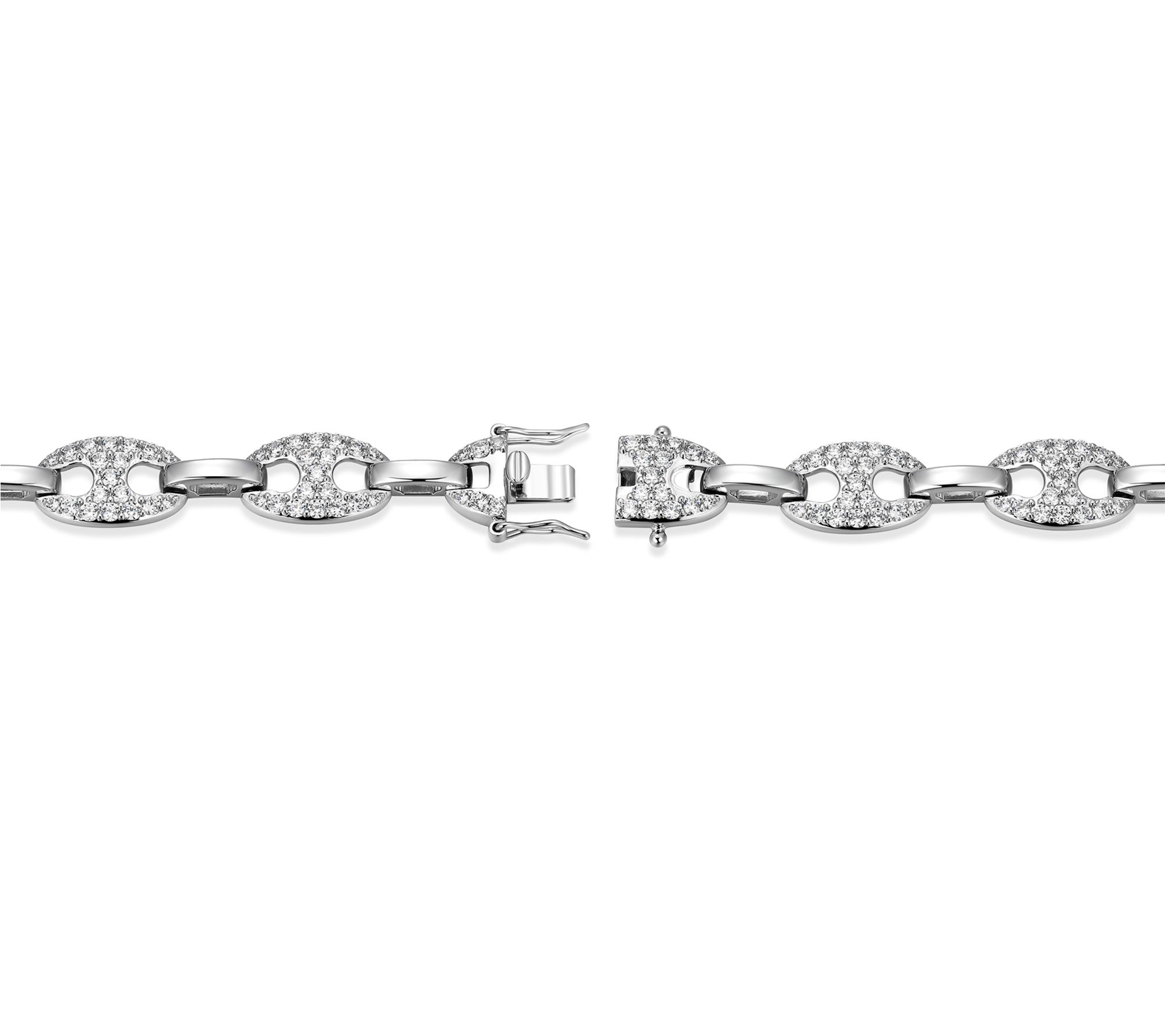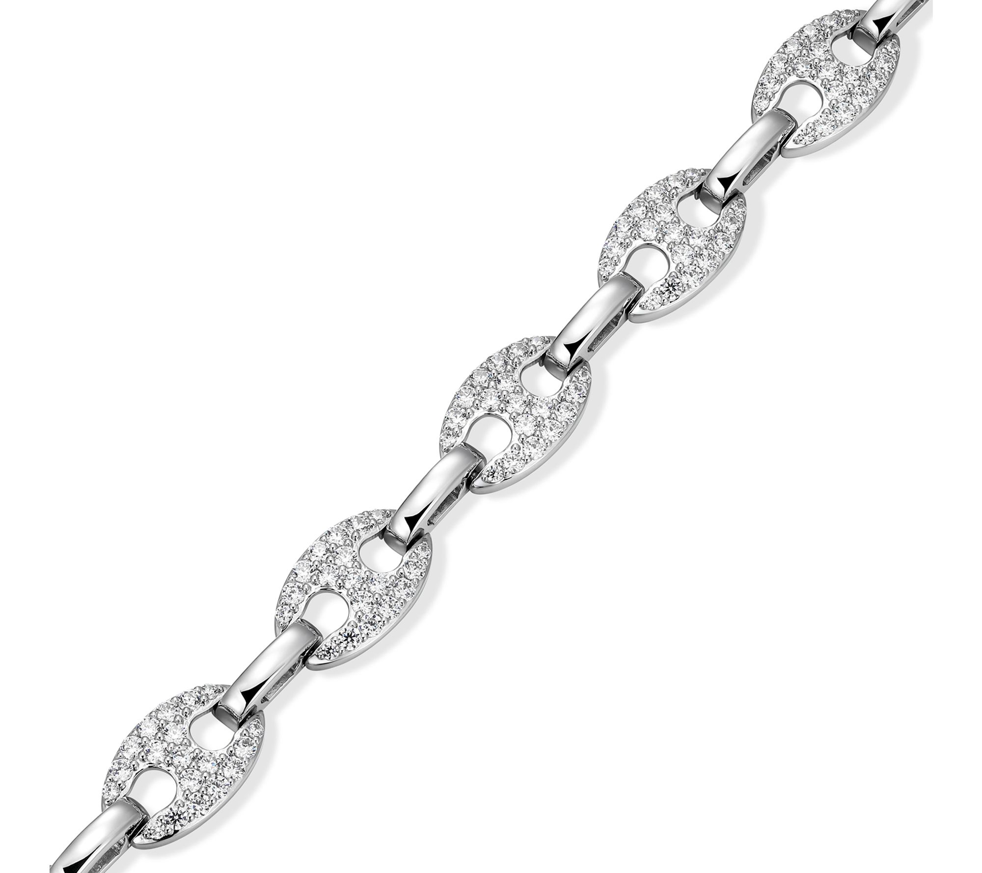 With rows of round-cut lab-grown moissanite glimmering against rhodium-plated sterling silver, this mariner link bracelet adds radiance to every moment. Pair it with a sleek dress for date night or let it elevate your casual style with its eye-catching sparkle.