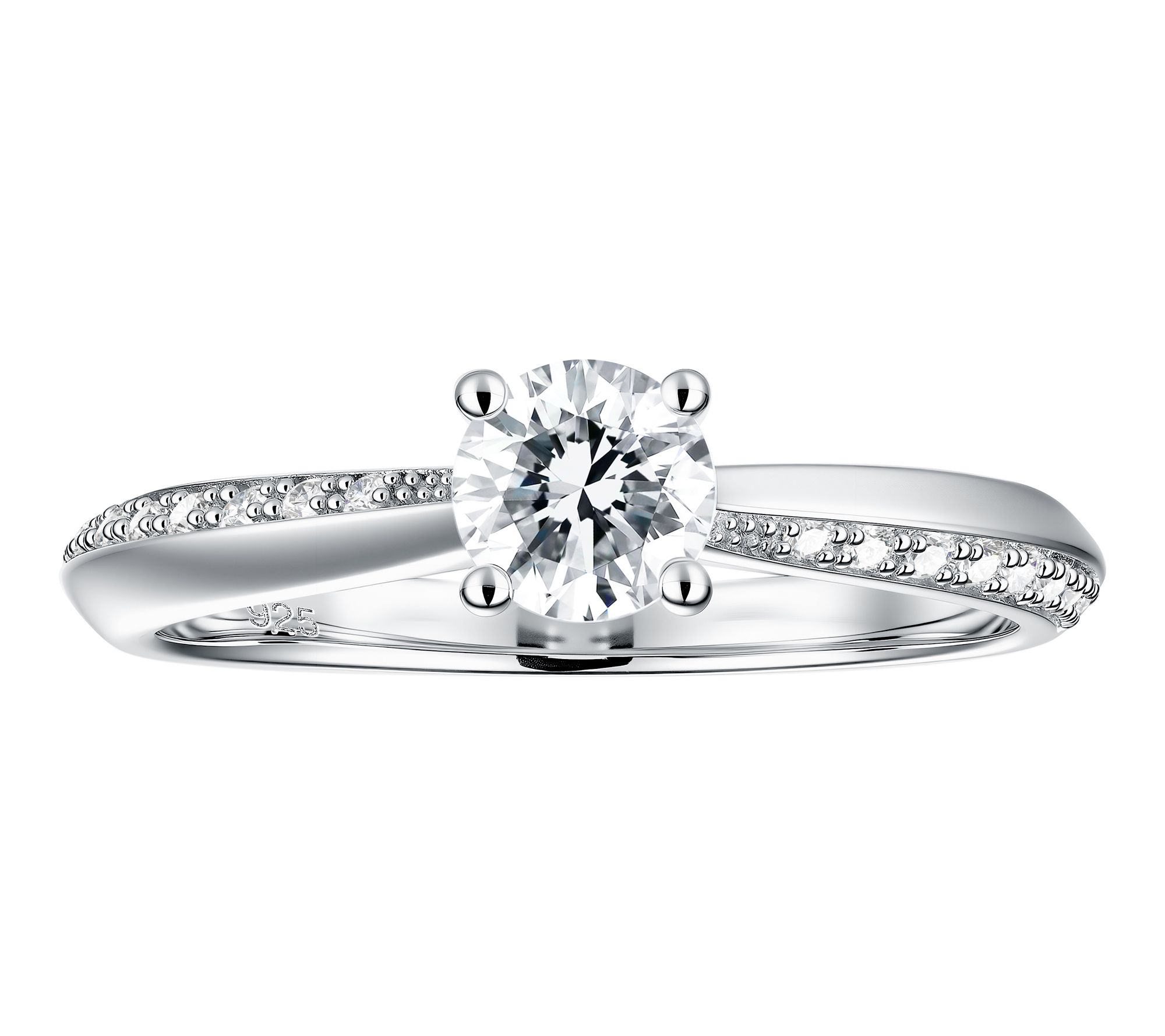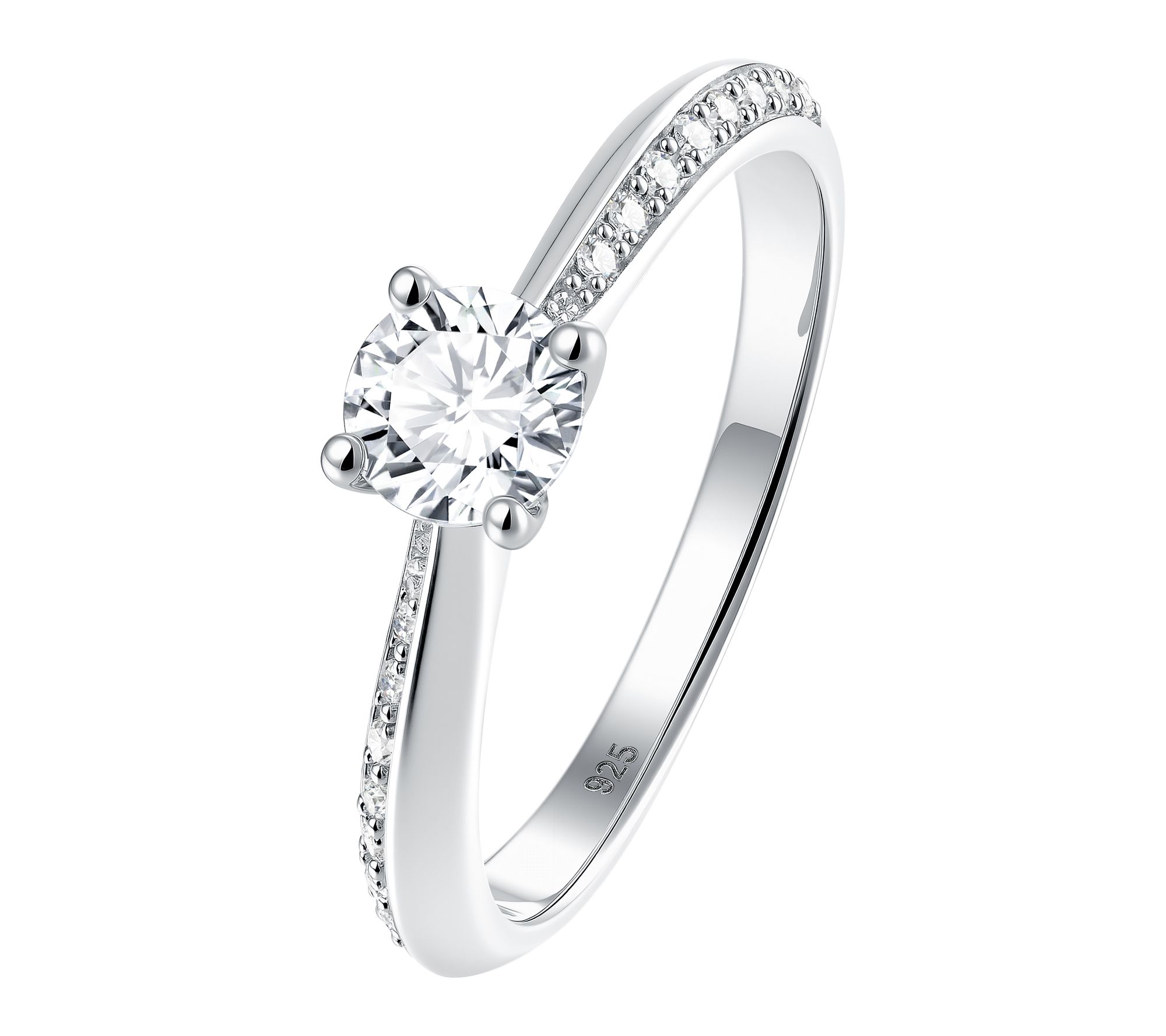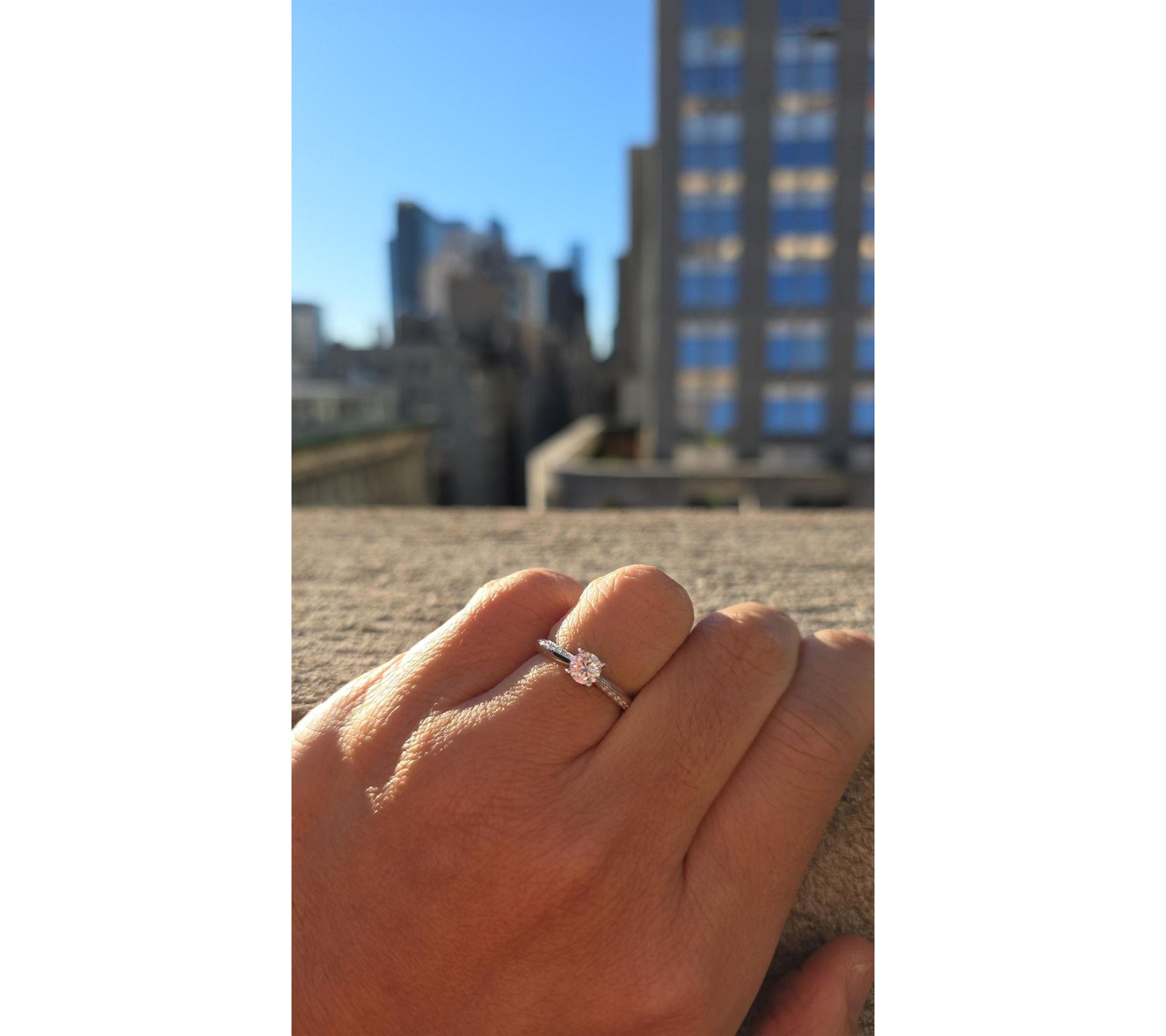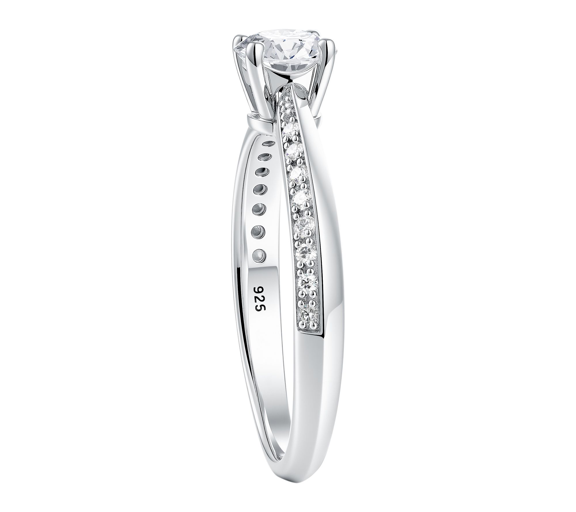 Whether you're getting engaged, marking a milestone, or celebrating everyday elegance, this solitaire-style ring sparkles with unforgettable meaning. Lab-grown moissanite shimmers at the center and along the band, set in sleek rhodium-plated sterling silver for a look that's as classic as it is radiant. From Moissanite Luxe.
