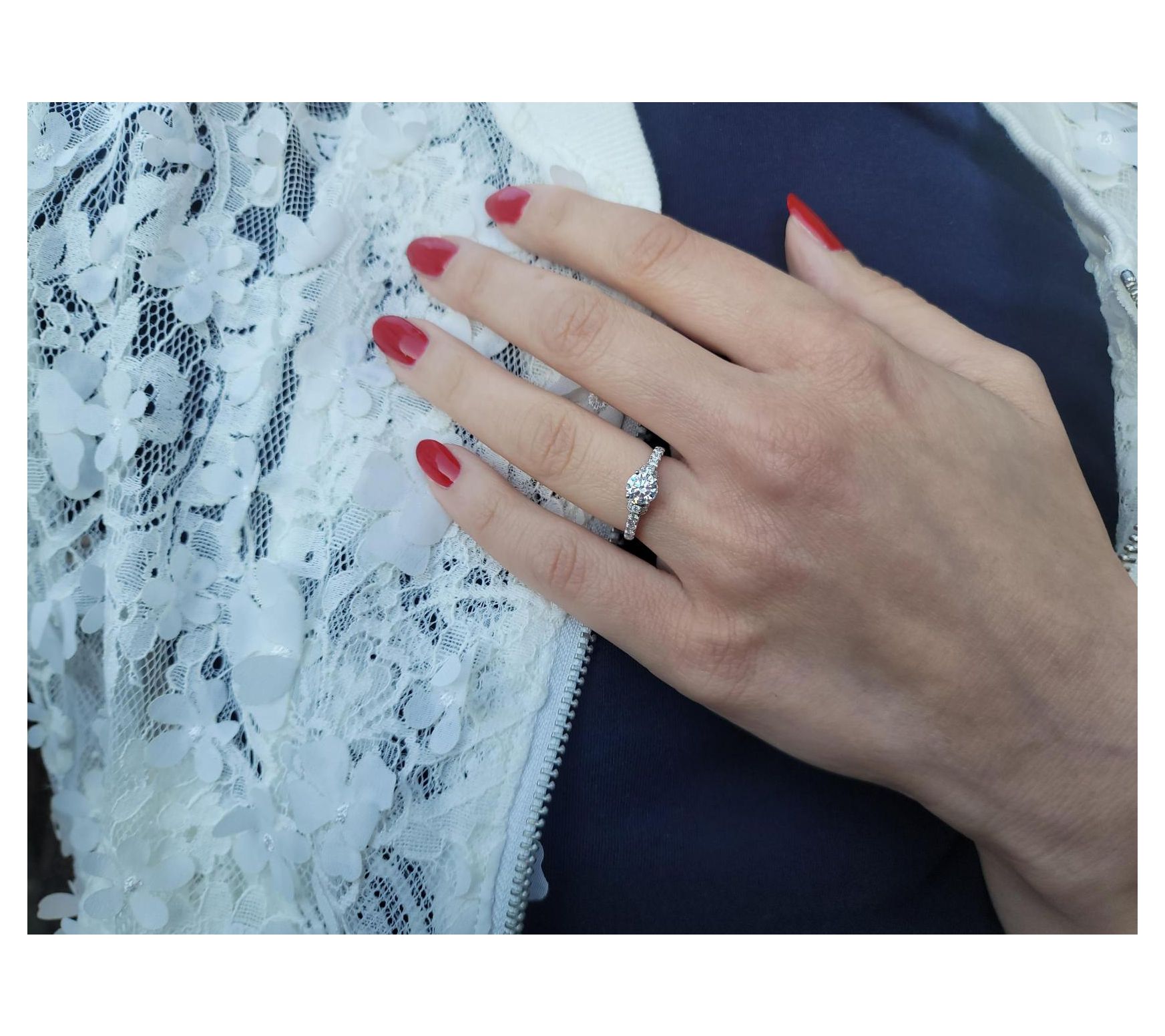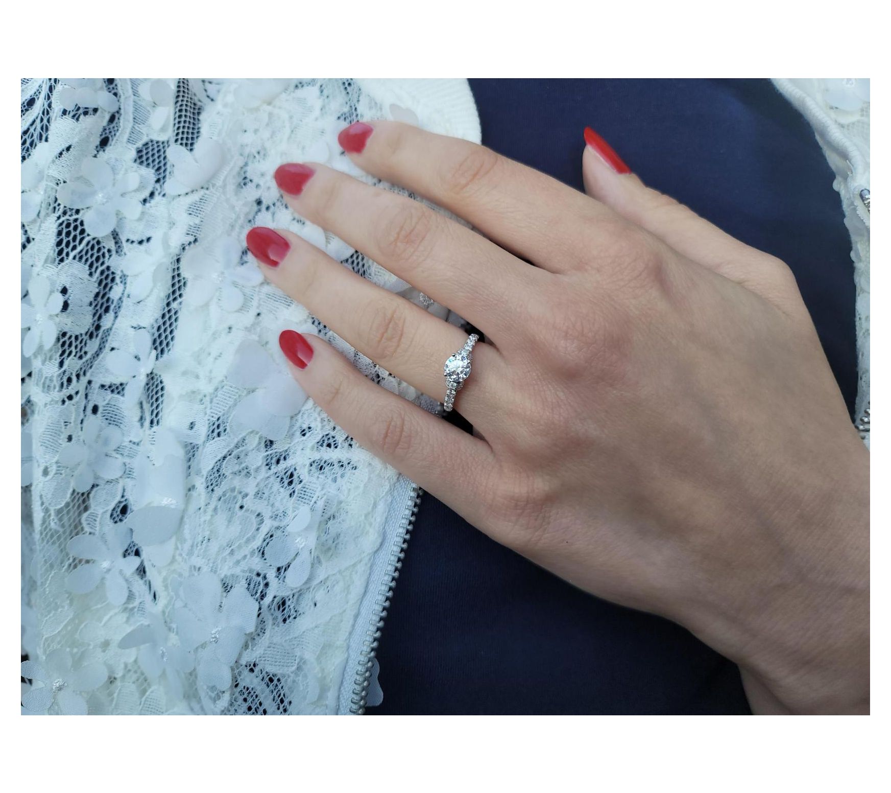 Total lab-created moissanite weight is approximately 0.95