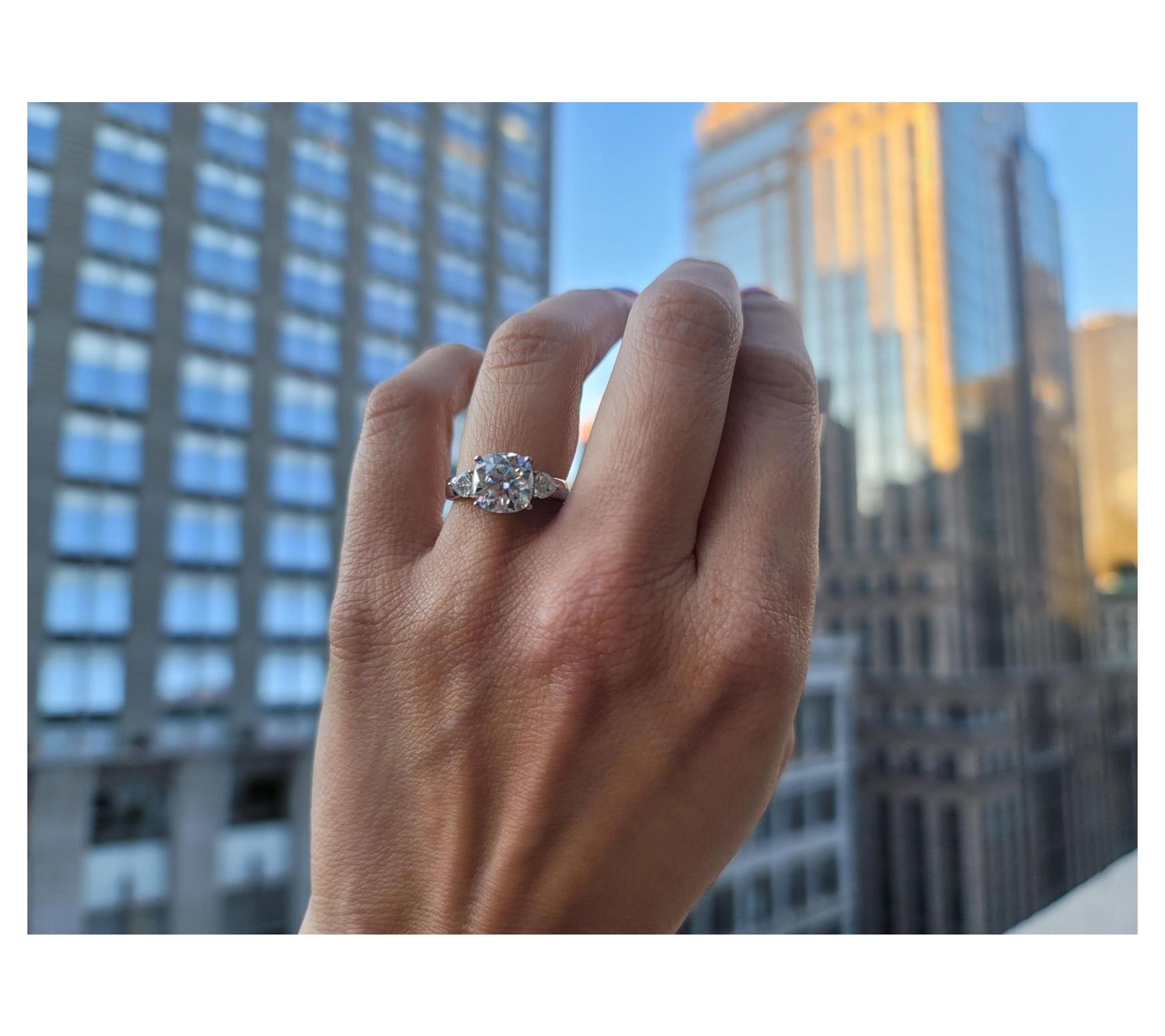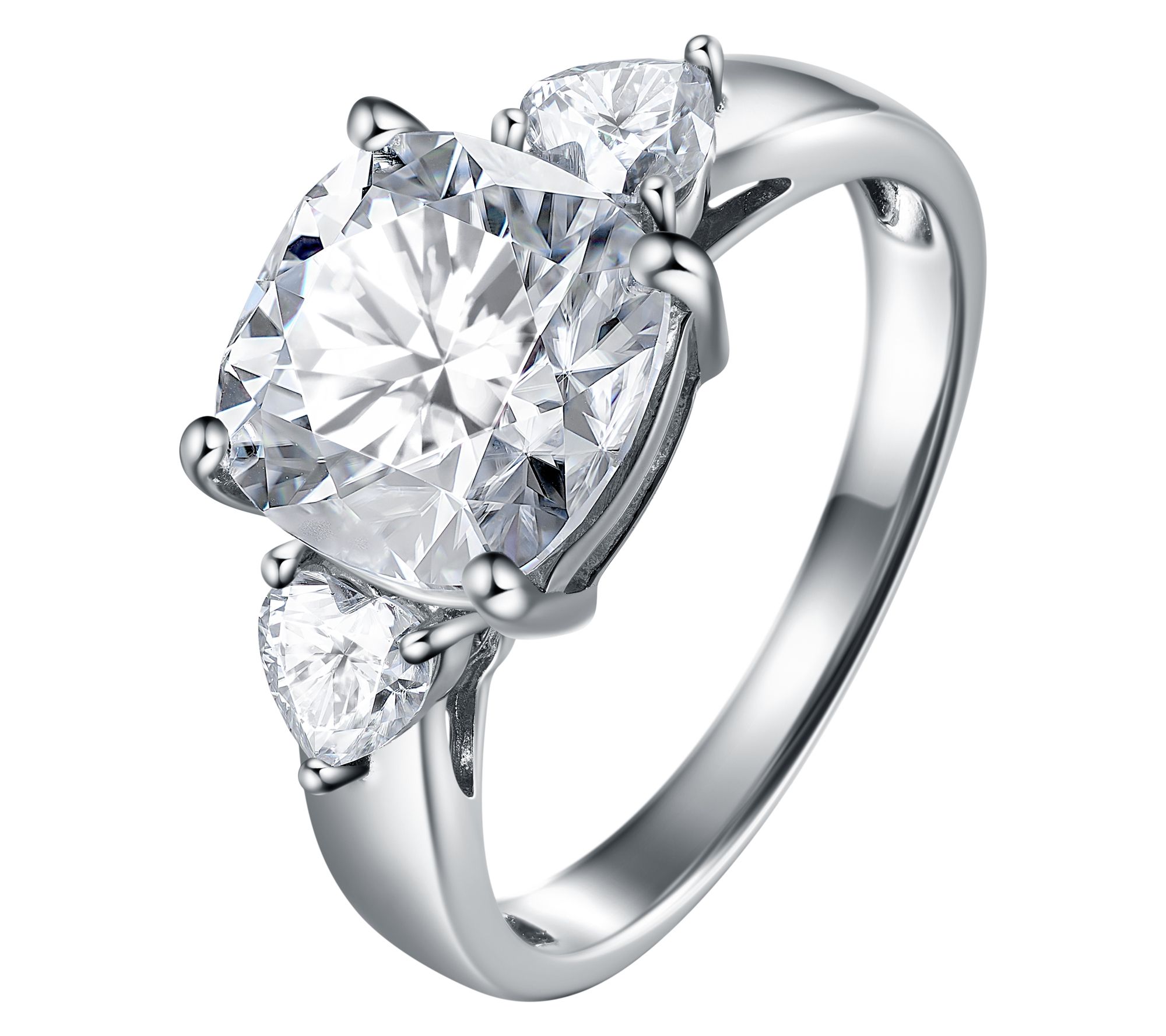 This stunning moissanite ring is perfect for those special moments. With a graceful combination of cushion and heart-cut lab-created moissanite stones, it's more than just a piece of jewelry—it's a promise of elegance. The rhodium-plated sterling silver setting enhances its brilliance, making it a timeless addition to any collection. From Moissanite Luxe.