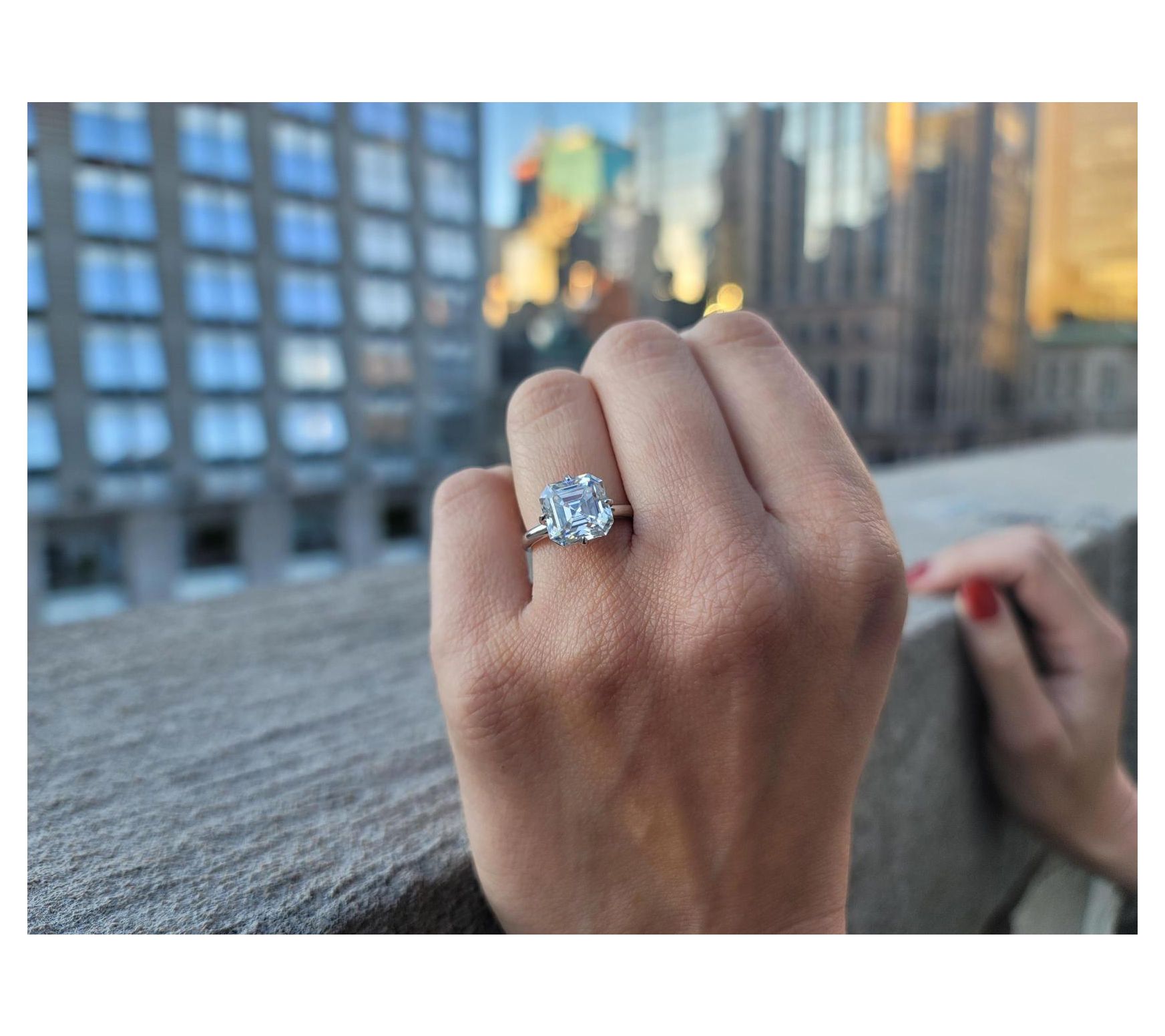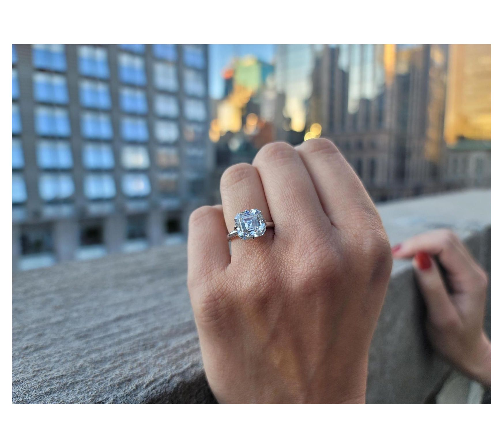 From candlelit dinners to a night out on the town, this stunning Asscher-cut created moissanite solitaire ring lends an air of sophistication. The brilliant lab-created gemstone sparkles with exceptional clarity, ensuring all eyes are on you.