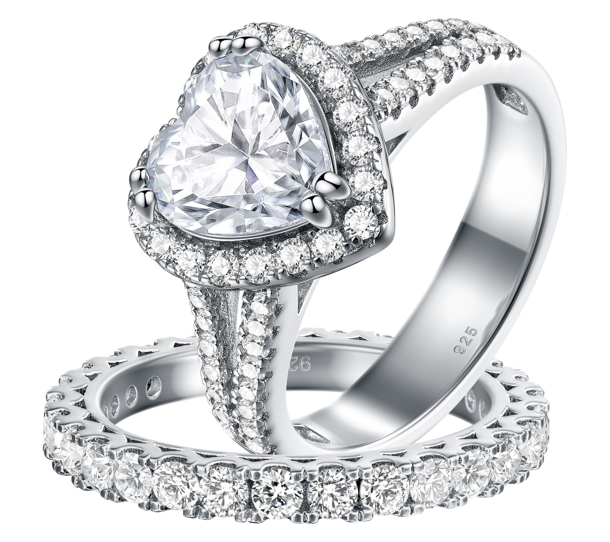 Includes heart-cut ring and eternity band ring