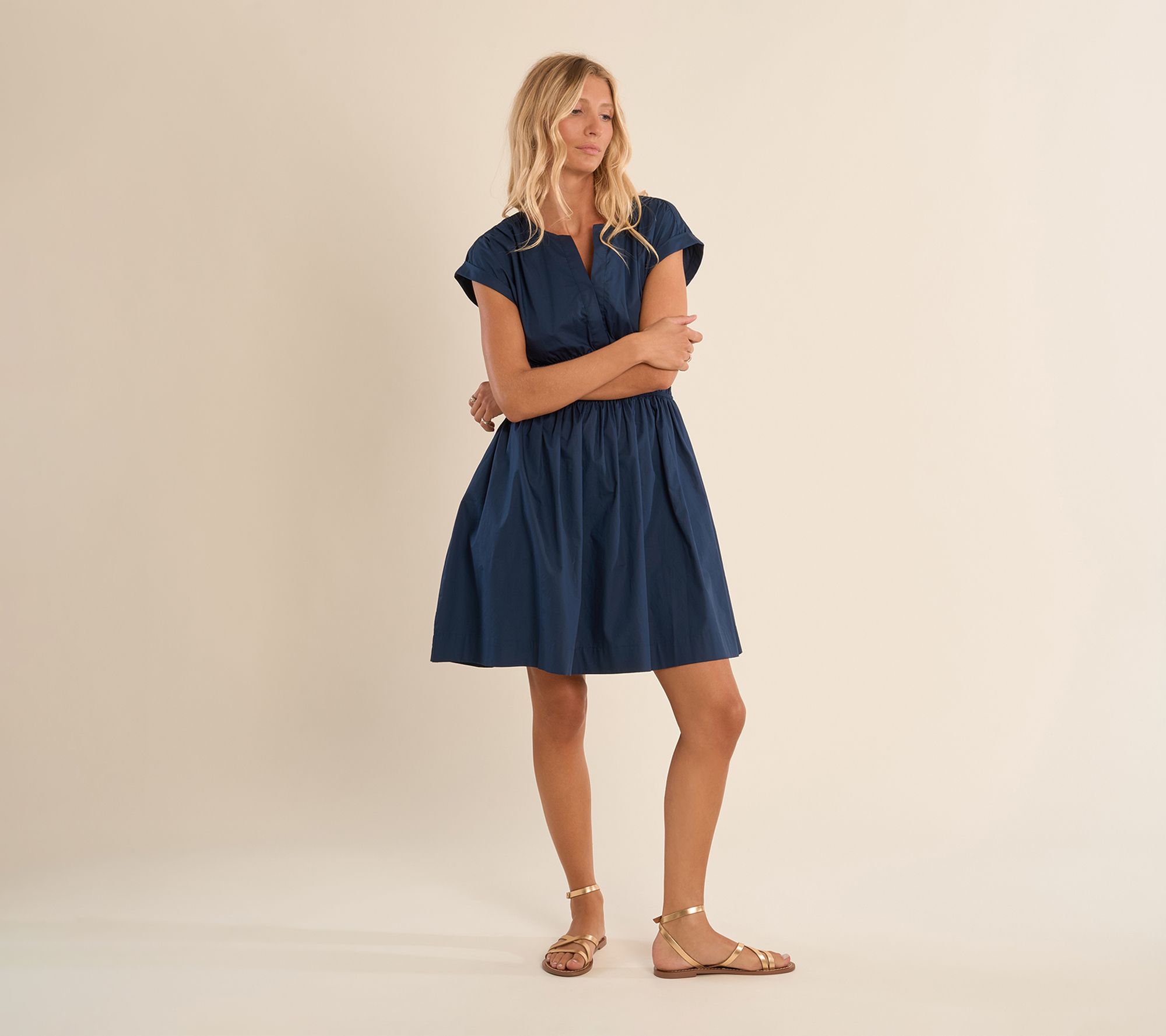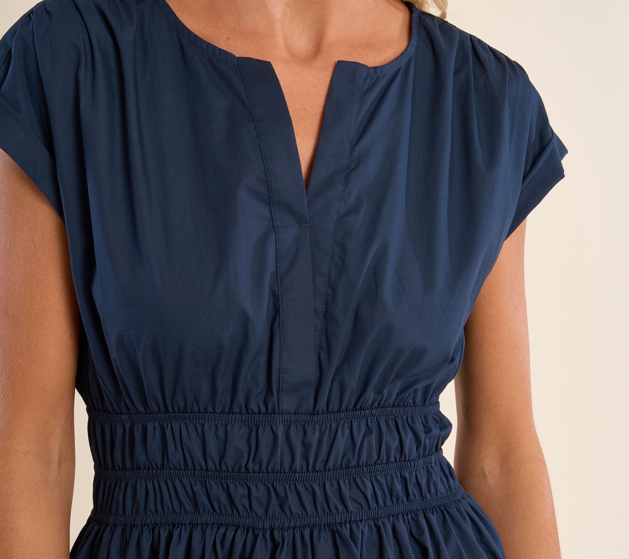 Whether you're heading to a sunny brunch or meeting friends at the park, this airy sundress keeps you cool and stylish all summer long. Its lightweight, woven cotton offers comfort, while the flattering V-neck and cap sleeves make it a versatile favorite to dress up with sandals or pair with sneakers for a laid-back afternoon. From Molly Bracken.