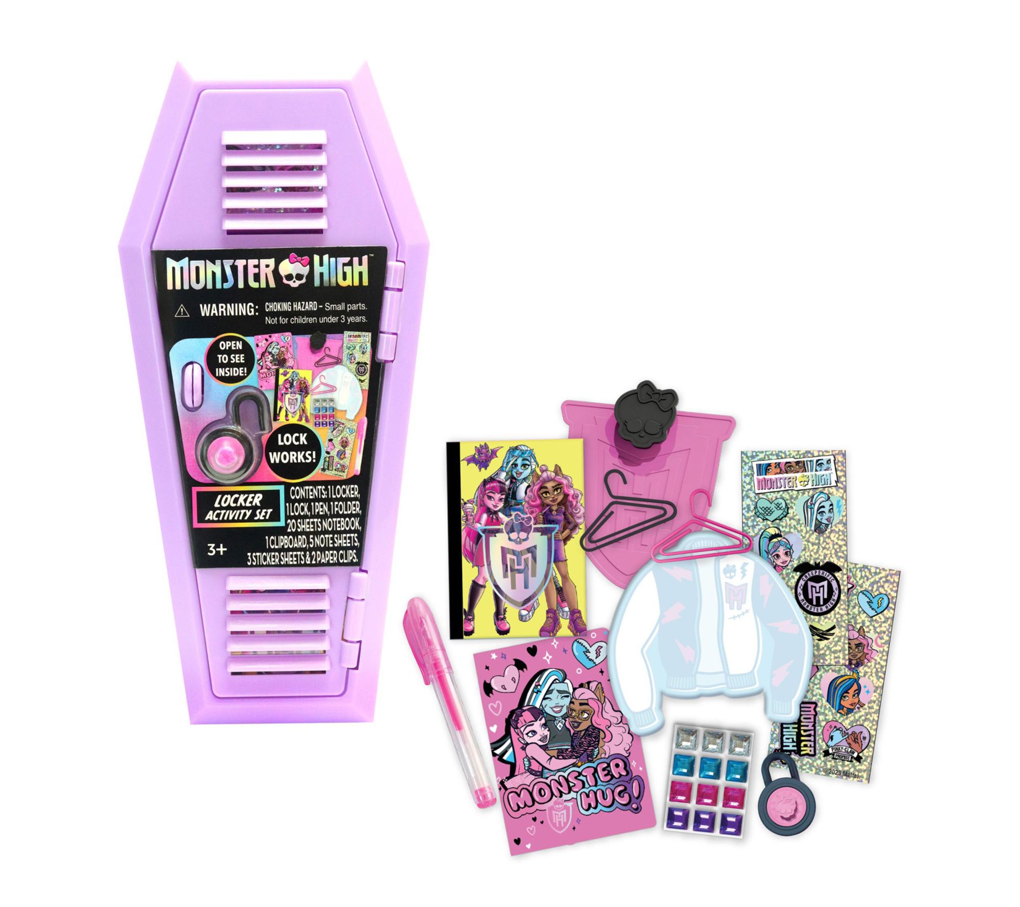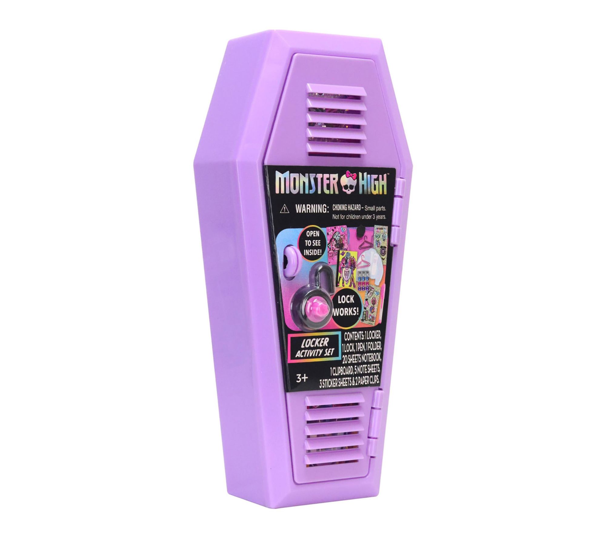 Ghoulishly creative adventures await with this arts & crafts locker set, where kids can organize spooky supplies, journal secret plans, or personalize pages with vibrant stickers and mini stationery. Whether bringing eerie flair to classroom desks or decorating on-the-go, this portable locker sparks Monster High-inspired imagination every time the door opens. From Monster High.