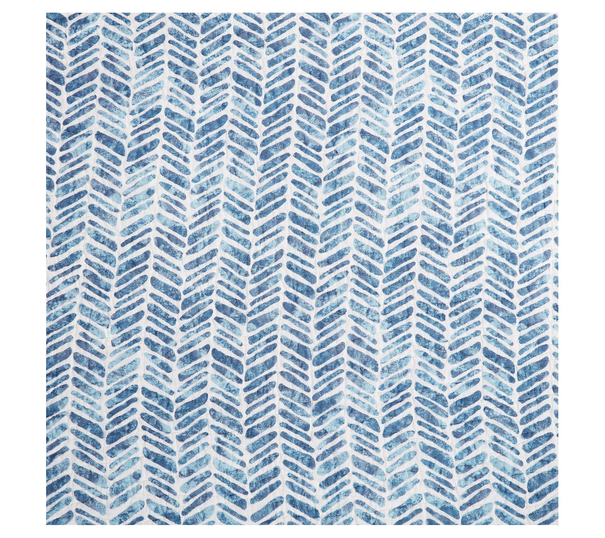 With a modern undersea coral print and subtle wave quilting, the Monterey Mist twin bedspread brings a coastal oasis to your bedroom, and the reverse blue watercolor herringbone print coordinates beautifully. From the Valerie Parr Hill Collection.