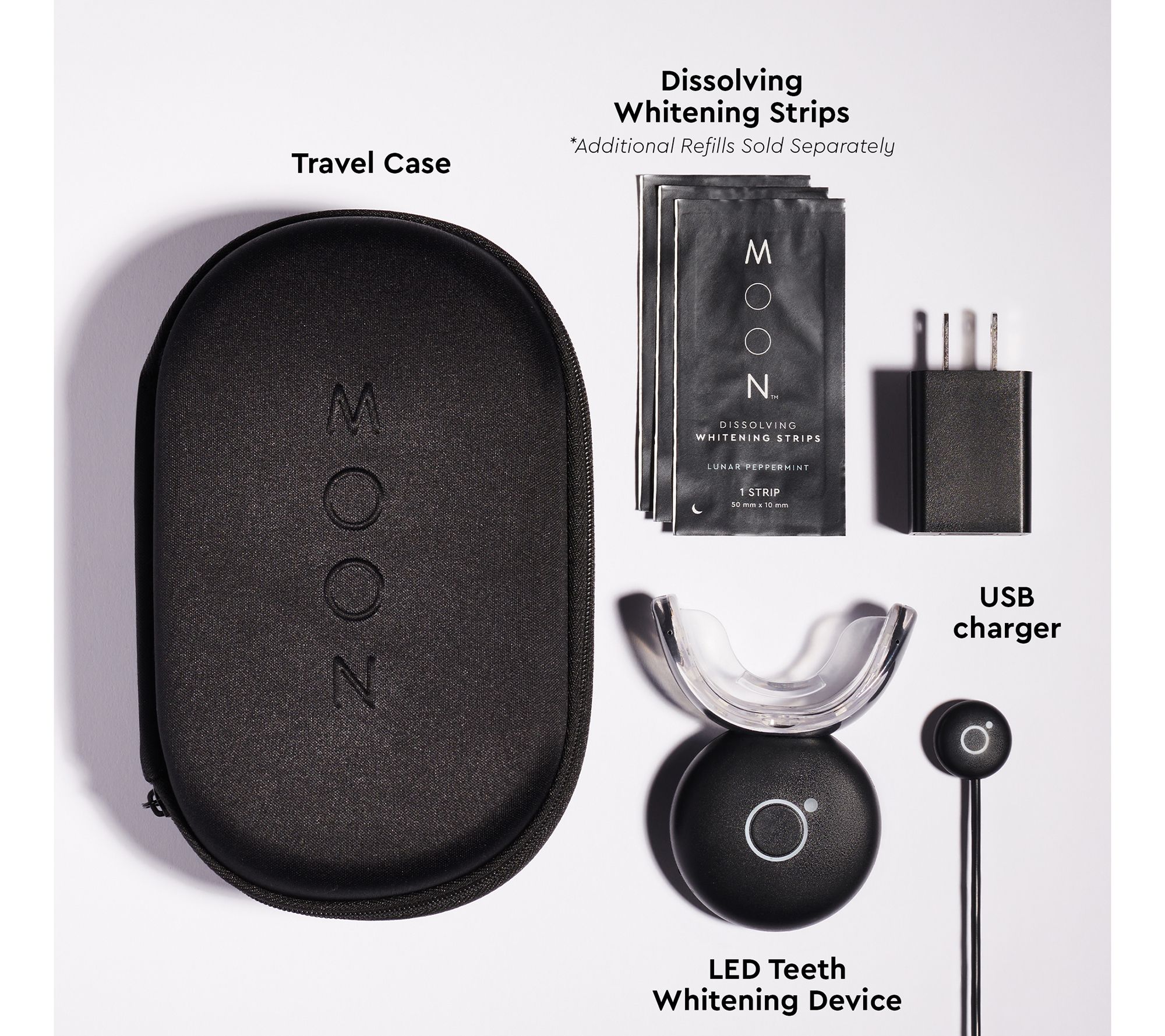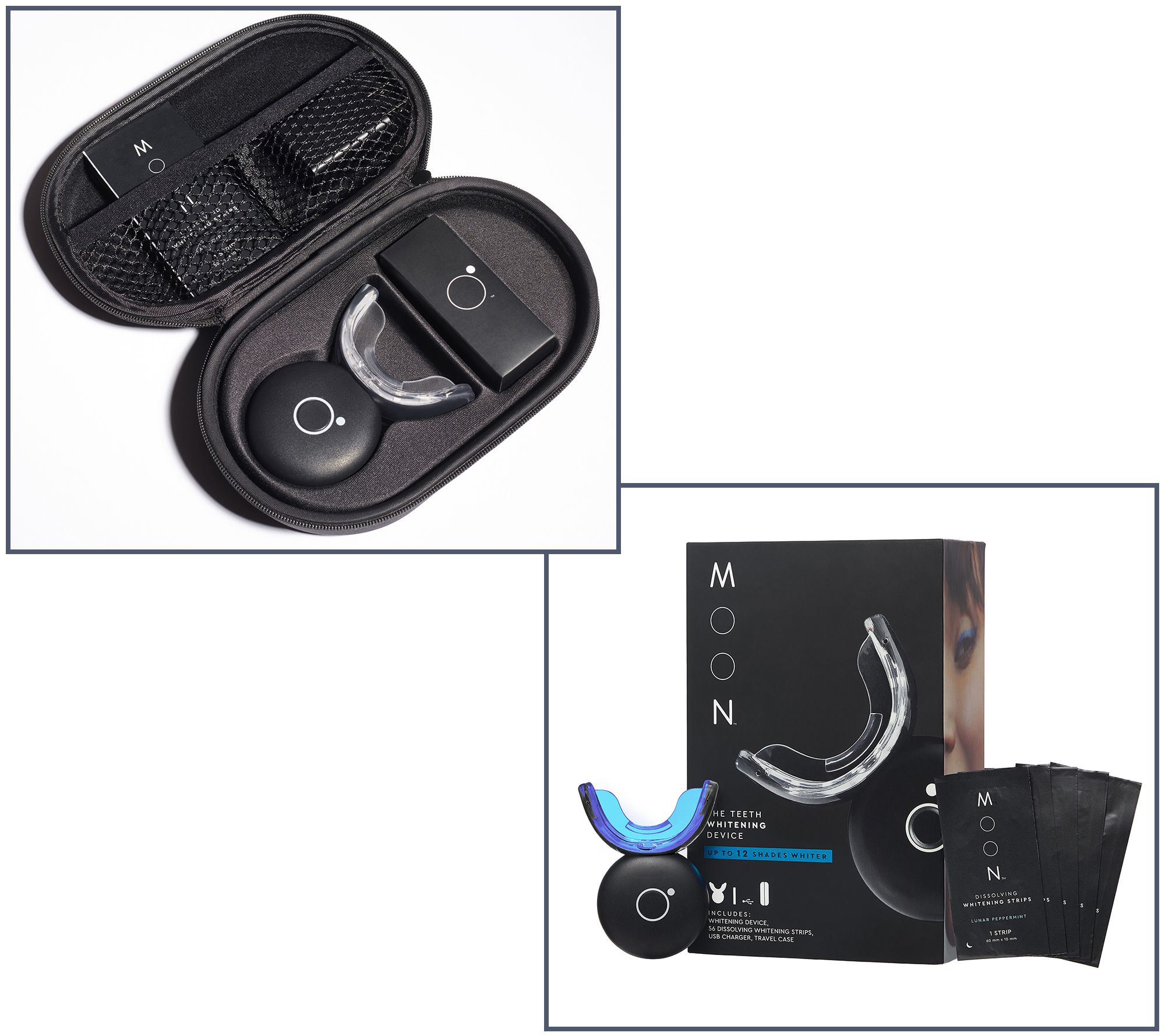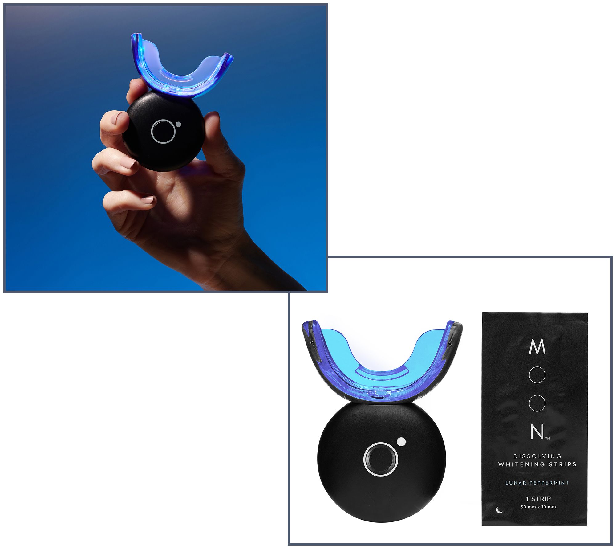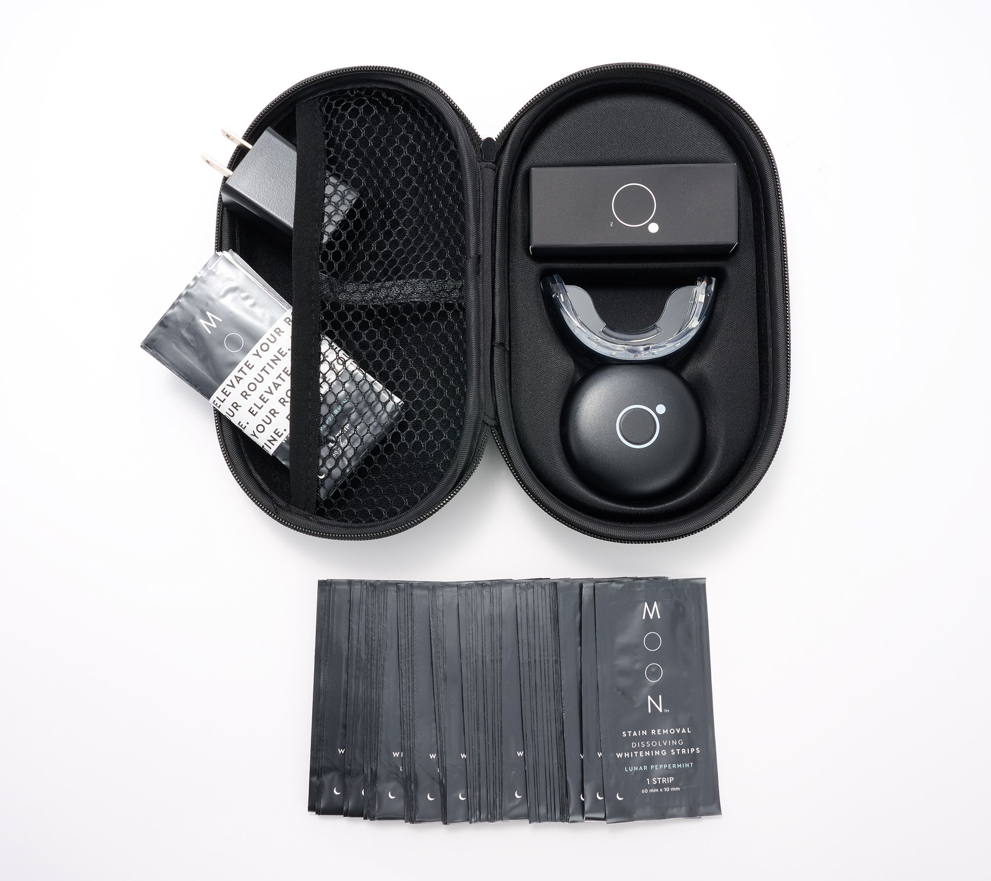 Enjoy a whiter, brighter smile with the easy-to-use Moon Oral Beauty LED teeth whitening device and whitening strips. Simply apply the strips and insert the wireless device into your mouth for five minutes. The device whitens teeth up to 10 shades in just two weeks when used with strips.
