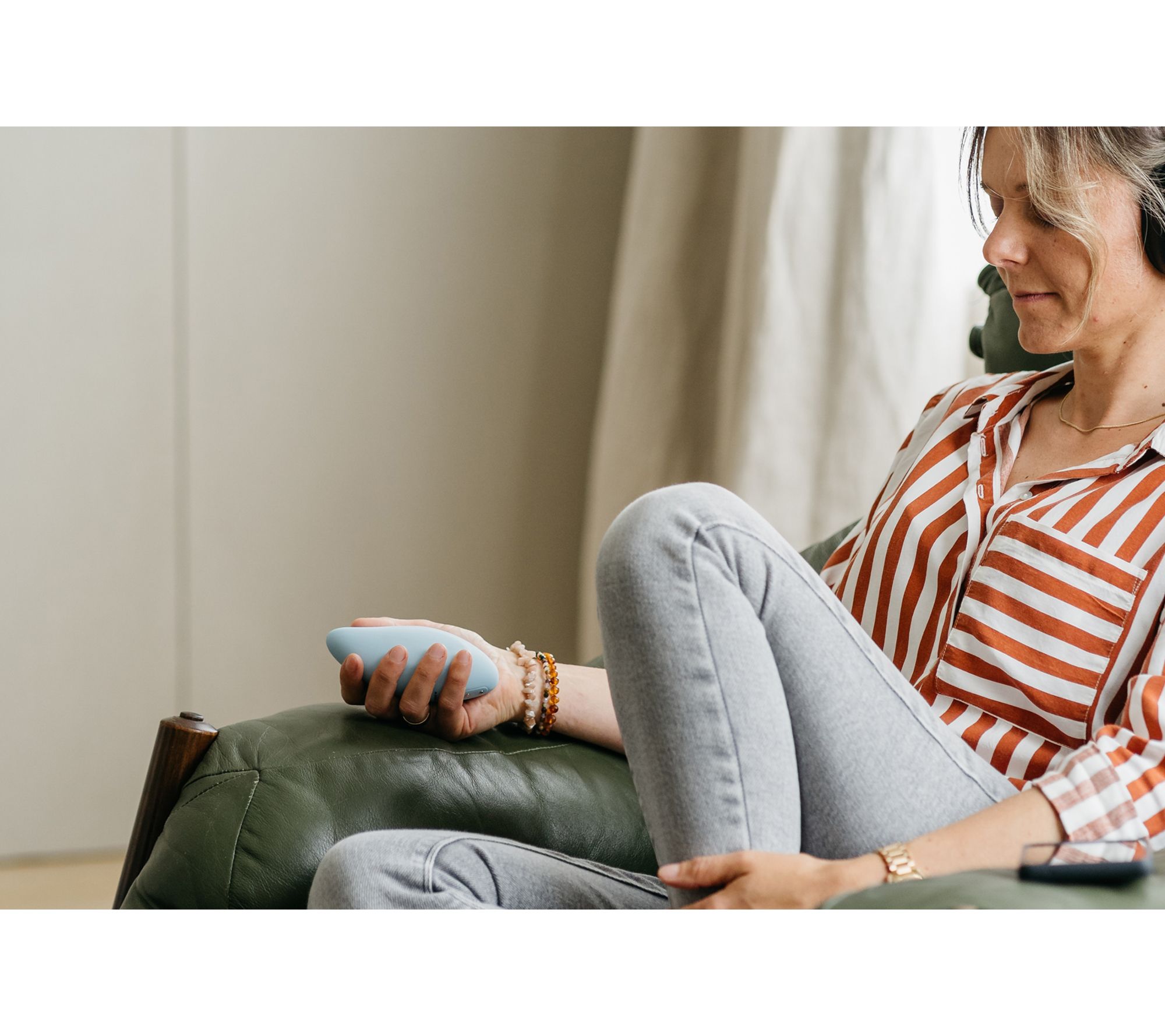 Ease into restful nights or relaxing moments with this silicone breathwork device that fits comfortably in your hand. Moonbird is an intuitive handheld breathing pacer that expands and contracts, like a balloon that swells and deflates in your hand. Simply match your breathing with the rhythm of your Moonbird to promote relaxation and stress management as part of a healthy lifestyle. From Moonbird.