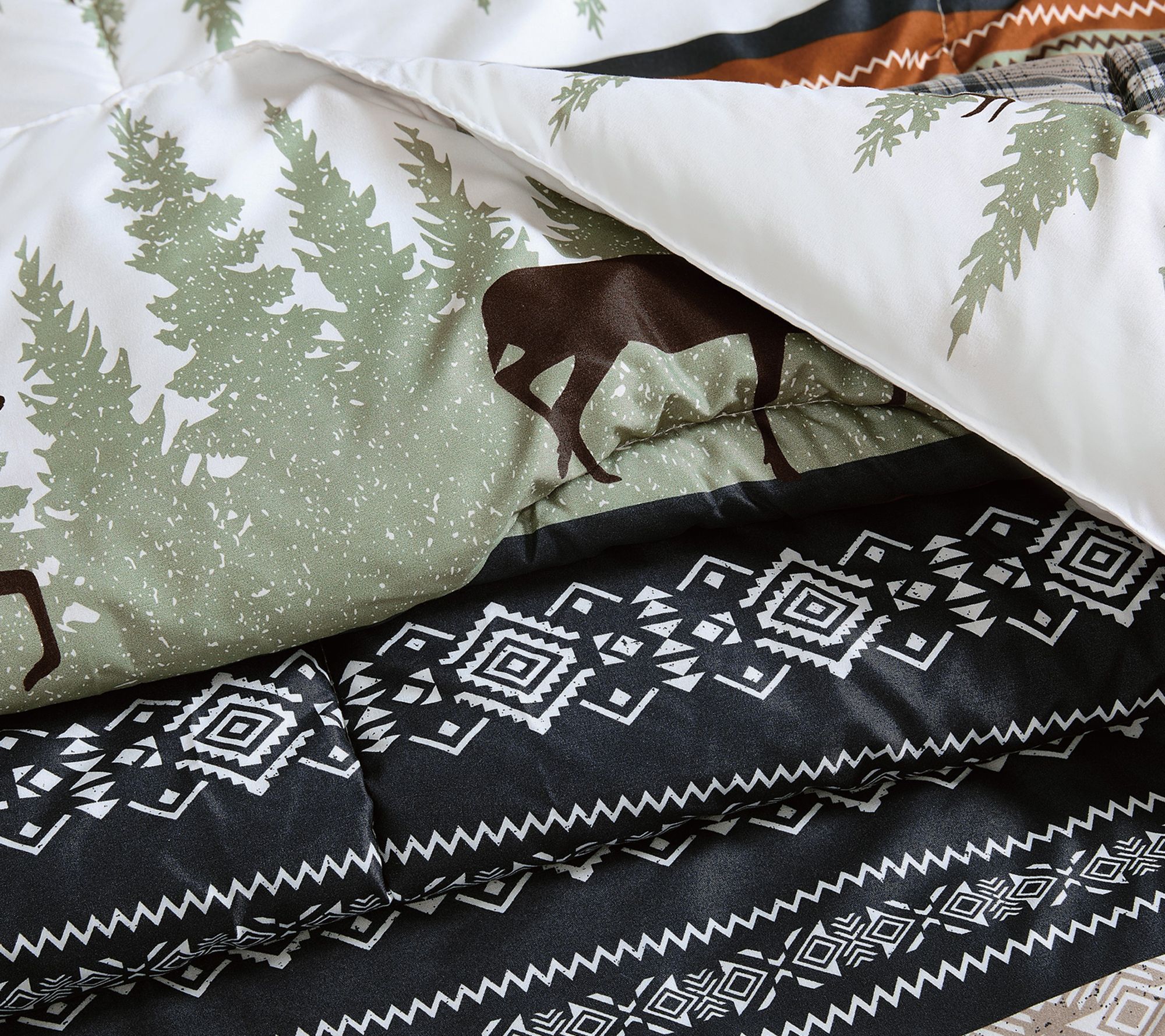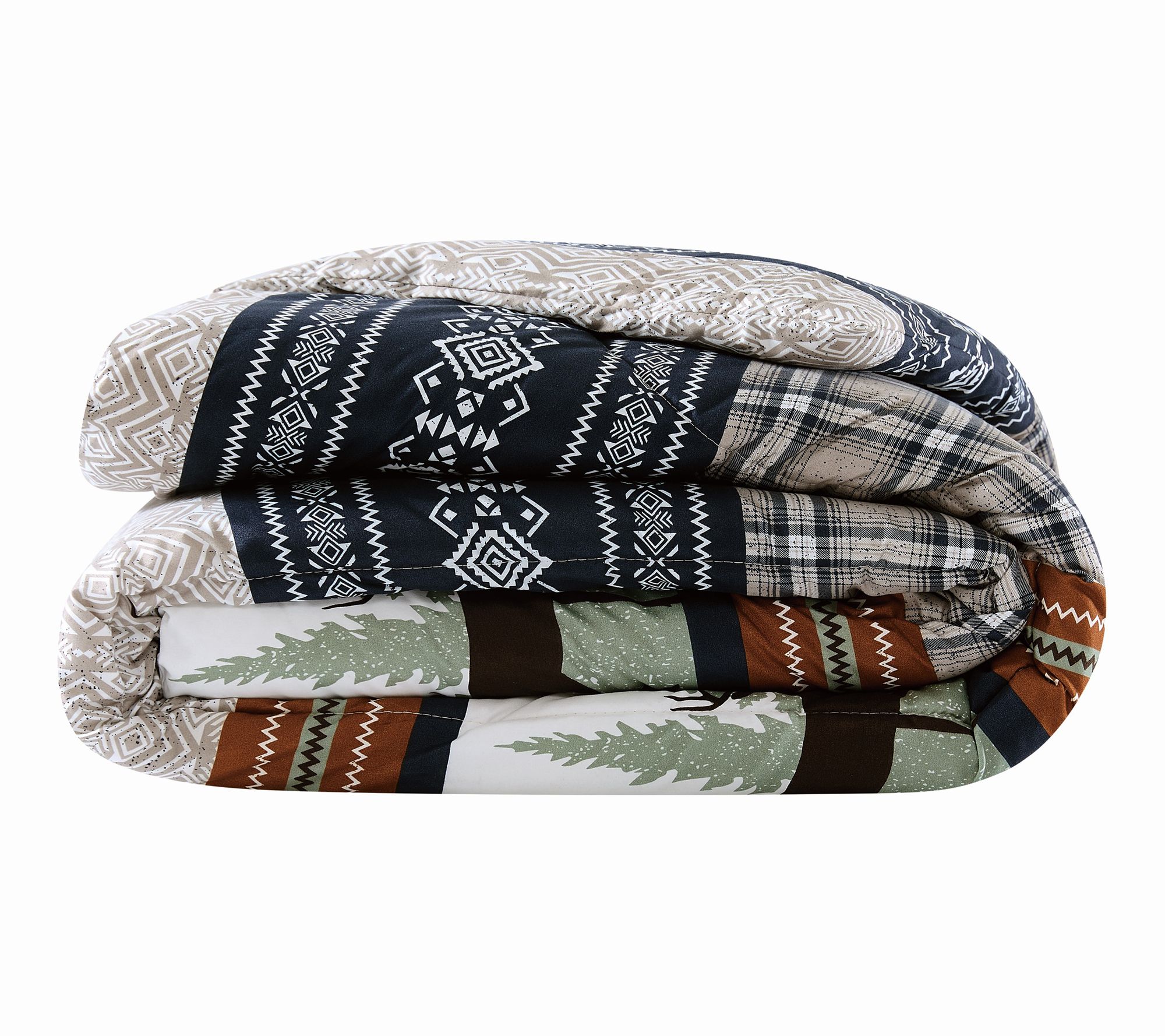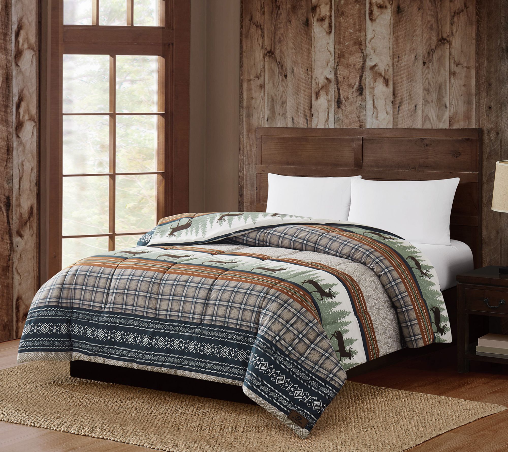 • Lodge-inspired multi-color pattern; solid microfiber reverse