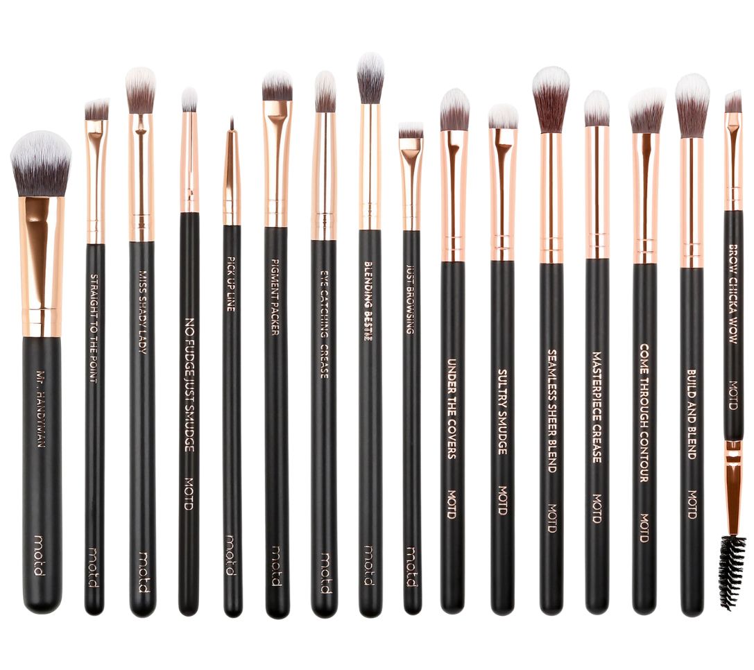 MOTD Pro Eye Makeup Brush Collection includes all the eye brushes needed for your creative makeup looks. This 16-piece eye makeup brush set is made from fibers that are designed for impeccable makeup application.