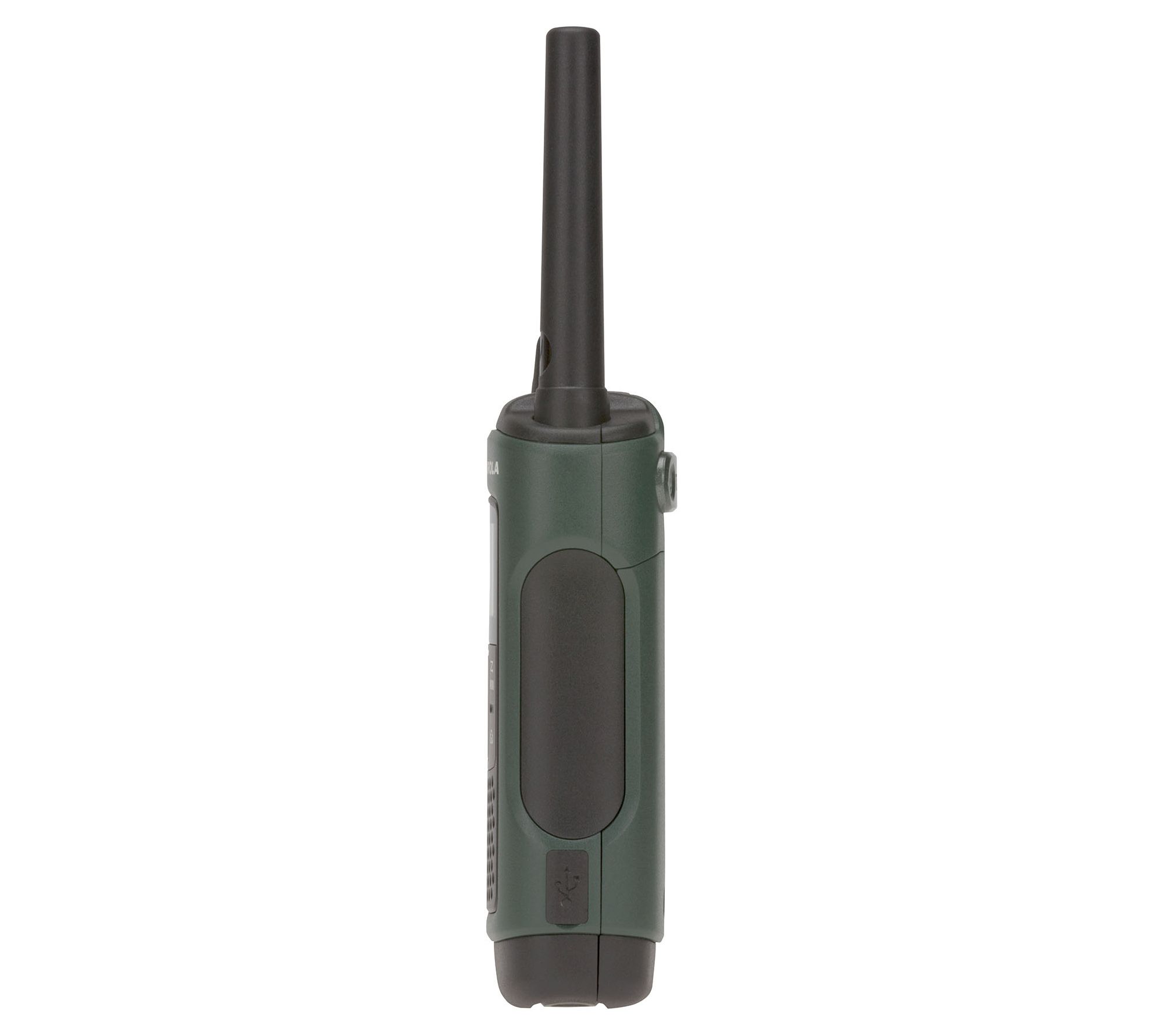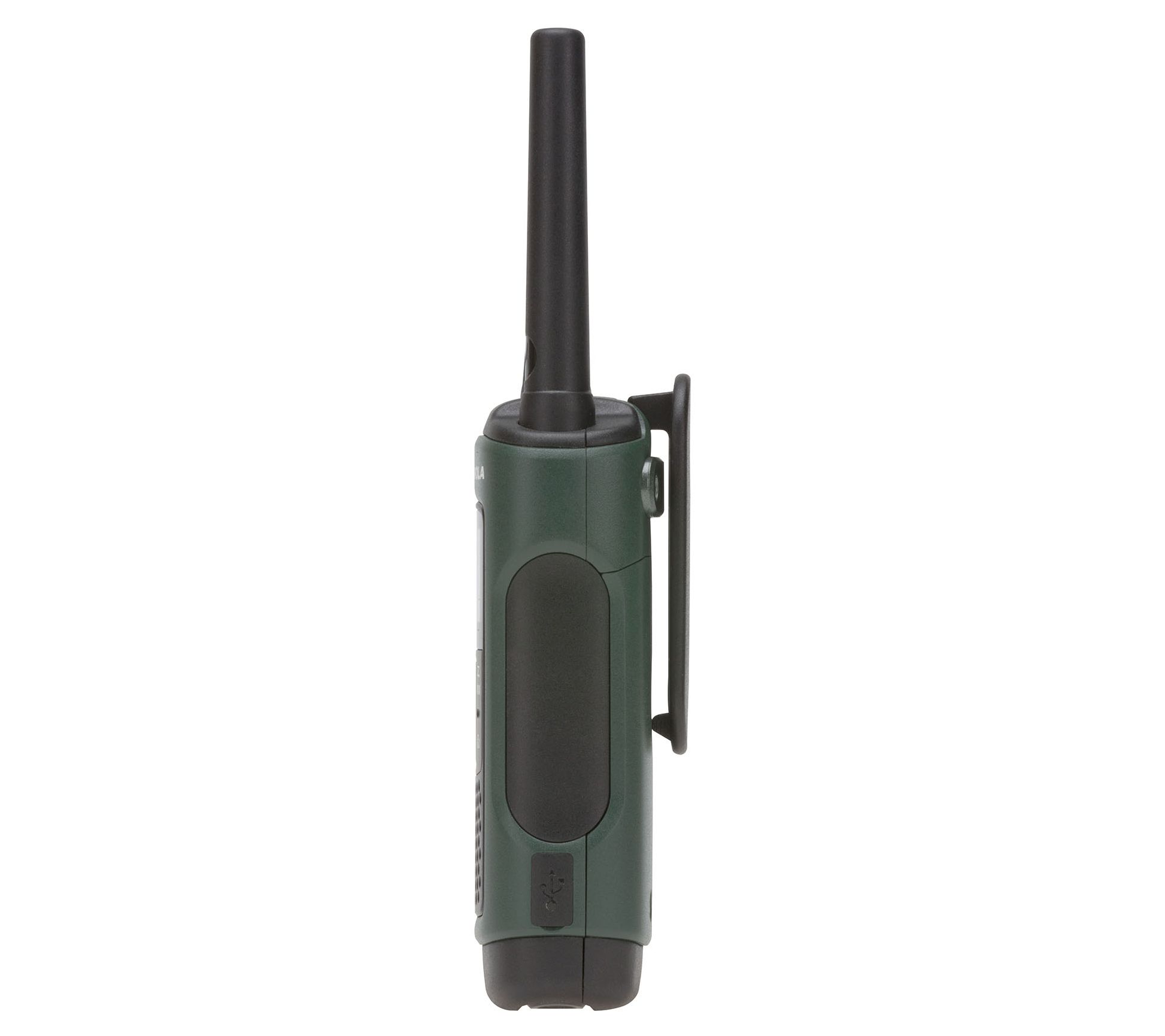 • Includes two T465 radios, two whistle belt clips, two earbuds, Y-cable/dual micro-USB connector, two rechargeable battery packs, carry case, and accessory brochure