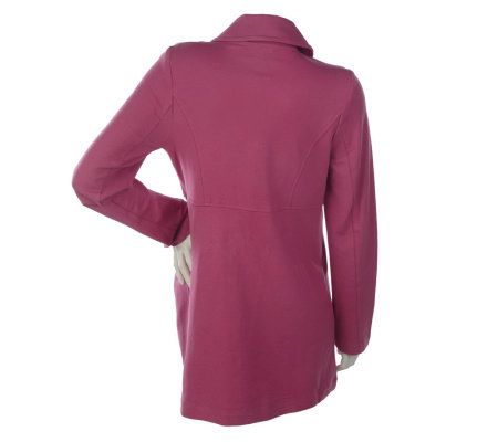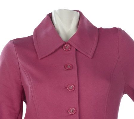 Don't let a chill in the air keep you from showing off a sleek silhouette. Fashionably fight Mother Nature back with this long-sleeved knit jacket. A pointed collar, empire waist, and front and back princess seams detail its figure-flattering fitted cut. From Motto(R) Fashions.